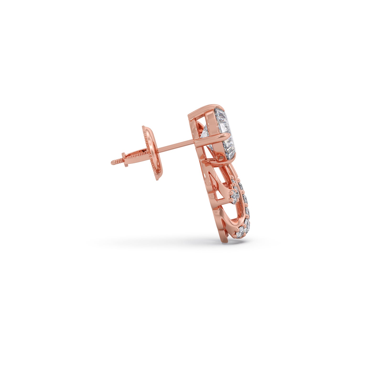 Like the gentle flutter of a butterfly mid-flight, two diamond waves unfurl from a 1 ct. Portuguese Cut Solitaire in each stud. Sculpted with elegance and intention, this airy form captures movement, grace, and quiet brilliance. Finished with our signature 0.008 ct. Round Diamond—a whisper of timeless beauty.