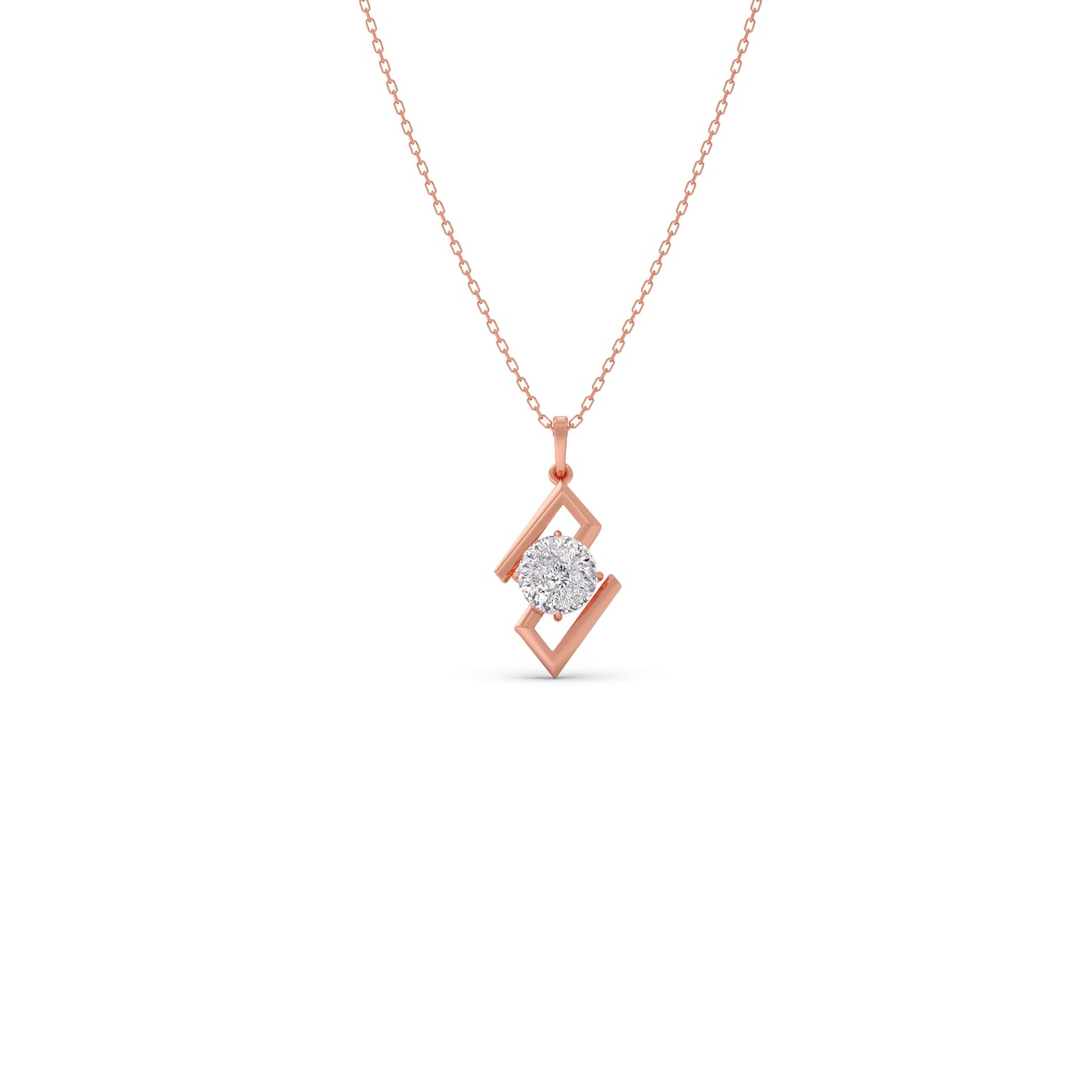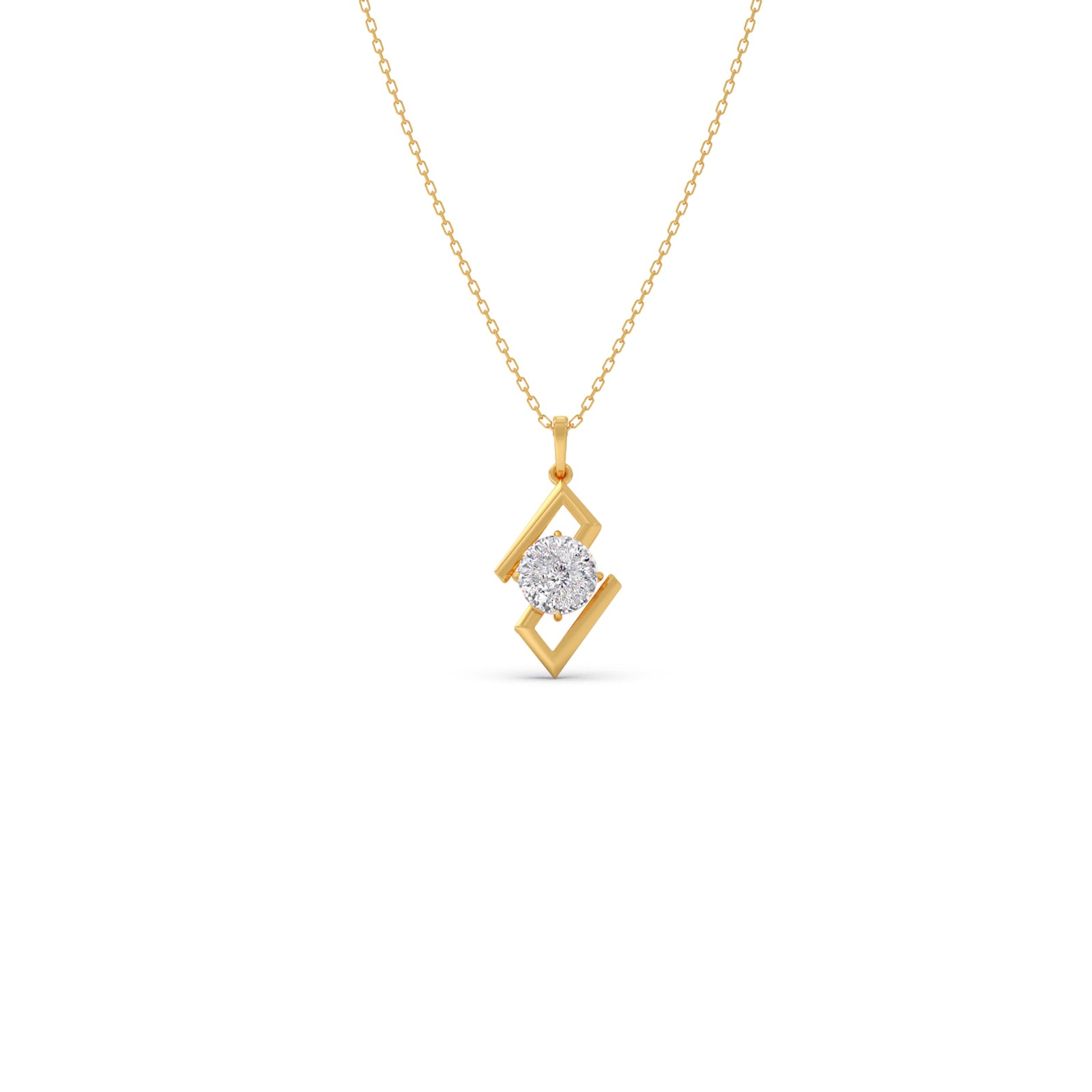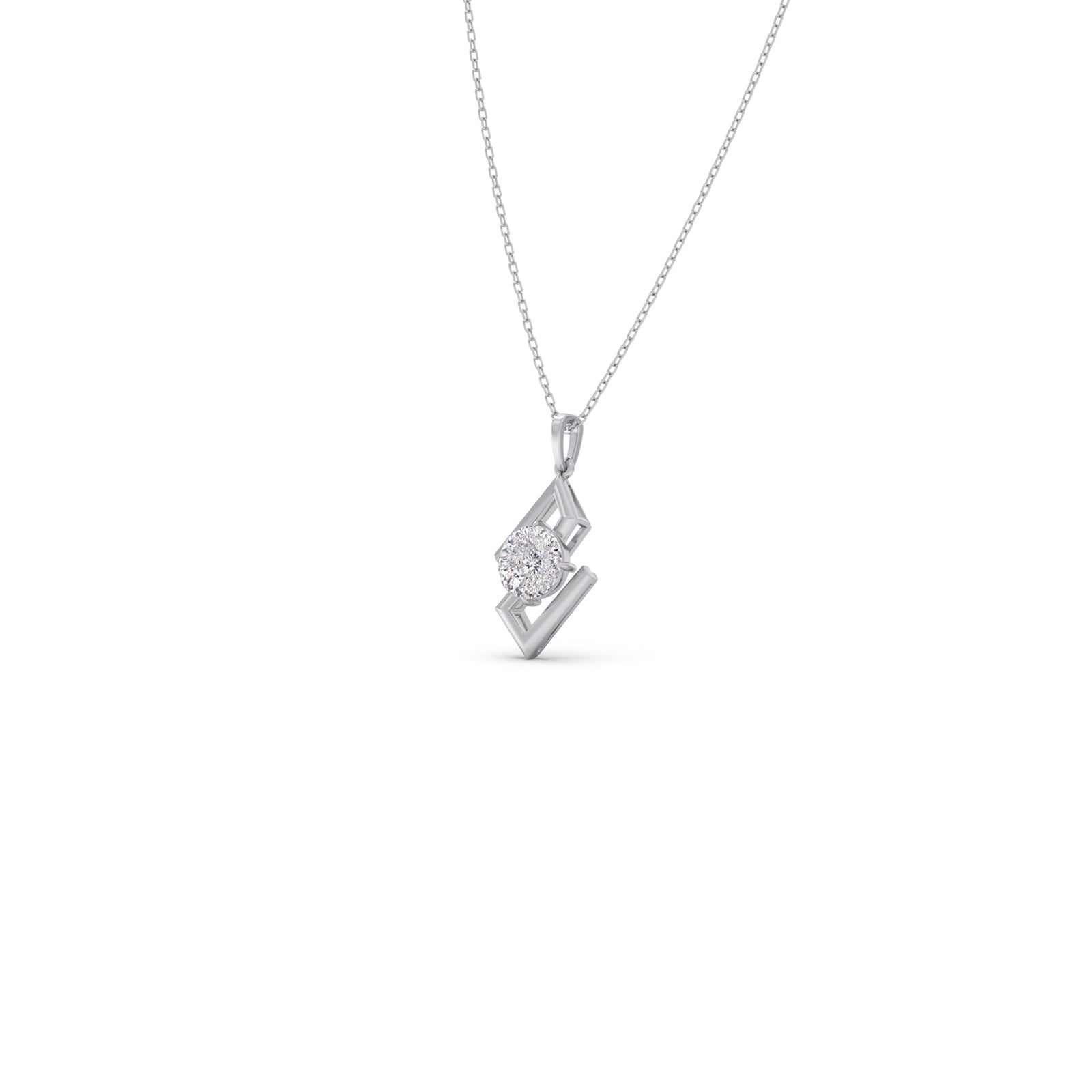 Defined by clean lines and a striking form, this pendant features a 1.5 ct. Portuguese Cut Solitaire set within a sculptural frame. The unique geometry brings balance and edge, while our signature 0.008 ct. Round Diamond adds a quiet mark of Lucira’s timeless craftsmanship.