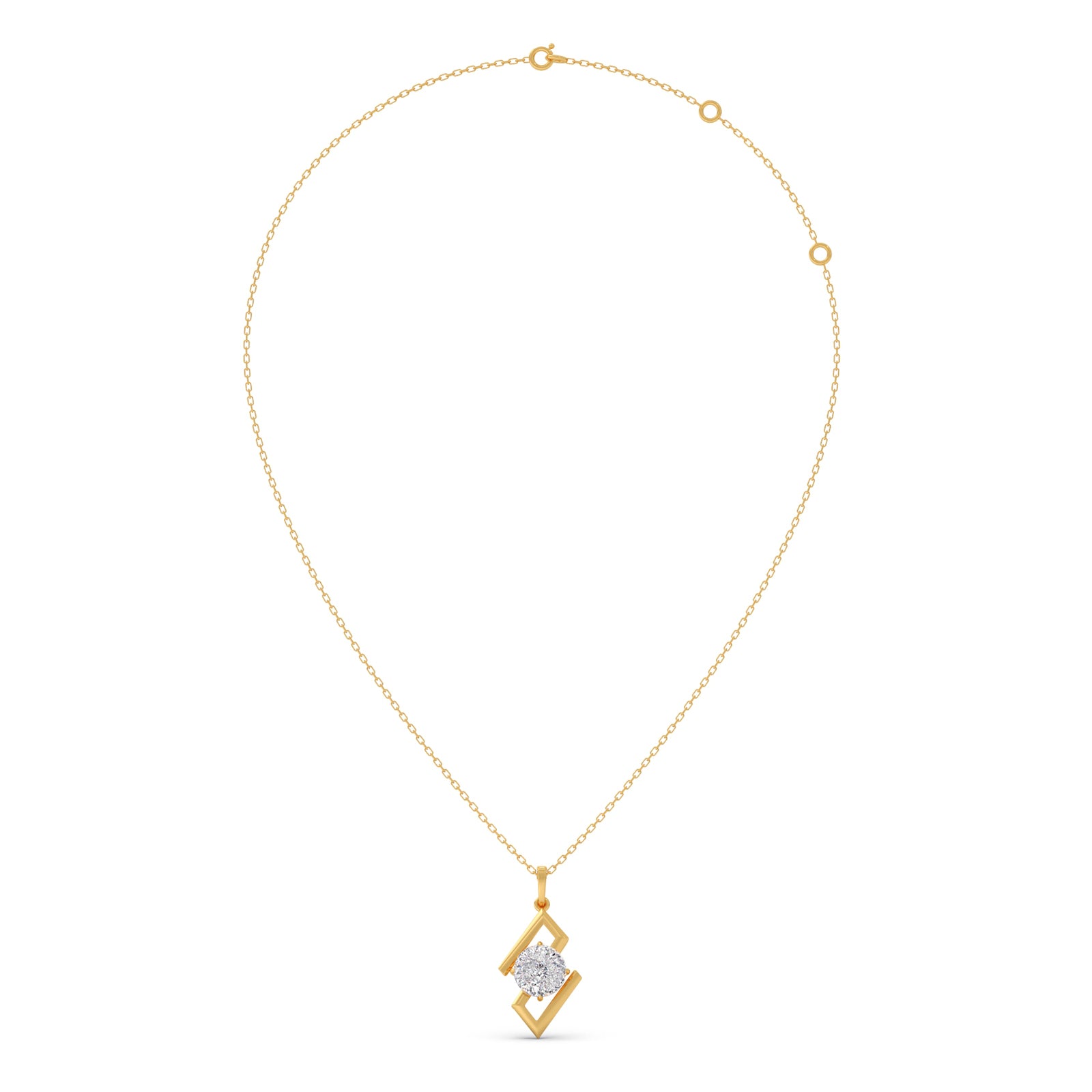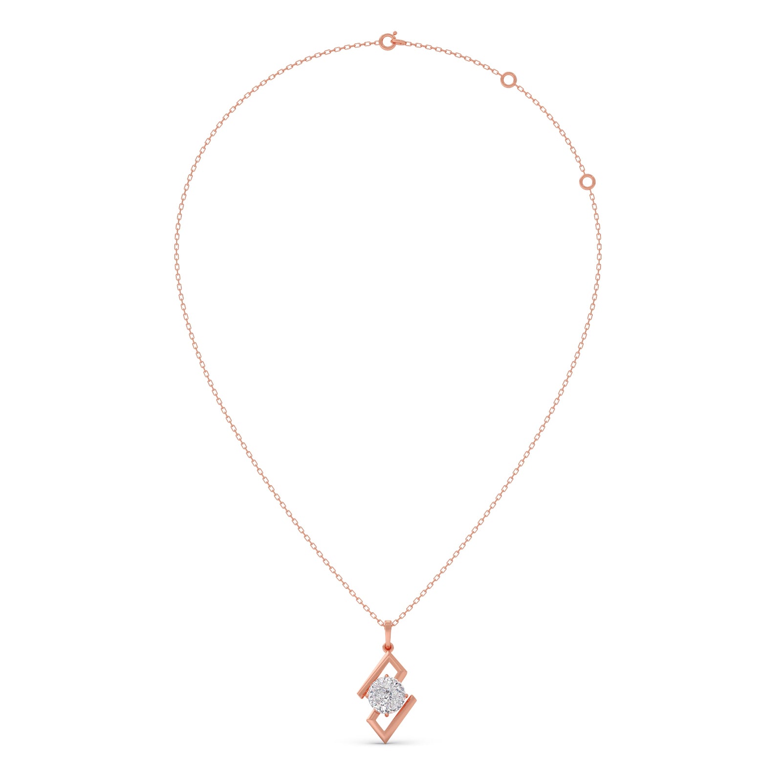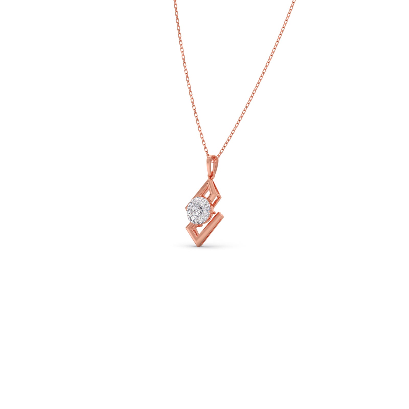Defined by clean lines and a striking form, this pendant features a 1.5 ct. Portuguese Cut Solitaire set within a sculptural frame. The unique geometry brings balance and edge, while our signature 0.008 ct. Round Diamond adds a quiet mark of Lucira’s timeless craftsmanship.