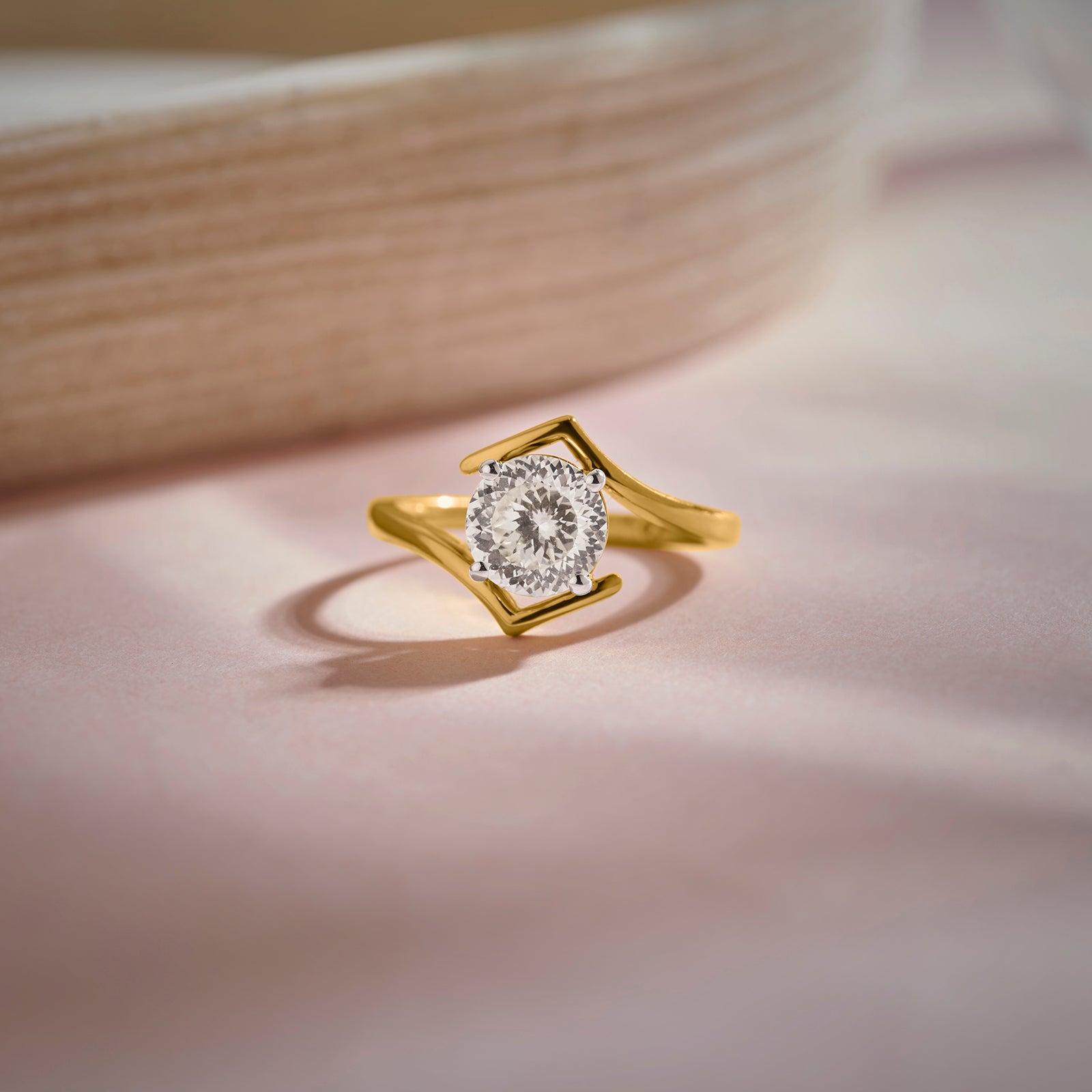 An elegant bypass shank sweeps around a striking 1.5 ct. Portuguese Cut solitaire, capturing a depth of brilliance that feels timeless. Nestled within the band, a 0.008 ct. round diamond adds a quiet signature—crafted not for attention, but for those who notice everything.
