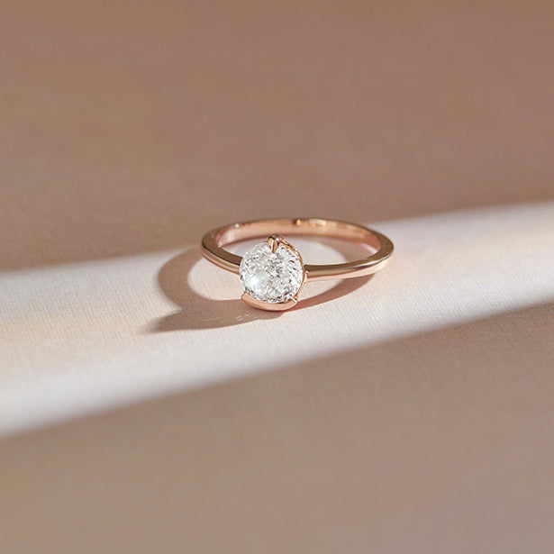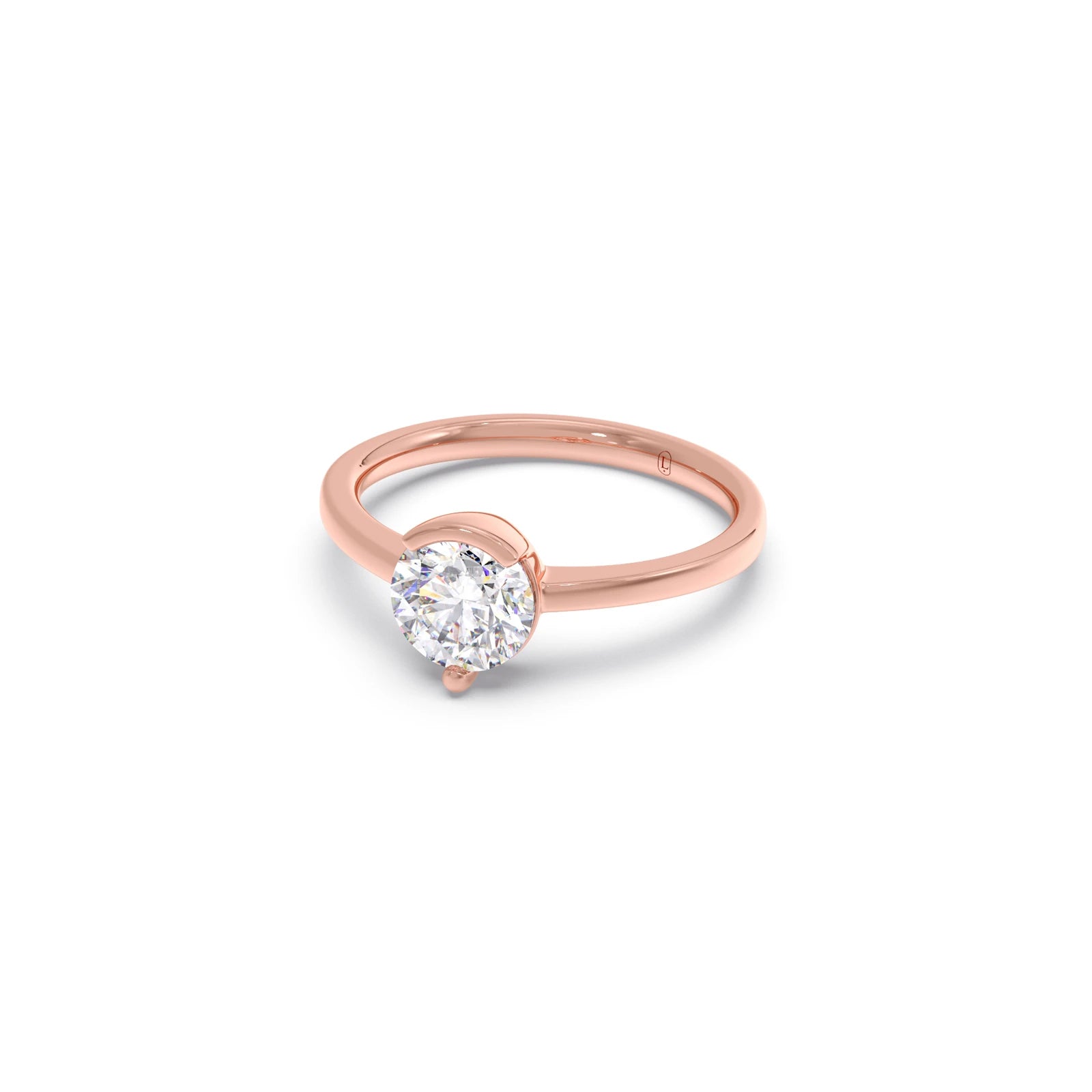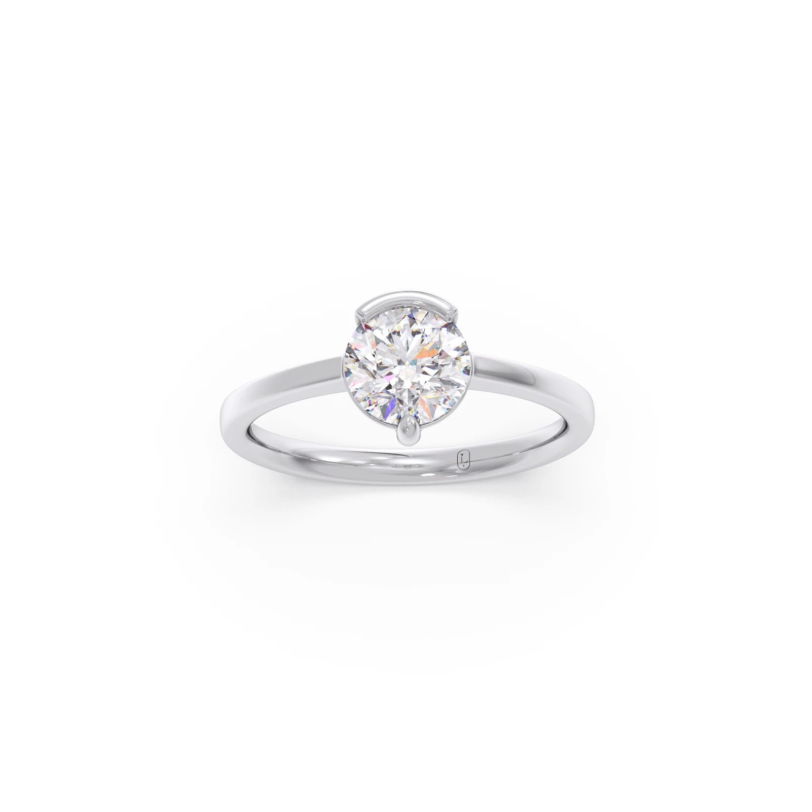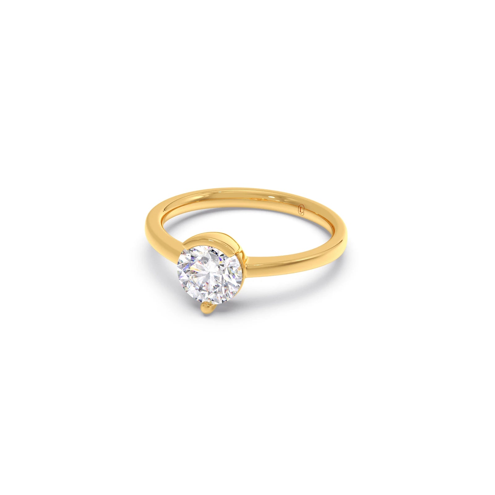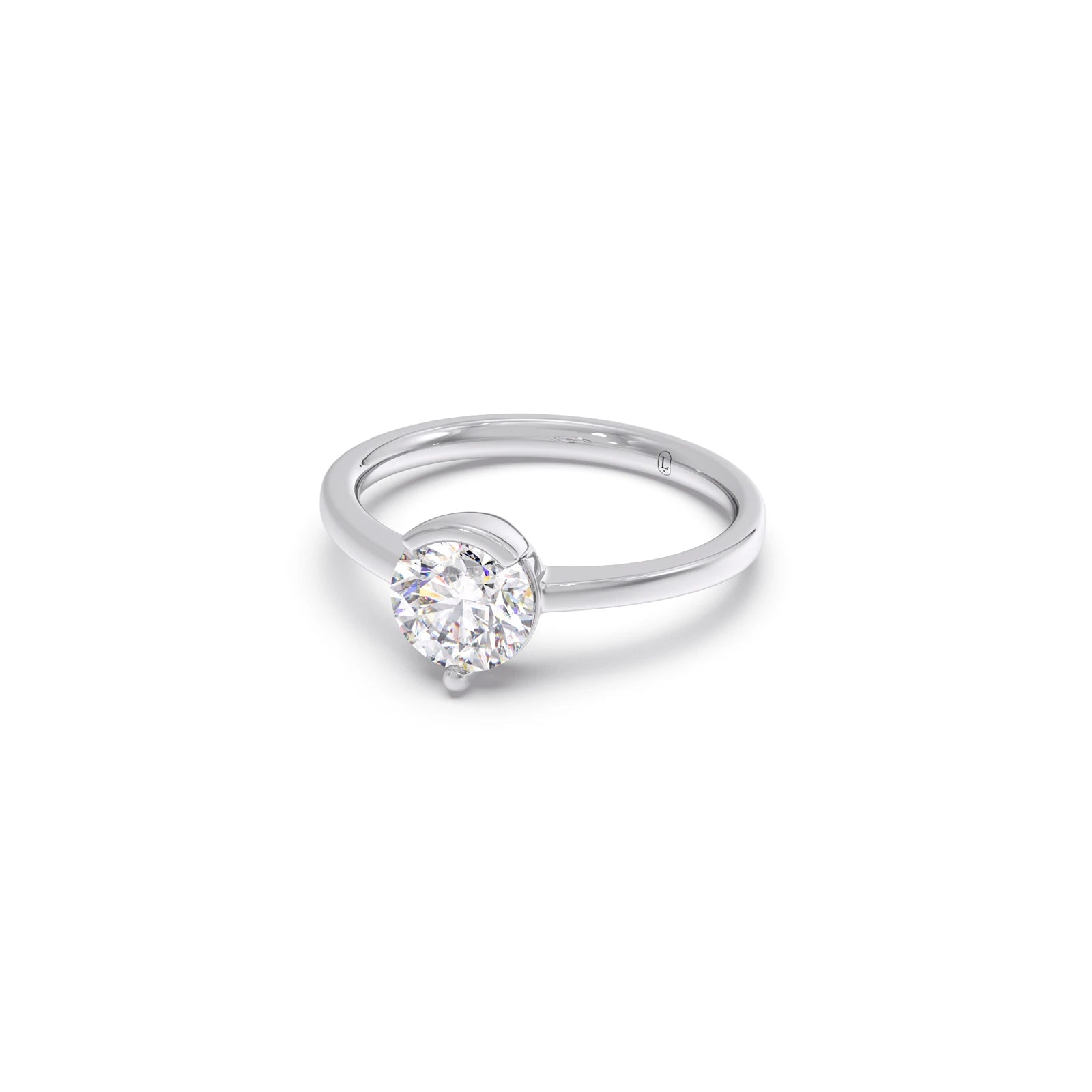 The Half Bezel & Claw Prong Set Luminous Round Shape Solitaire Ring features a radiant round-cut diamond, artfully secured with a mix of sleek half bezel and classic claw prongs. This striking design blends modern minimalism with timeless elegance, creating a perfect statement of refined sophistication.