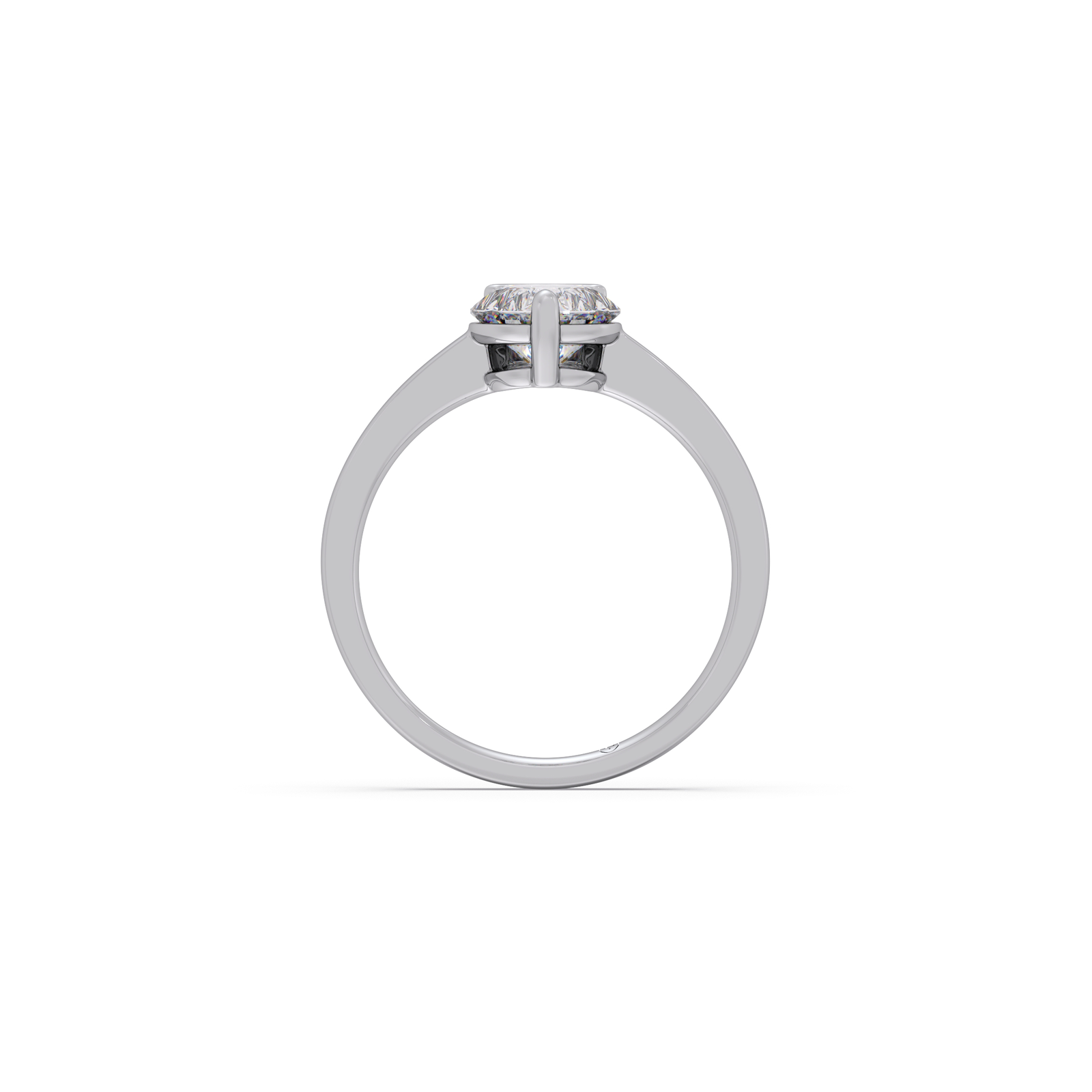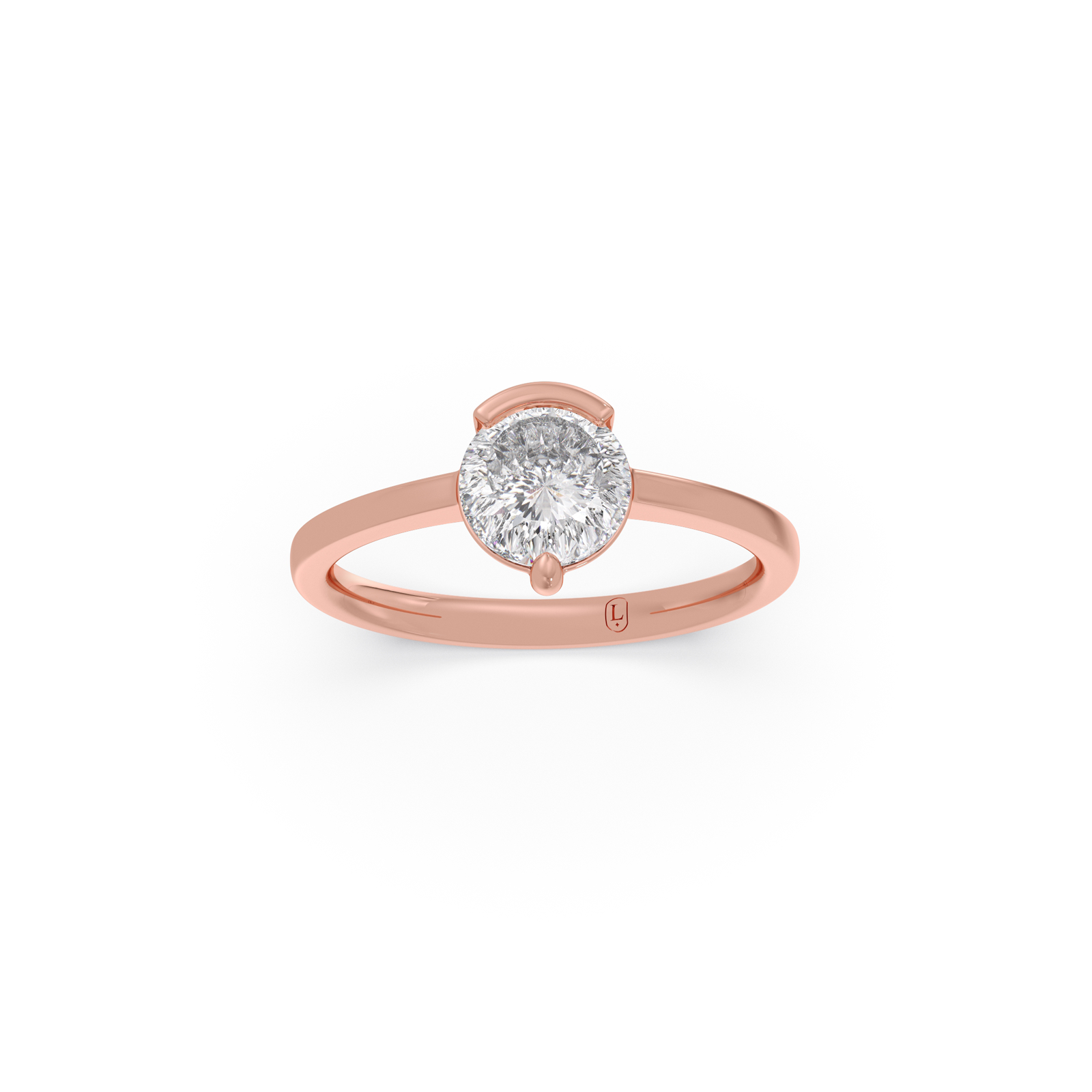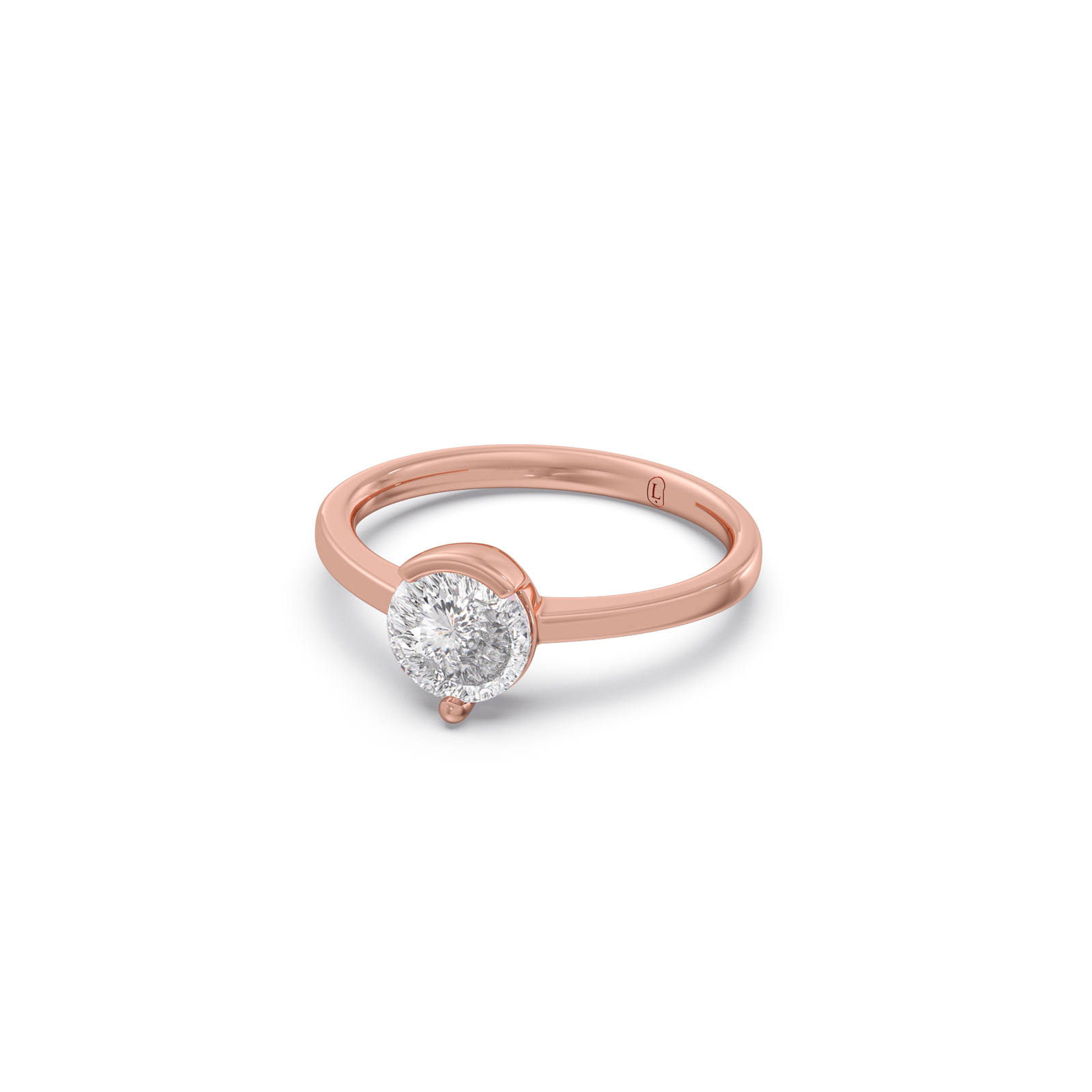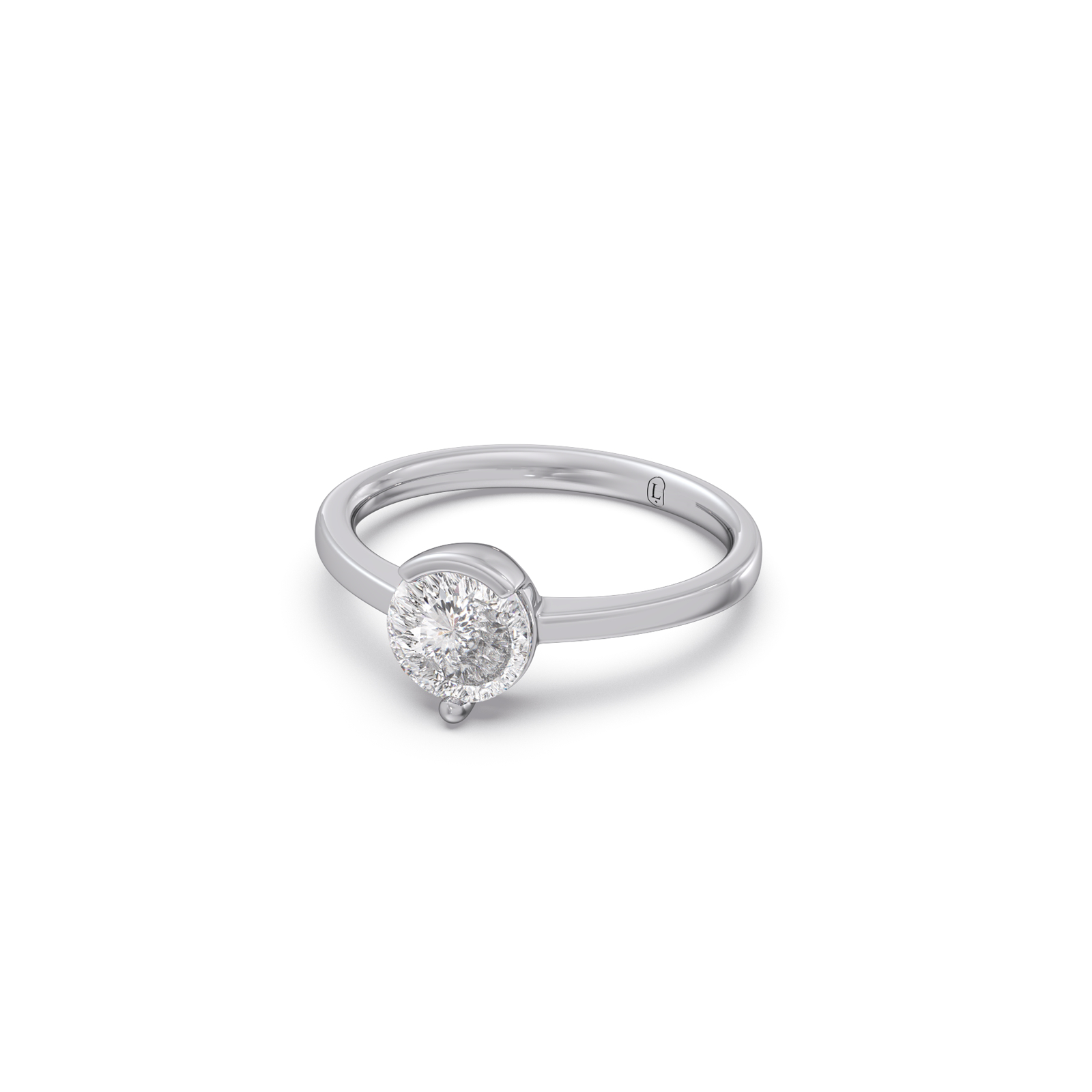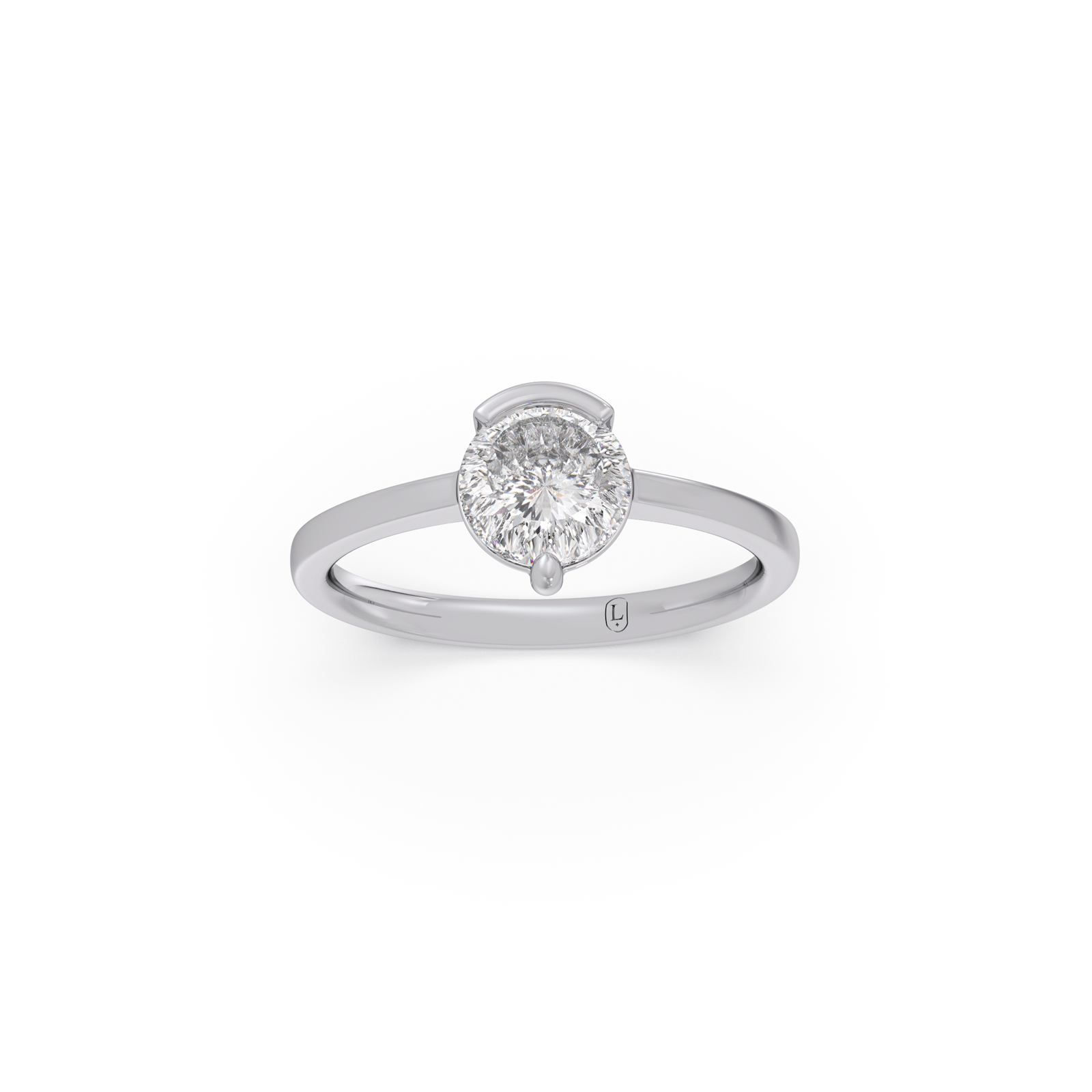 The Half Bezel & Claw Prong Set Luminous Portuguese Solitaire Ring features a lustrous round-cut diamond, artfully secured with a mix of sleek half bezel and classic claw prongs. This striking design blends modern minimalism with timeless elegance, creating a perfect statement of refined sophistication.