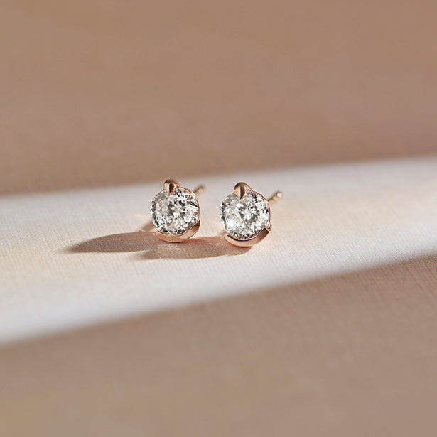 The Portuguese Solitaire Half Bezel Earrings features a brilliant round-cut diamond, gracefully held by a unique combination of half bezel and claw prongs. This modern yet timeless design offers exceptional sparkle and a refined finish, perfect for effortless, everyday elegance.