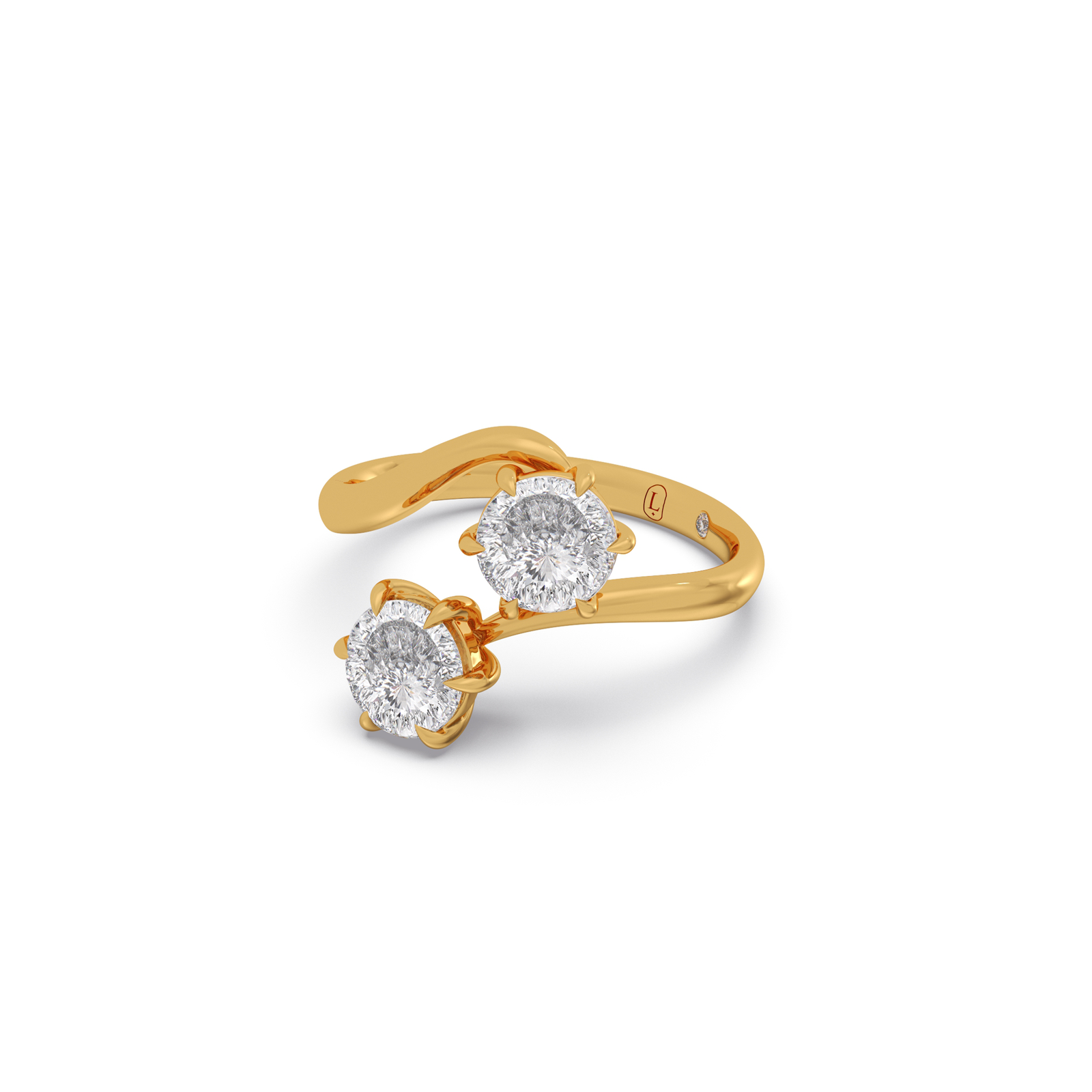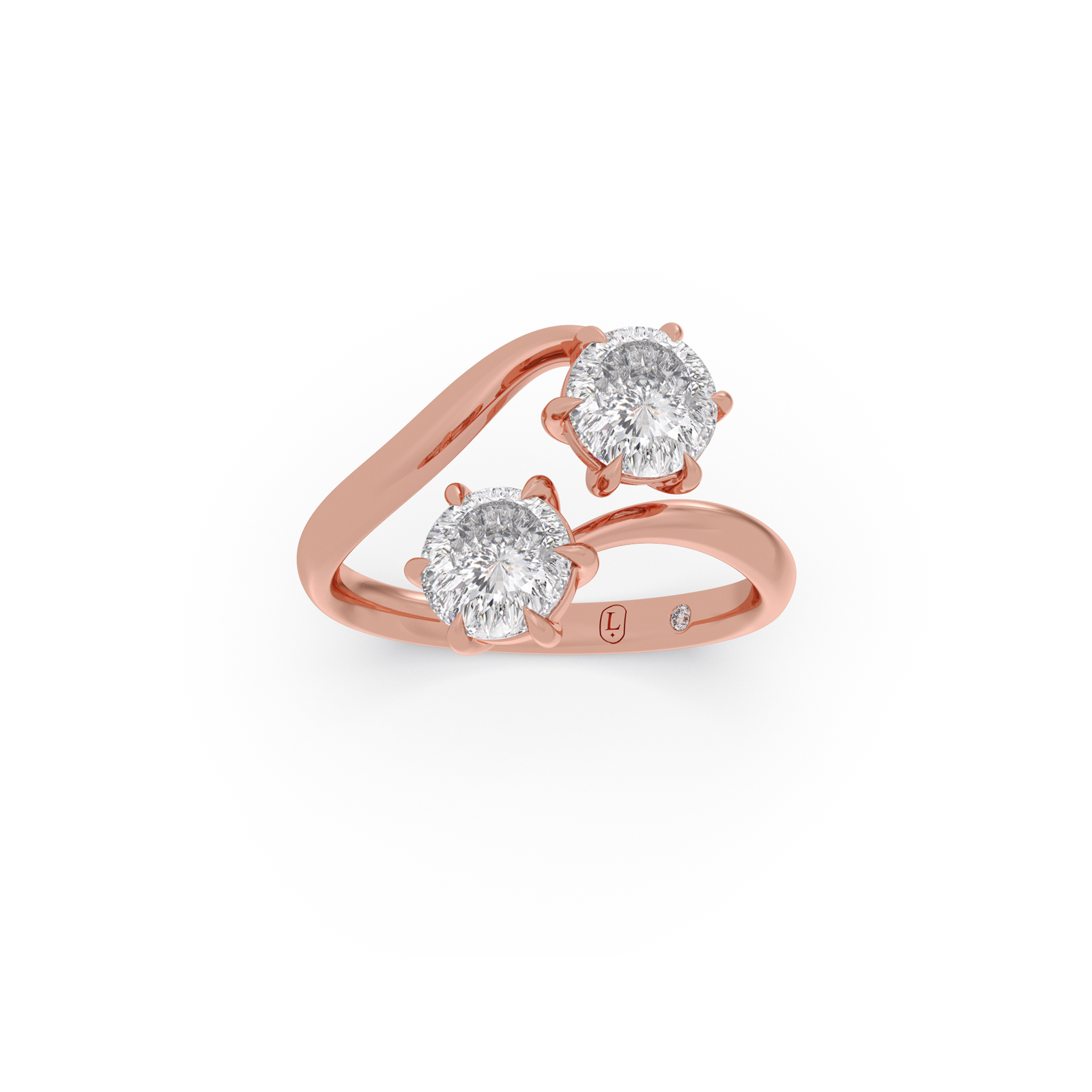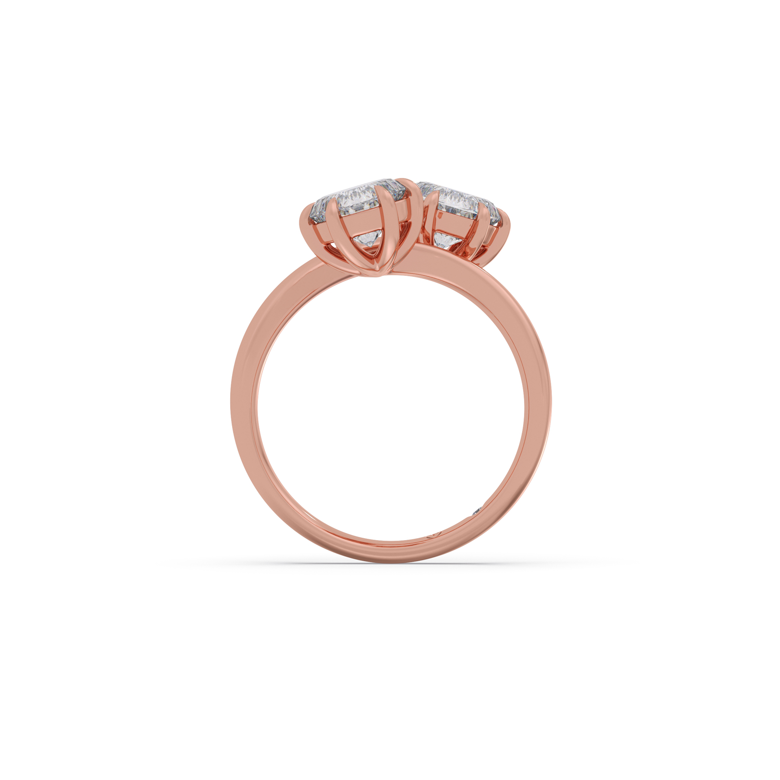 Two 1 ct. Portuguese Cut Solitaires sit in graceful balance, reflecting the harmony of two distinct souls. Set in an elegant Toi et Moi design, this ring captures connection and dual brilliance. Finished with our signature 0.008 ct. Round Diamond—a quiet symbol of lasting union.