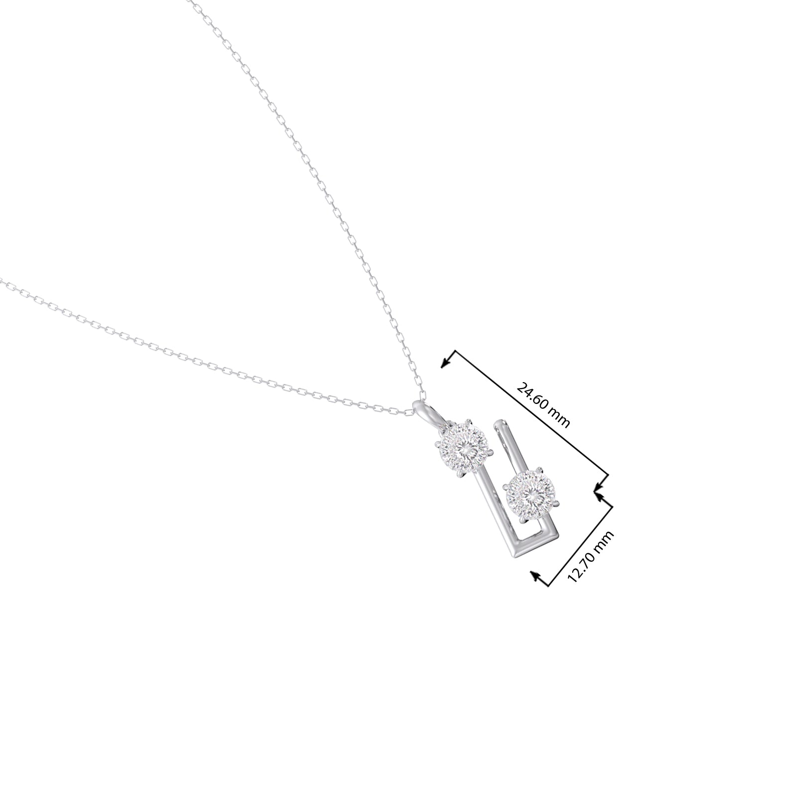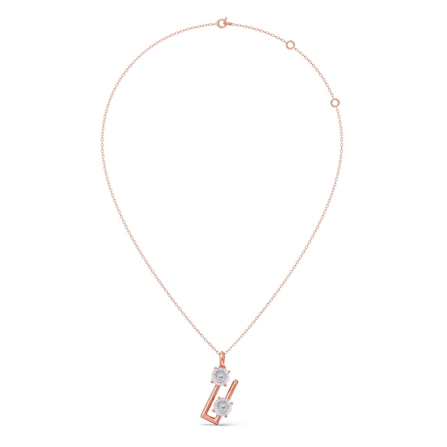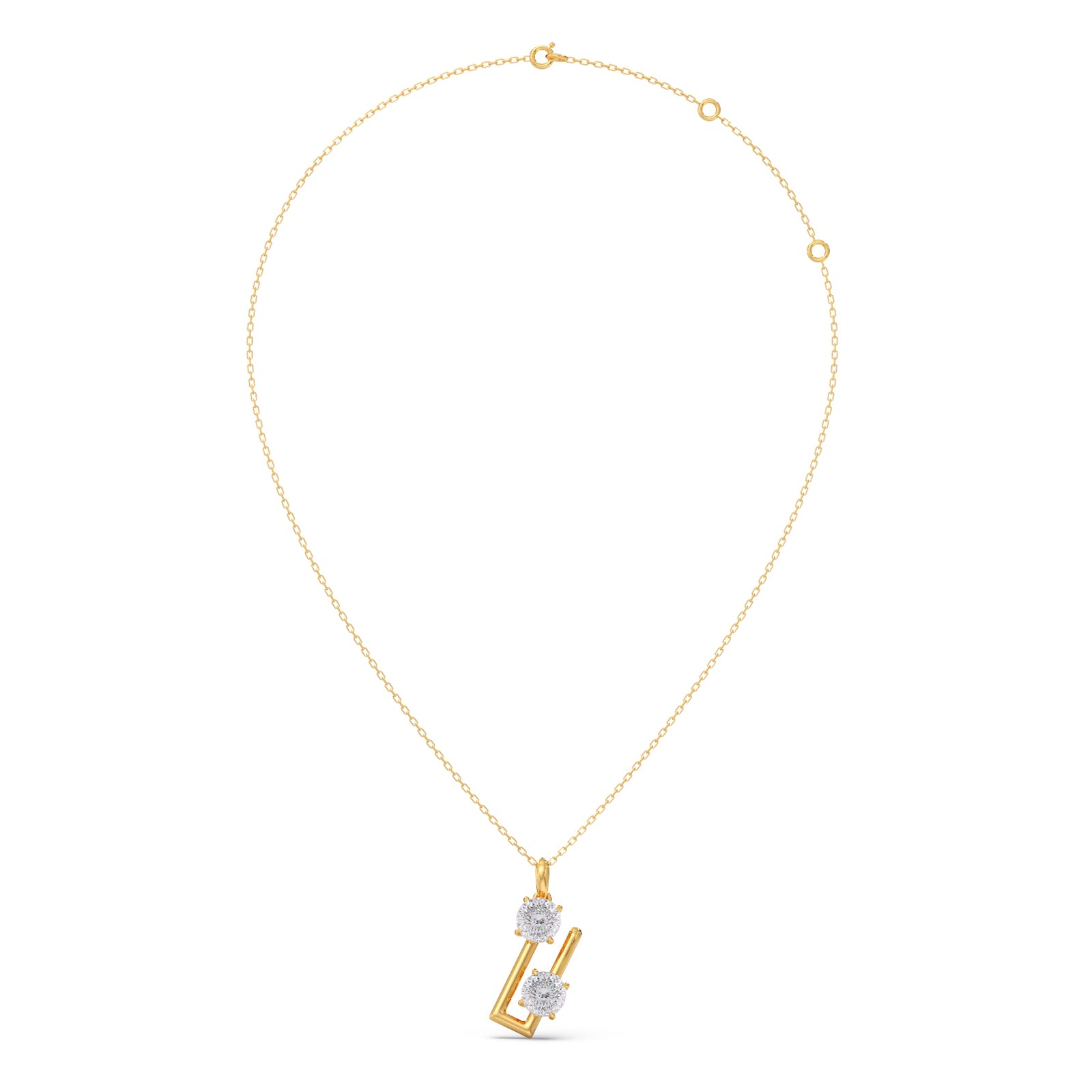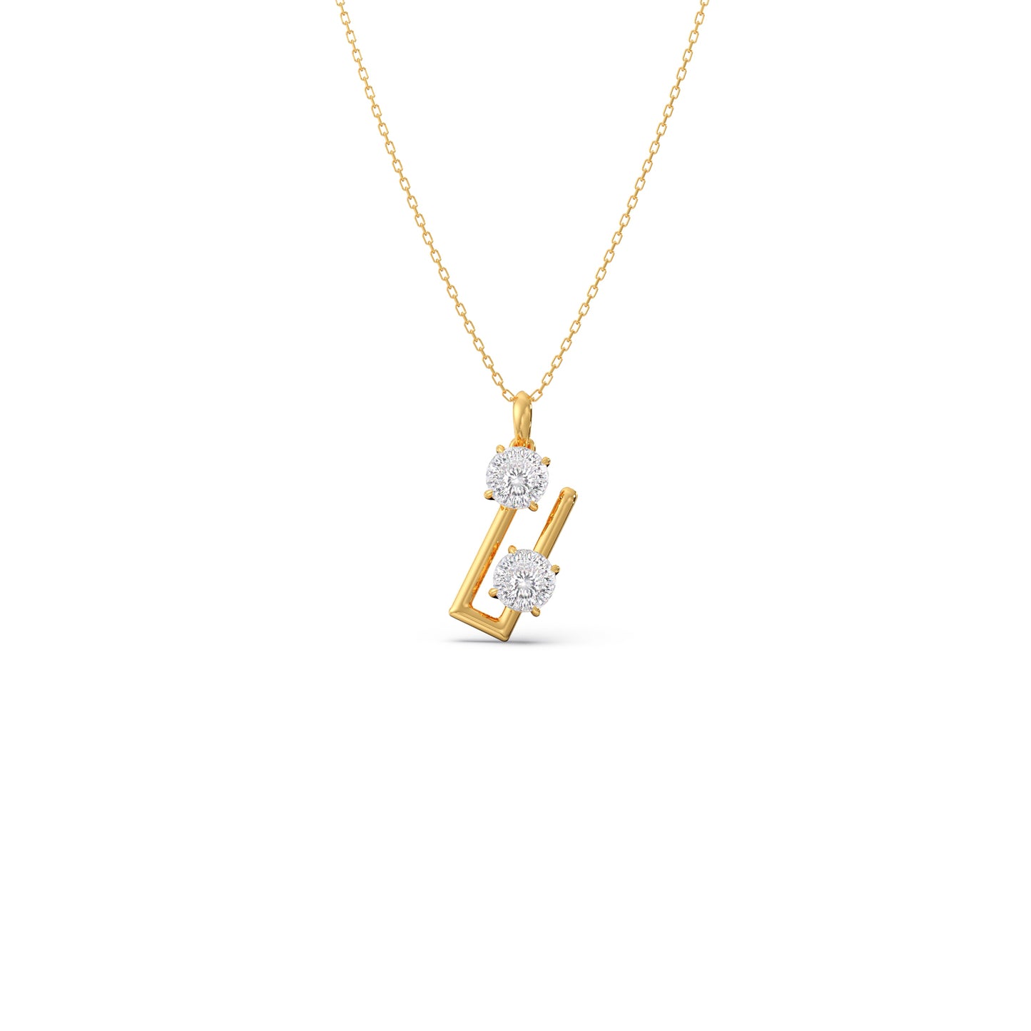 Two 1 ct. Portuguese Cut Solitaires are suspended in perfect harmony within a tilted U-shaped frame. Bold yet fluid, the design captures a sense of movement and balance. Finished with our signature 0.008 ct. Round Diamond—a subtle detail that anchors Lucira’s enduring craftsmanship.