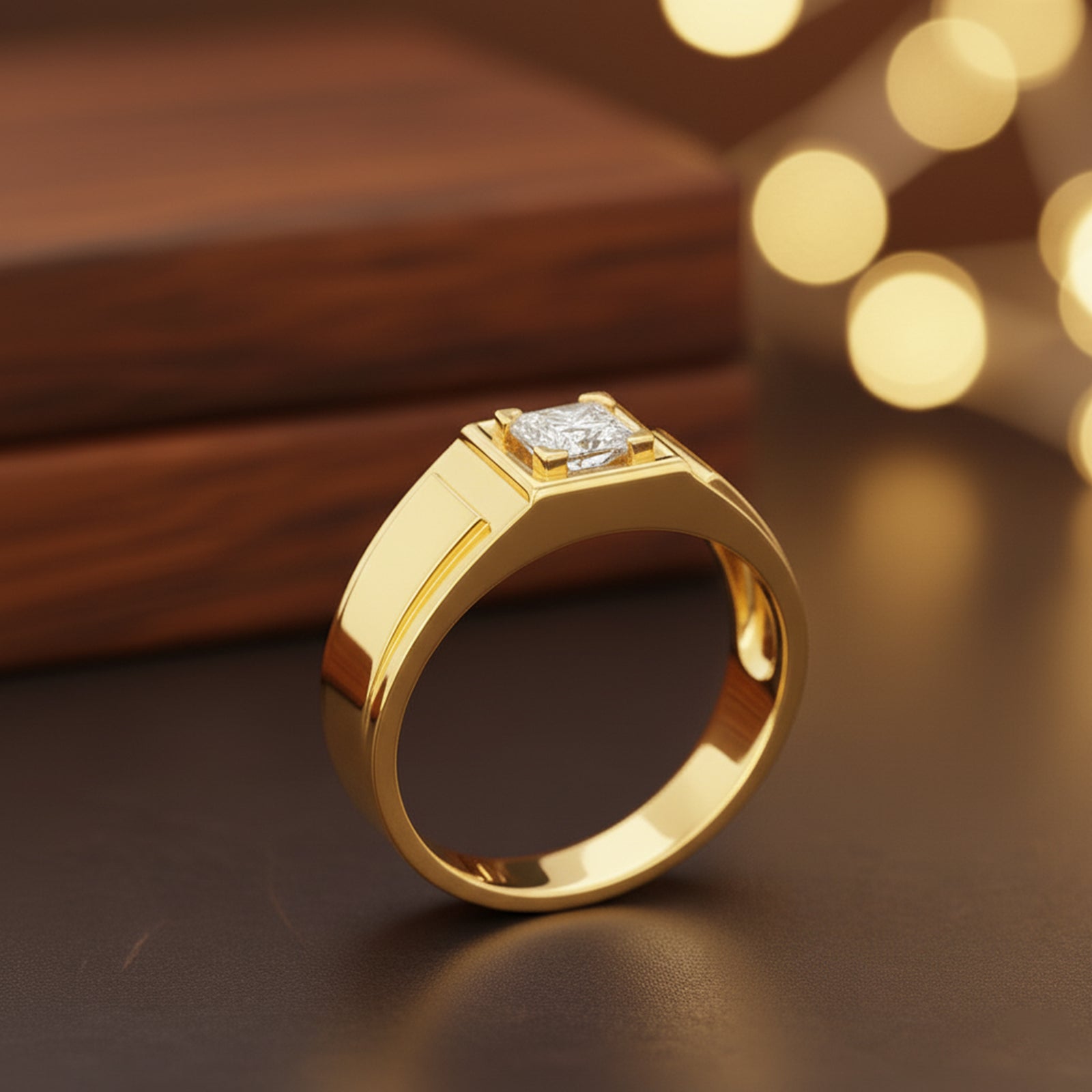 This men's classic ring features a princess-cut diamond, set in a timeless design. The ring offers a sophisticated and understated elegance, perfect for everyday wear or special occasions. Its clean lines and focus on the diamond create a refined masculine aesthetic.