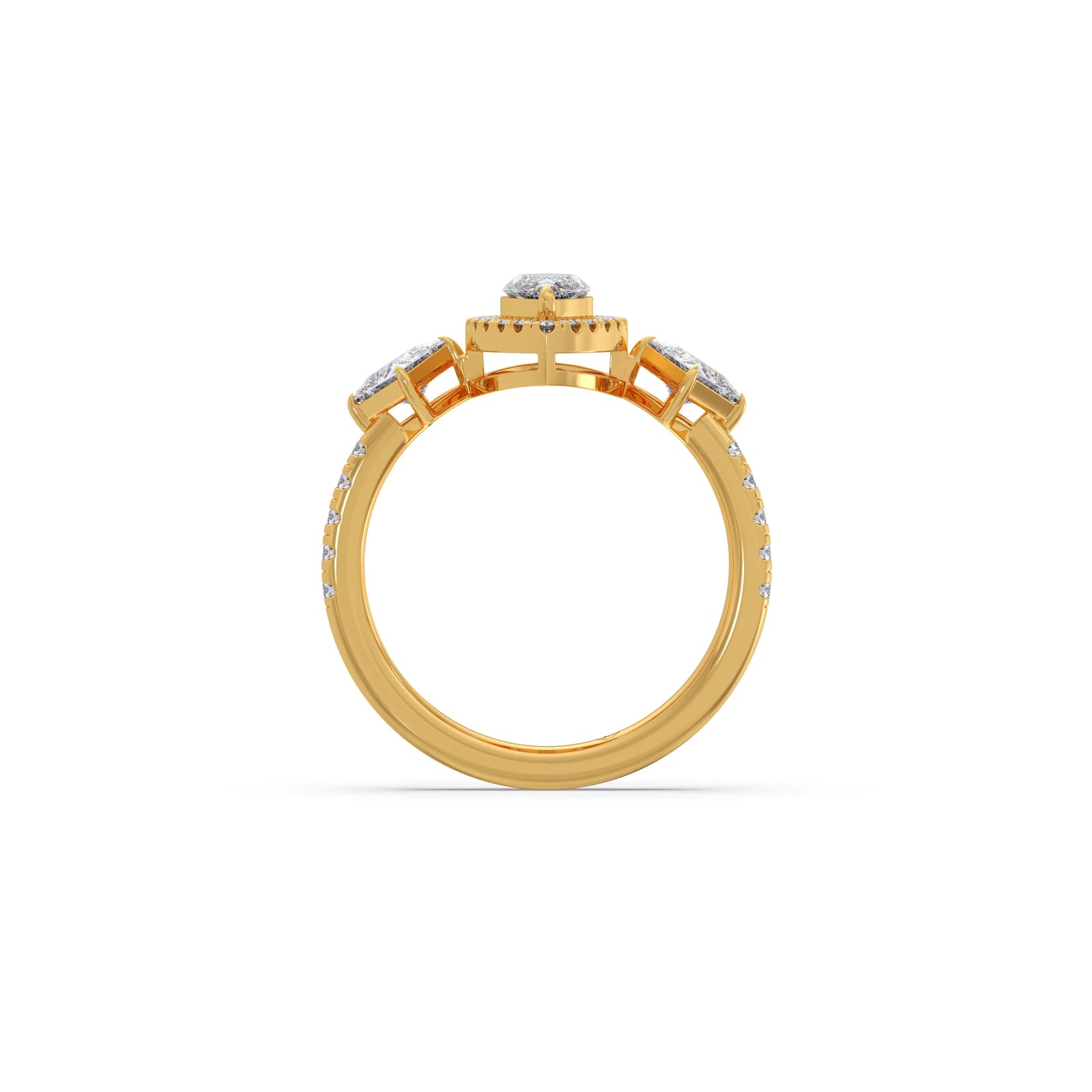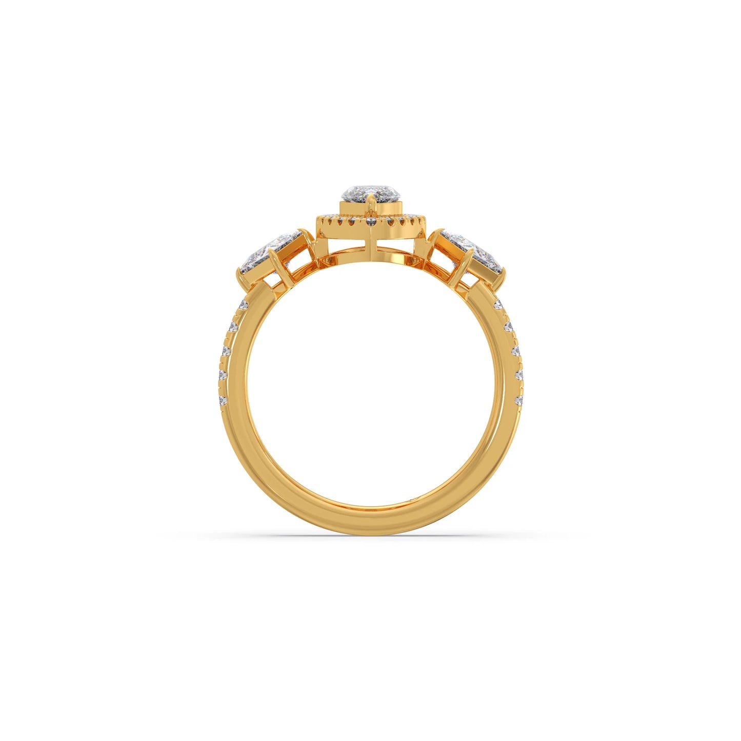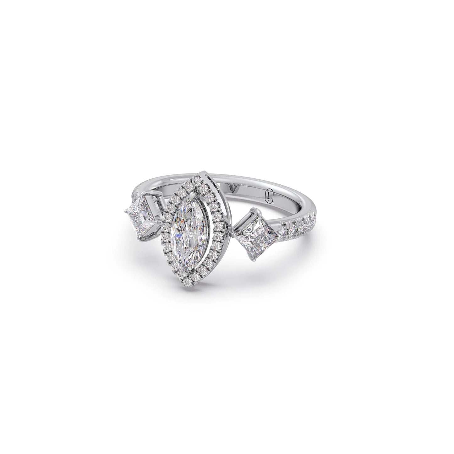 "A captivating fusion of shapes, this trilogy ring features a regal princess cut, an elegant marquise, and a dazzling round diamond. Symbolizing your past, present, and future, this unique combination offers dynamic sparkle and sophisticated style. A truly distinctive piece that celebrates your multifaceted love story."