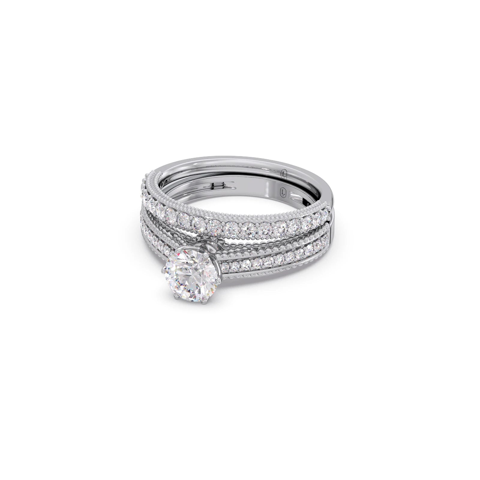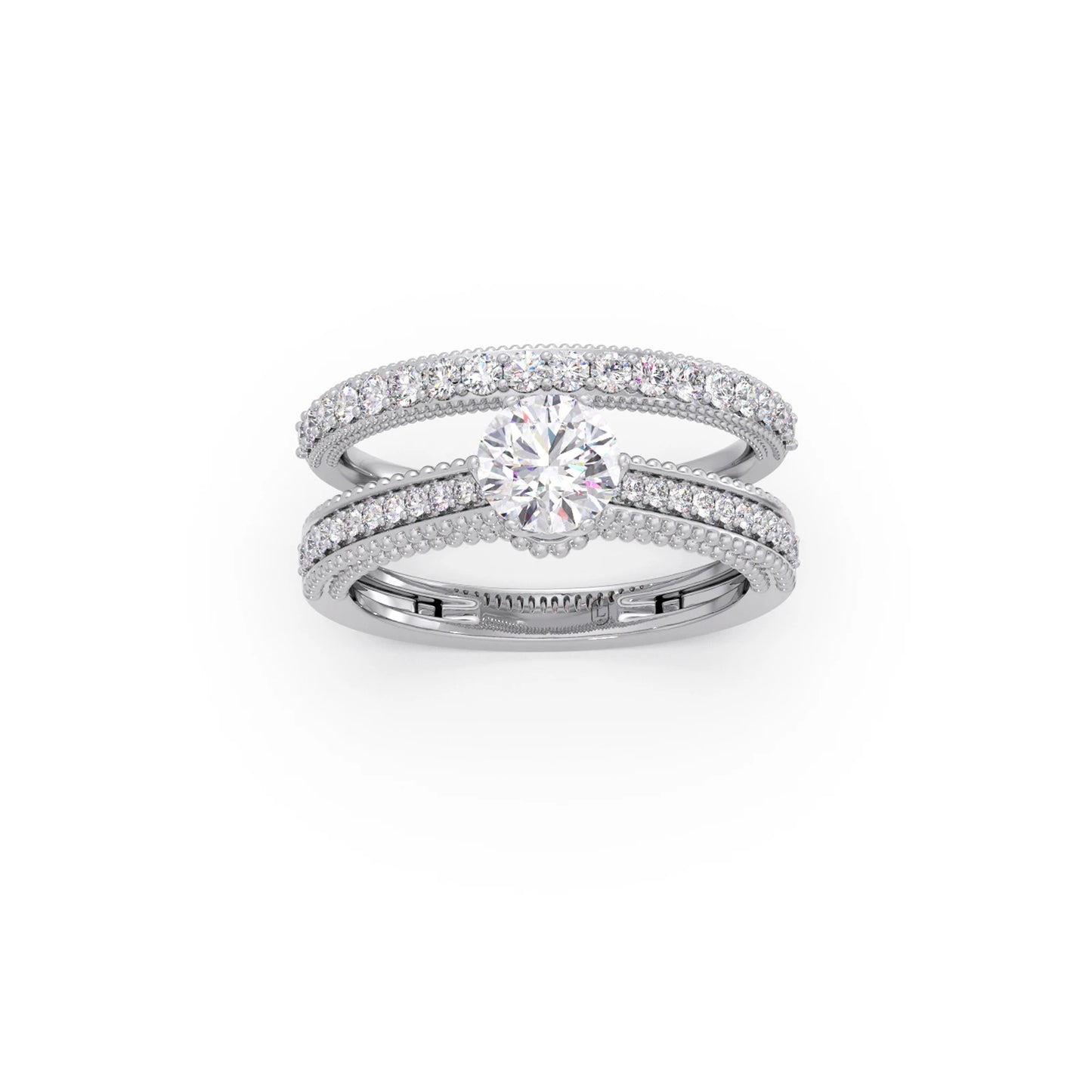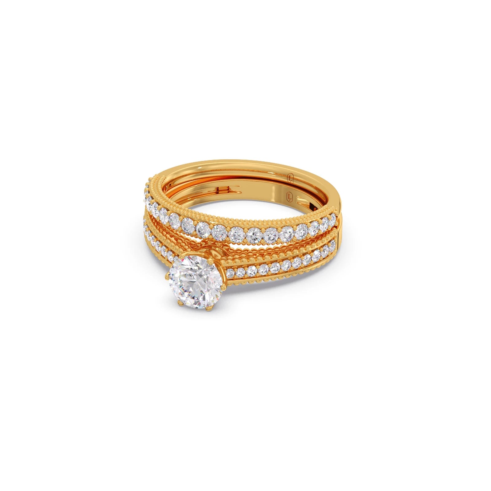 The Prong-Set Diamond Bridal Ring Set features a dazzling center diamond secured in a classic prong setting, paired with a perfectly matched diamond-accented band. Designed for maximum brilliance and timeless elegance, this set beautifully symbolizes everlasting love and commitment—ideal for your perfect "yes" moment and beyond.