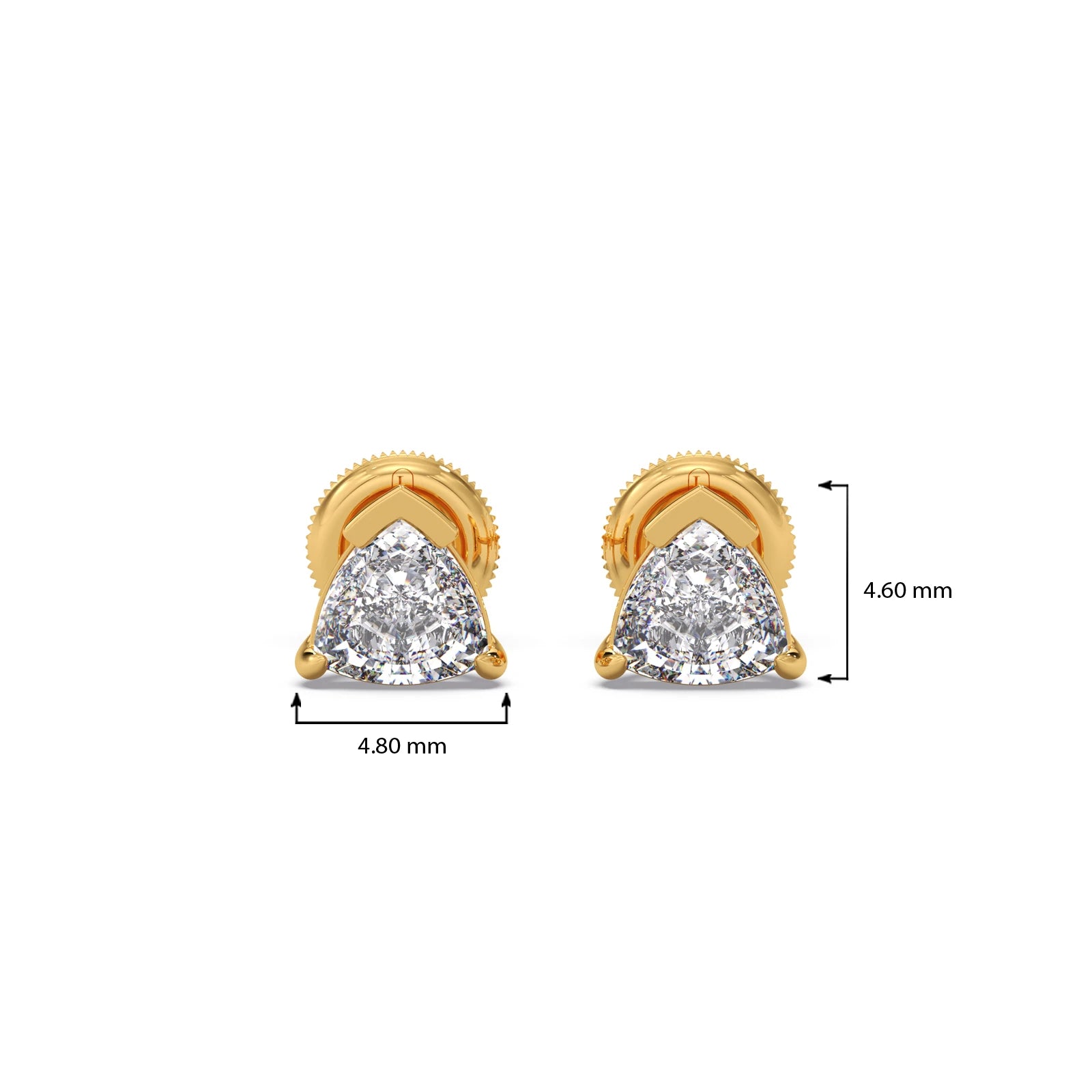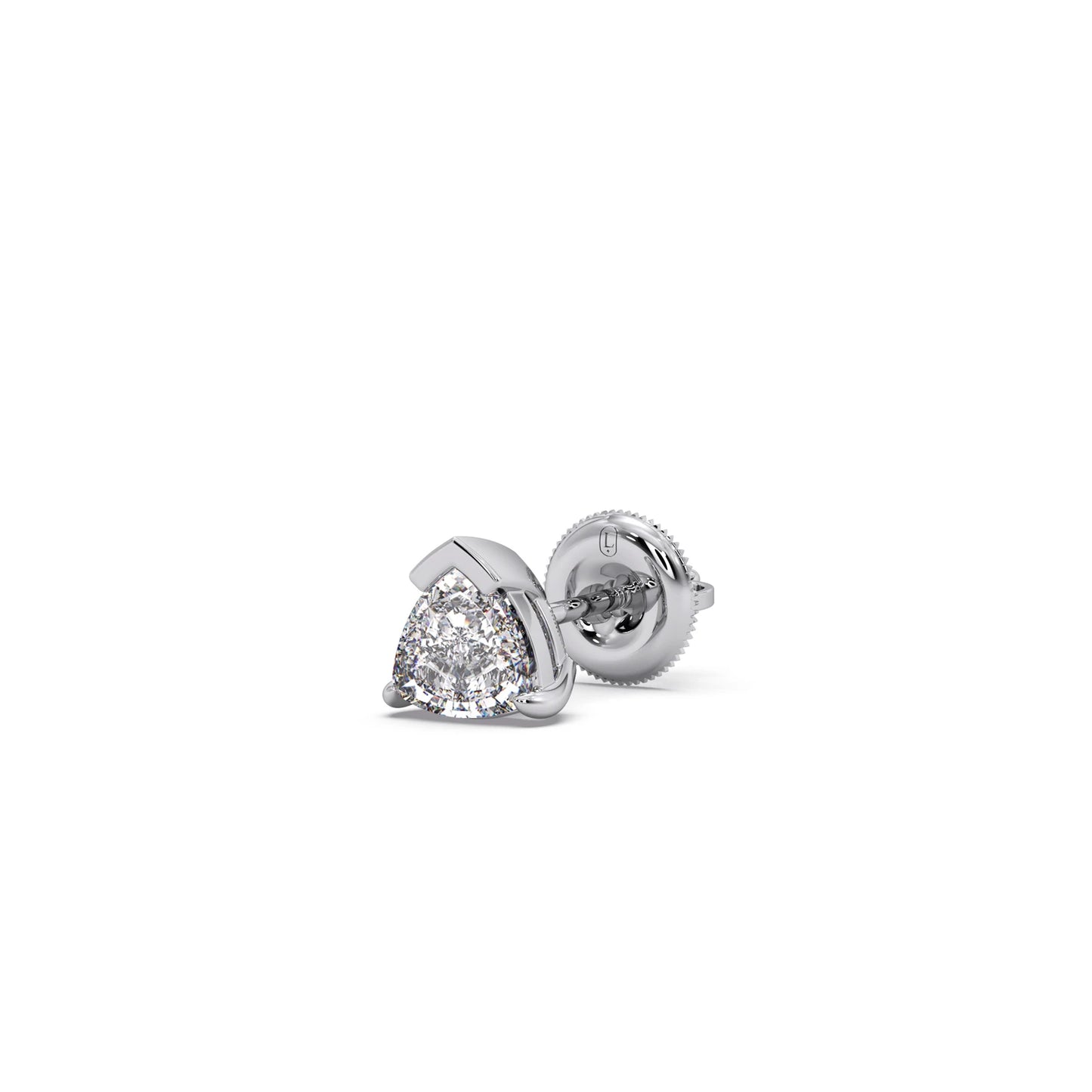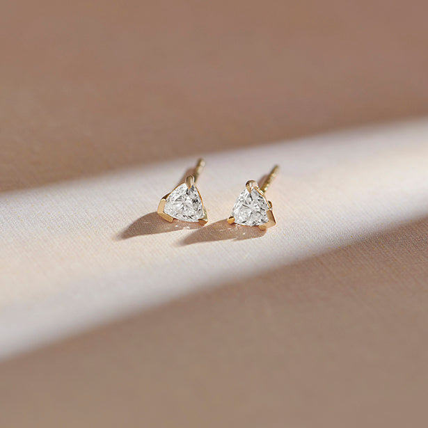 These eye-catching solitaire earrings feature uniquely shaped trillion-cut diamonds held securely in a classic prong setting. The three-sided cut offers a modern and geometric sparkle, making a distinctive statement. Lightweight and elegant, these earrings add a touch of contemporary sophistication to any look, perfect for both everyday wear and special occasions.