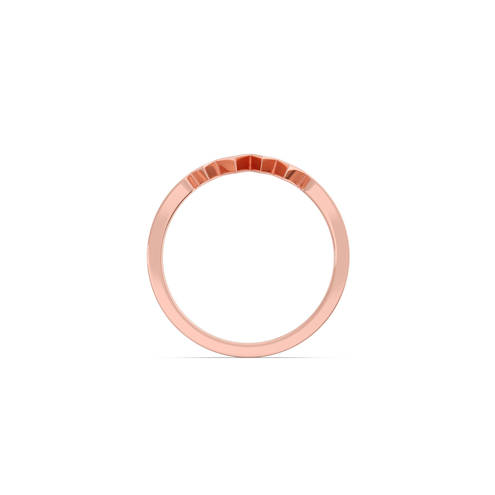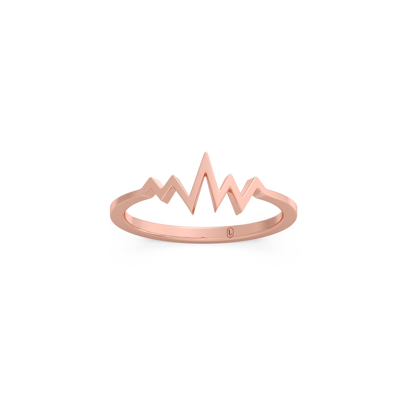 This gold ring features a heartbeats or pulse like pattern on the top half of ring. This ring represents the delicate lightweight and comfortable for daily wear.