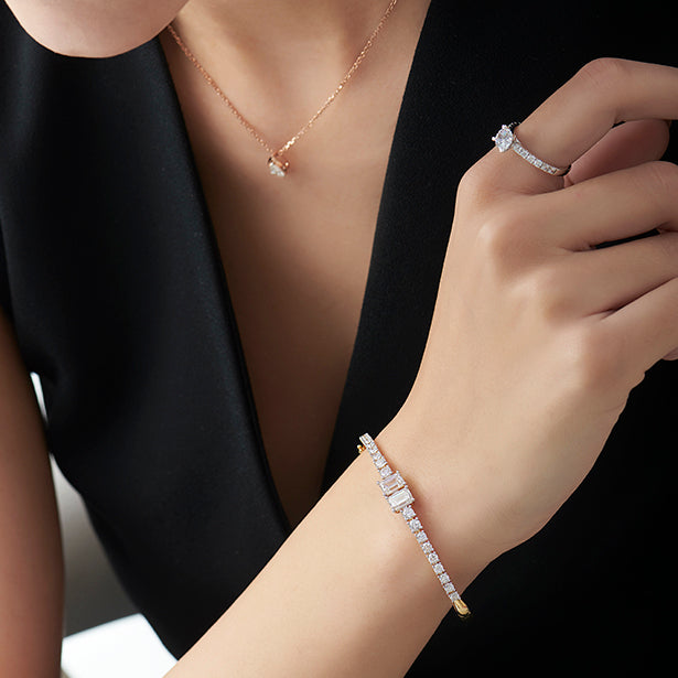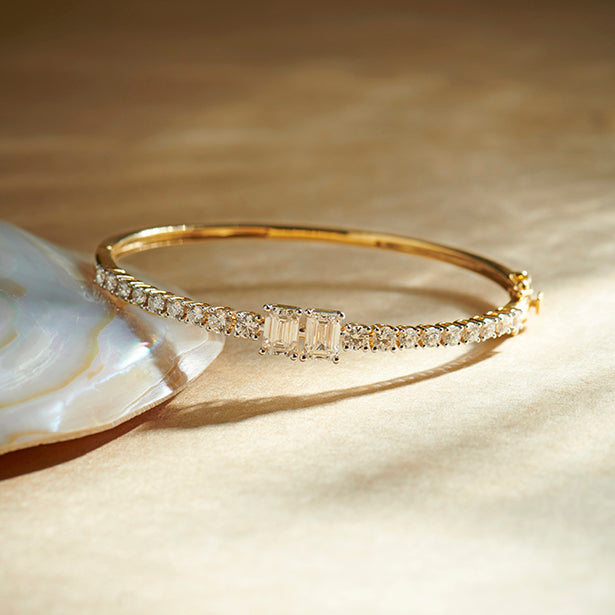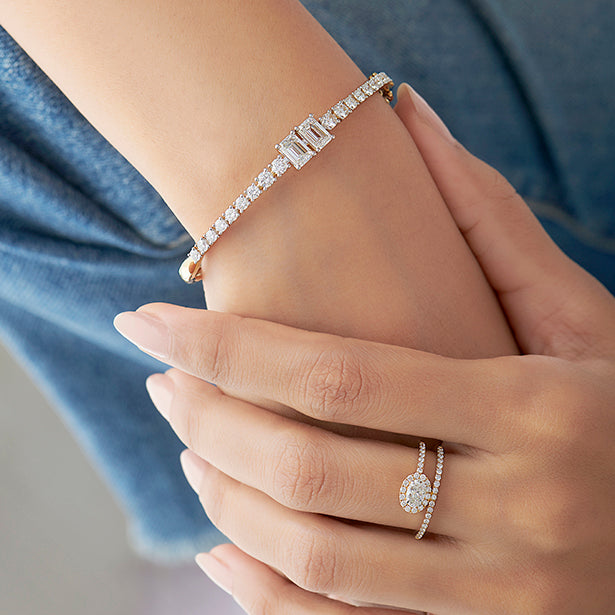 Pear & Emerald Cut Diamond Cuff Bracelet