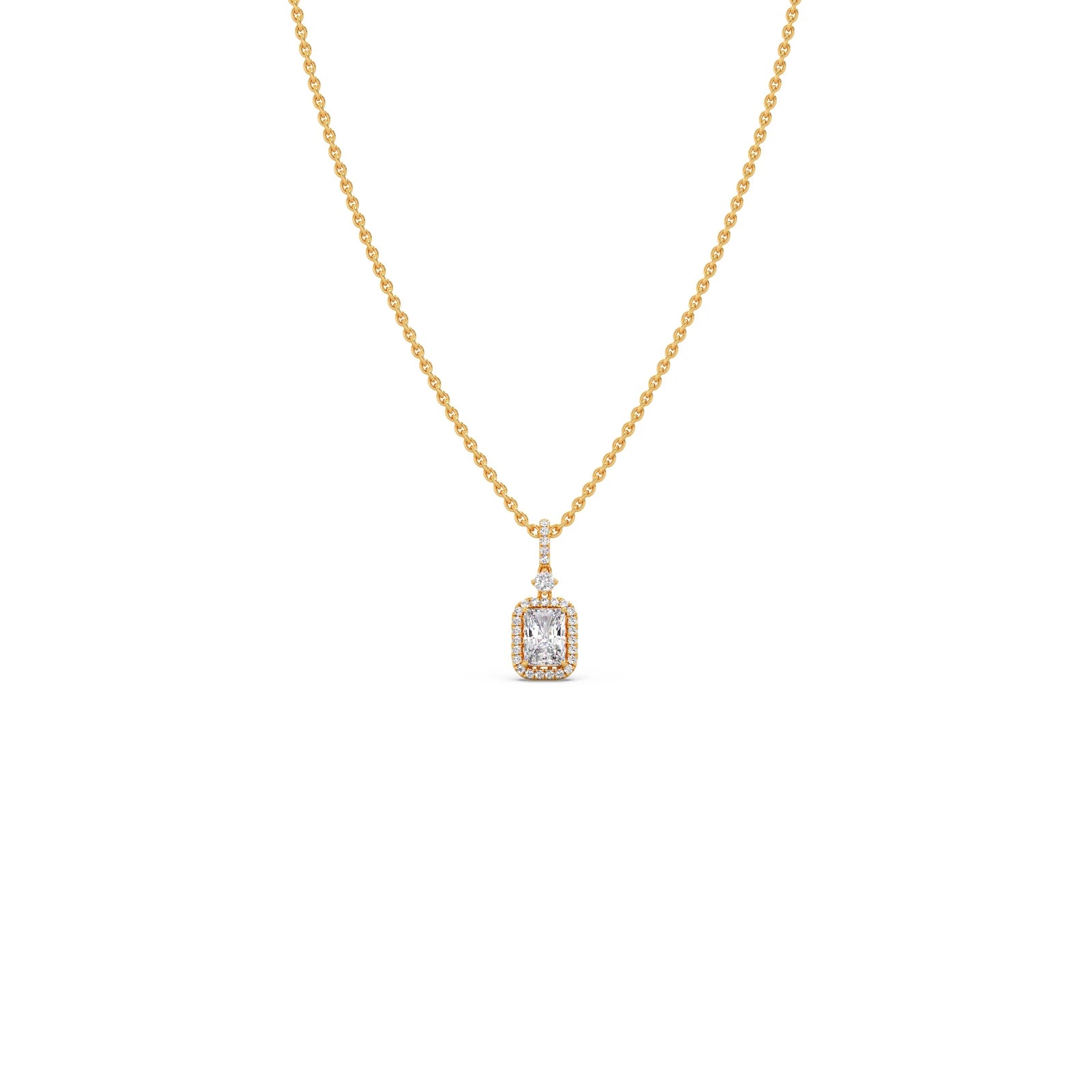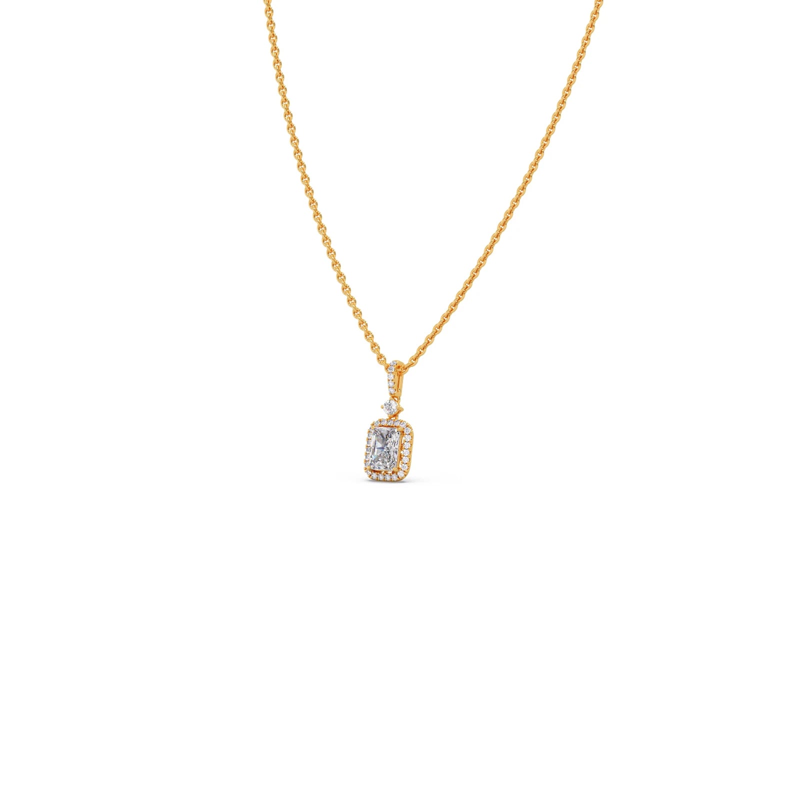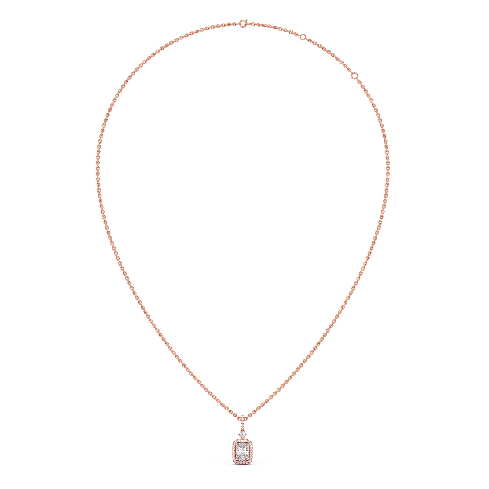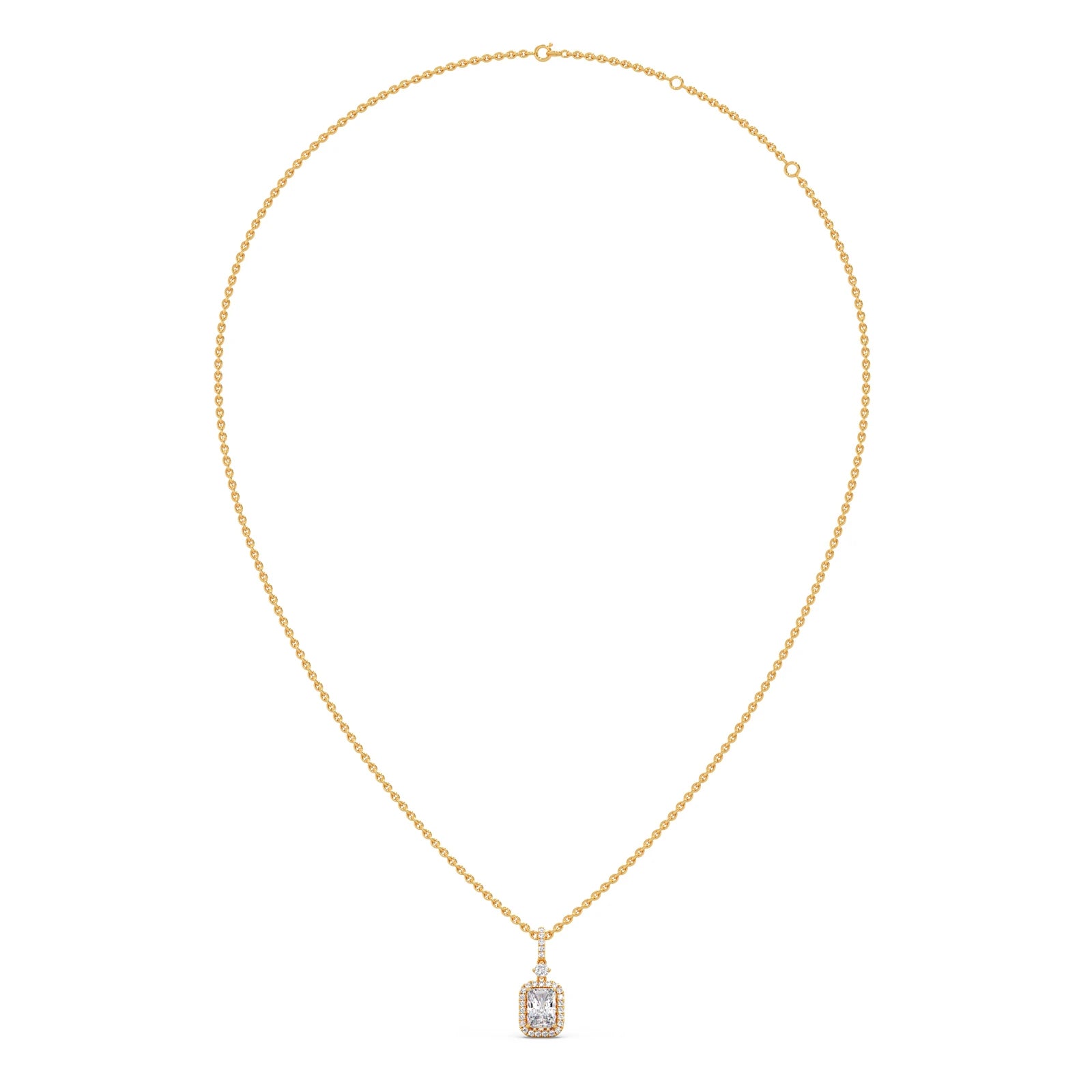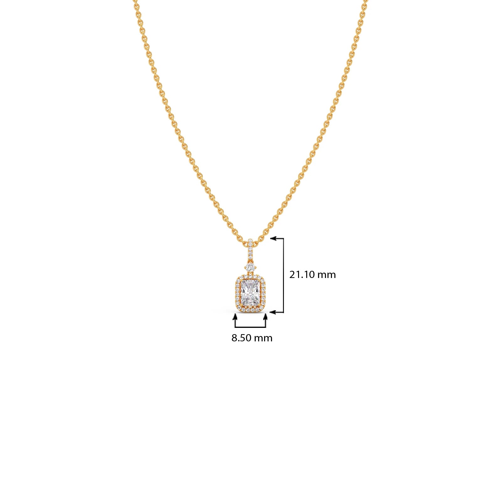 The Radiant Halo Cascade Pendant features a central, dazzling gem embraced by a shimmering halo of smaller diamonds. These cascades of light descend gracefully, creating a breathtaking and dynamic effect. This exquisite pendant exudes sophistication and captivating beauty, perfect for making a memorable statement.