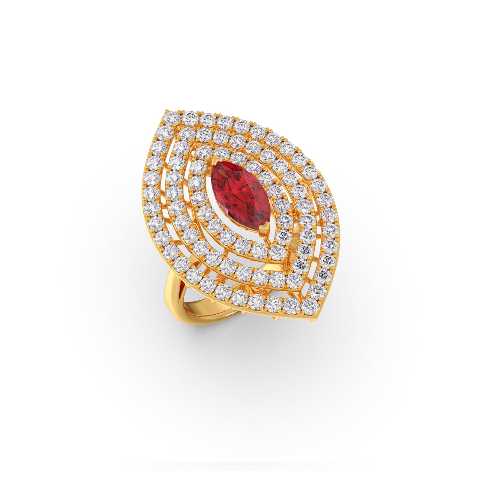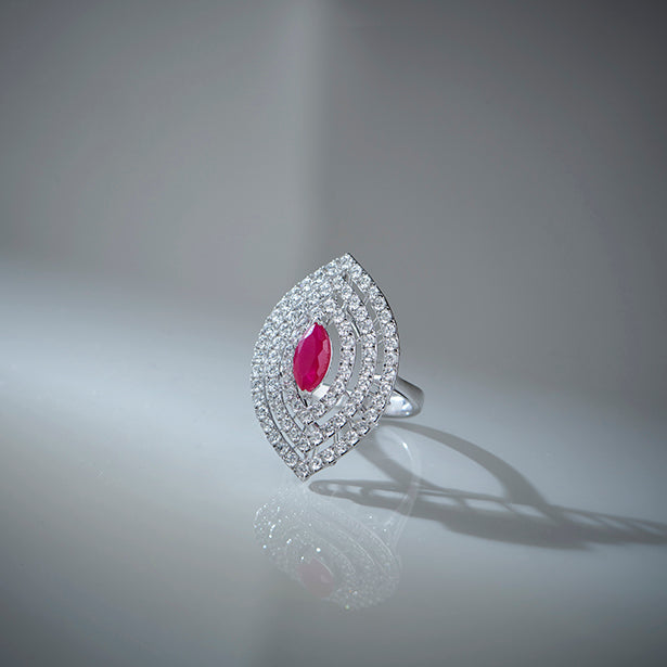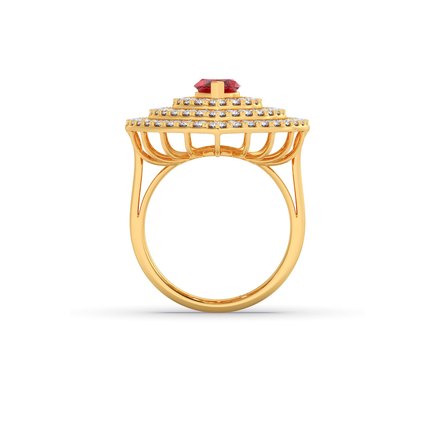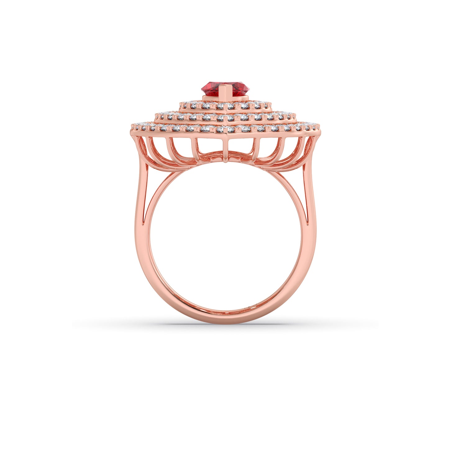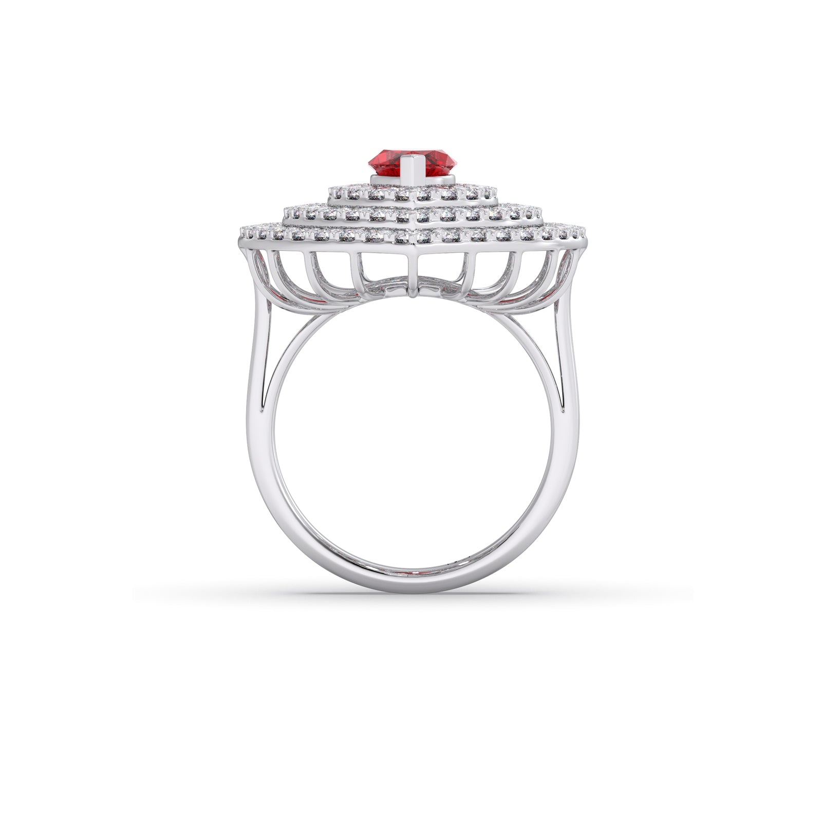 Unleash vibrant sparkle with our Red Radiance Round Diamond With Gemstone Ring. A brilliant round diamond is beautifully accentuated by a rich red element, creating a truly captivating design. Perfect for adding a fiery touch of luxury and a personalized pop of color to any look, symbolizing passionate brilliance.