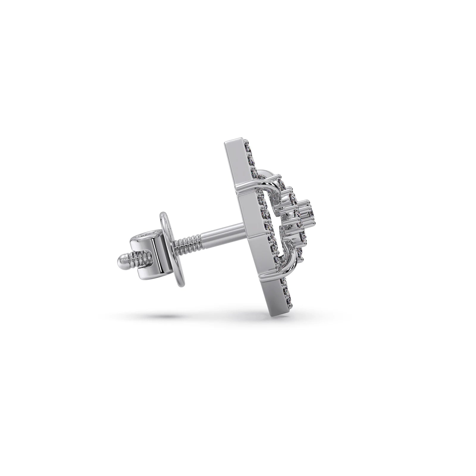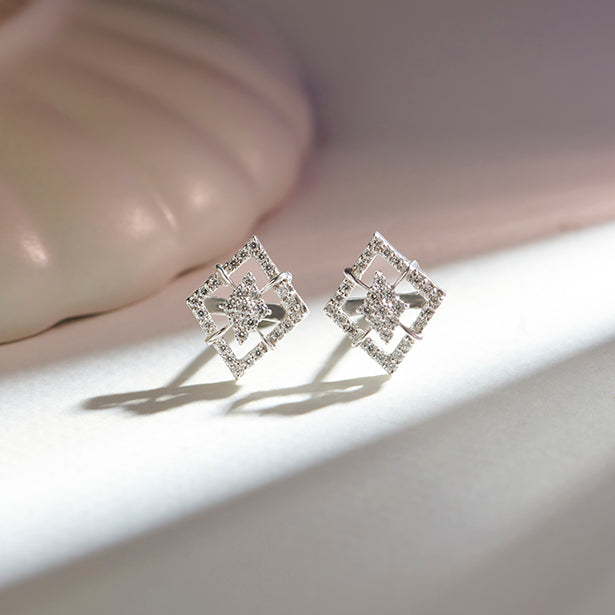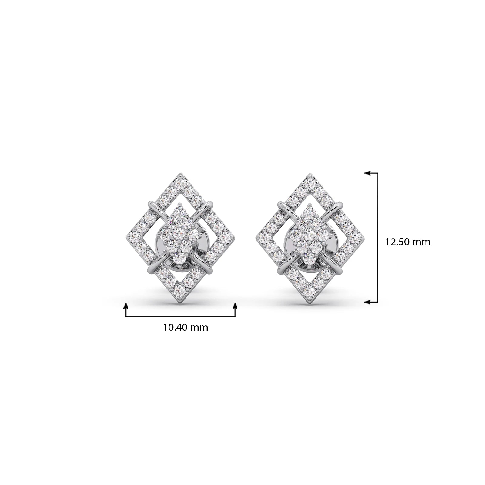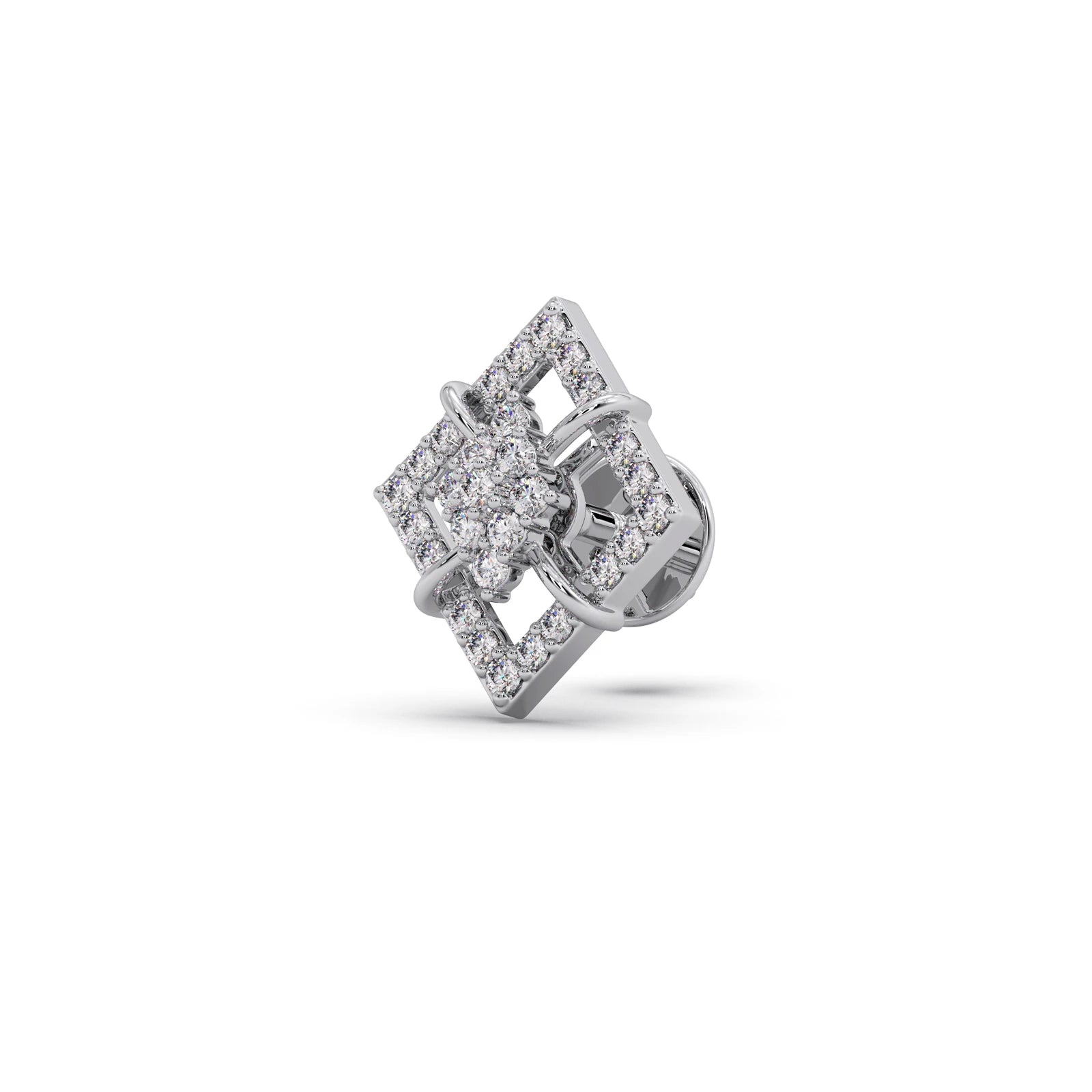 Geometric elegance defines these platinum stud earrings. Each features a striking rhombus shape pavé-set with dazzling diamonds, catching the light from every angle. A modern and sophisticated choice, these earrings effortlessly elevate your style with their unique design and brilliant sparkle.