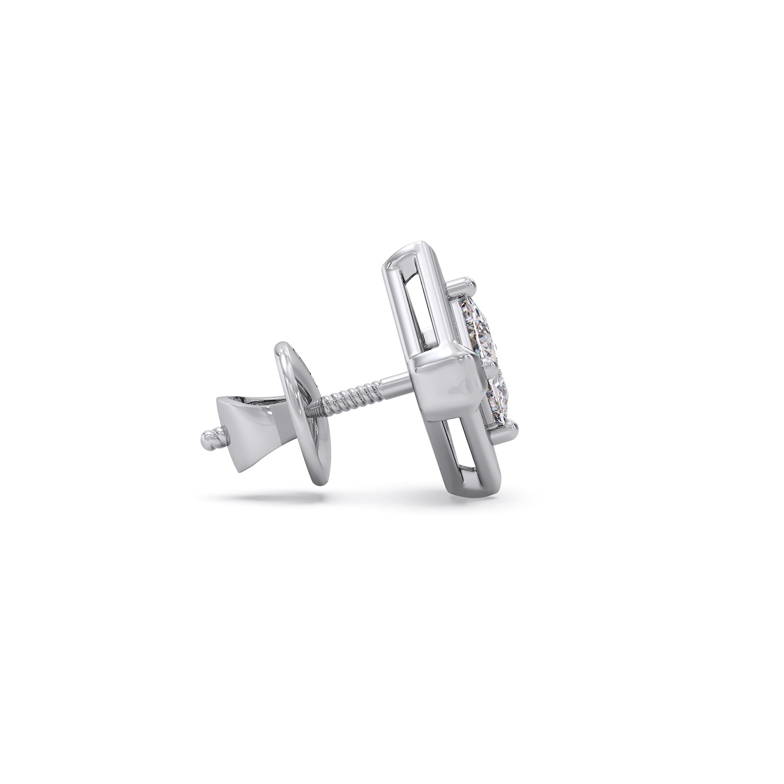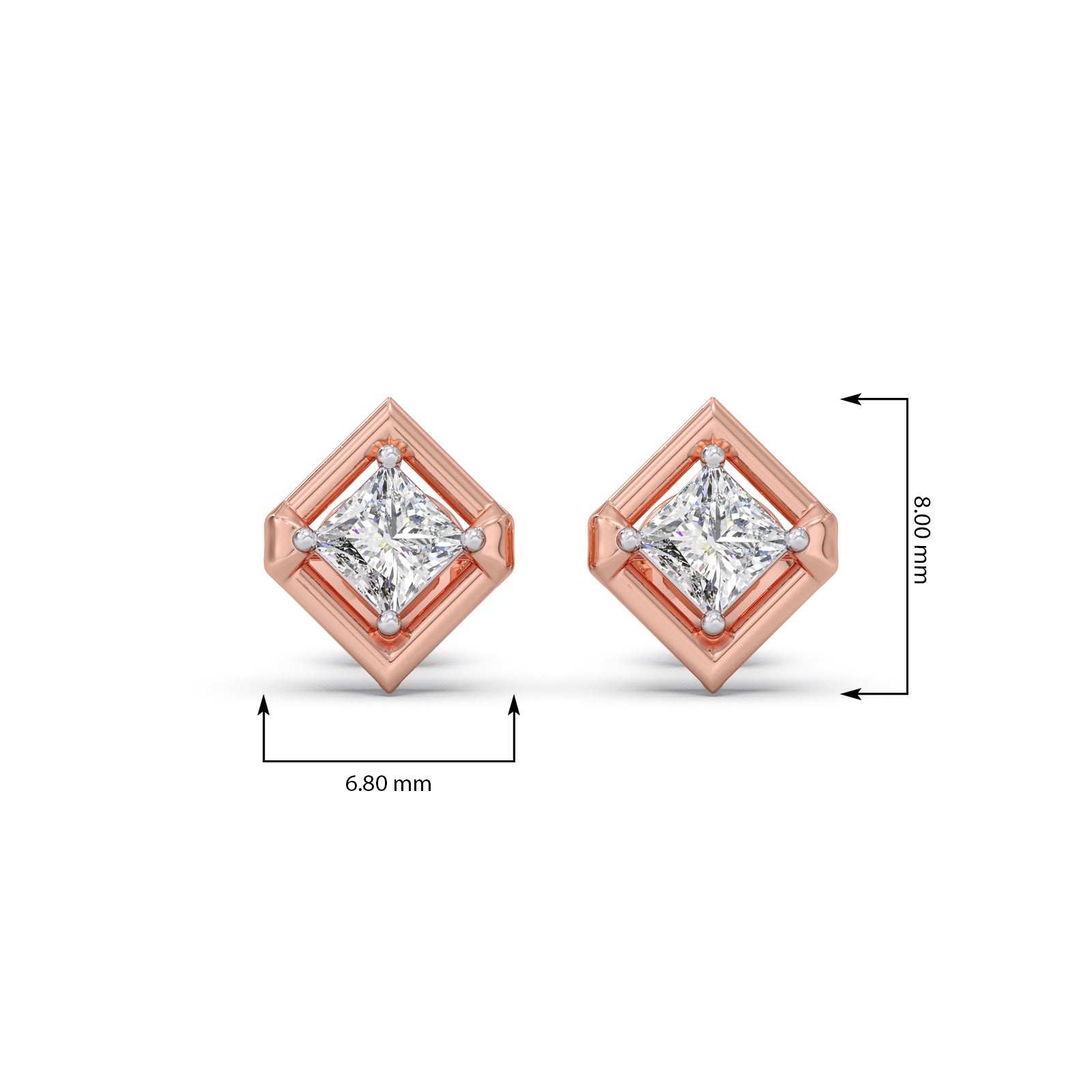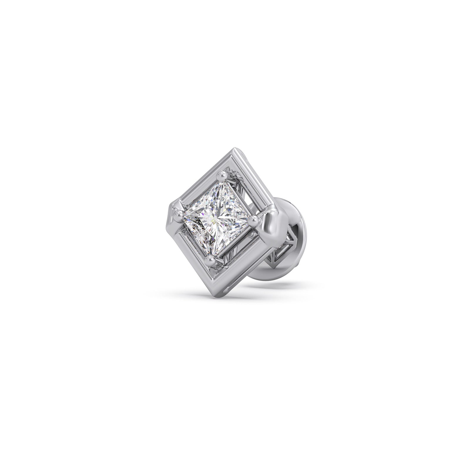 This stud earrings are crafted to highlight the beauty of geometric rhombus shape design set in 0.338ct Princess-Cut Solitaire diamond. This design balances simplicity with luxury, allowing the sparkle to feel rich yet understated perfect for both everyday wear and special moments.