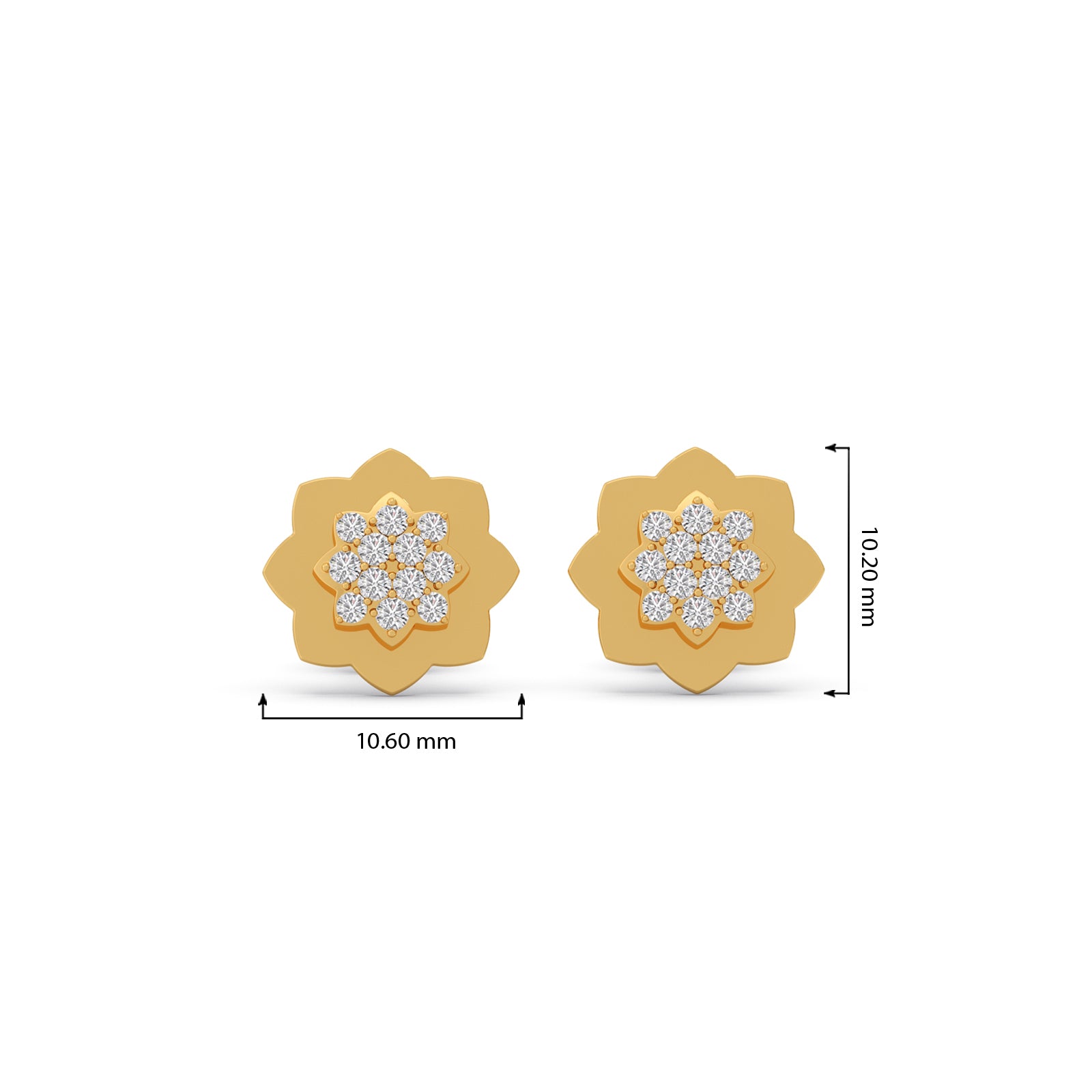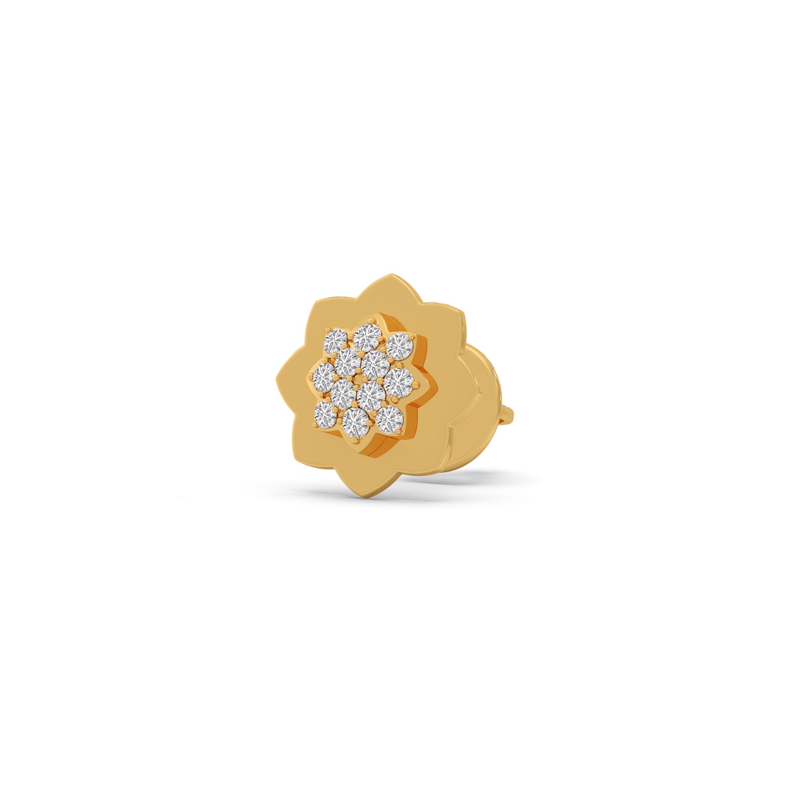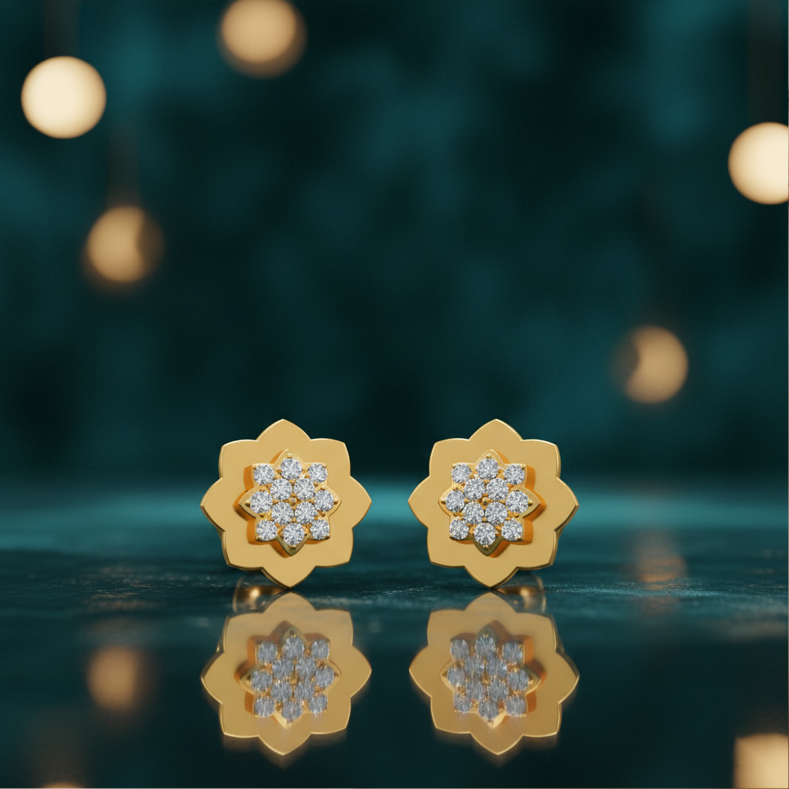 A timeless bloom of brilliance. The Golden Rosette Earrings showcase a mesmerizing diamond cluster set within a beautifully sculpted gold flower design. This intricate, dimensional piece redefines the classic stud with feminine charm and exceptional shine.