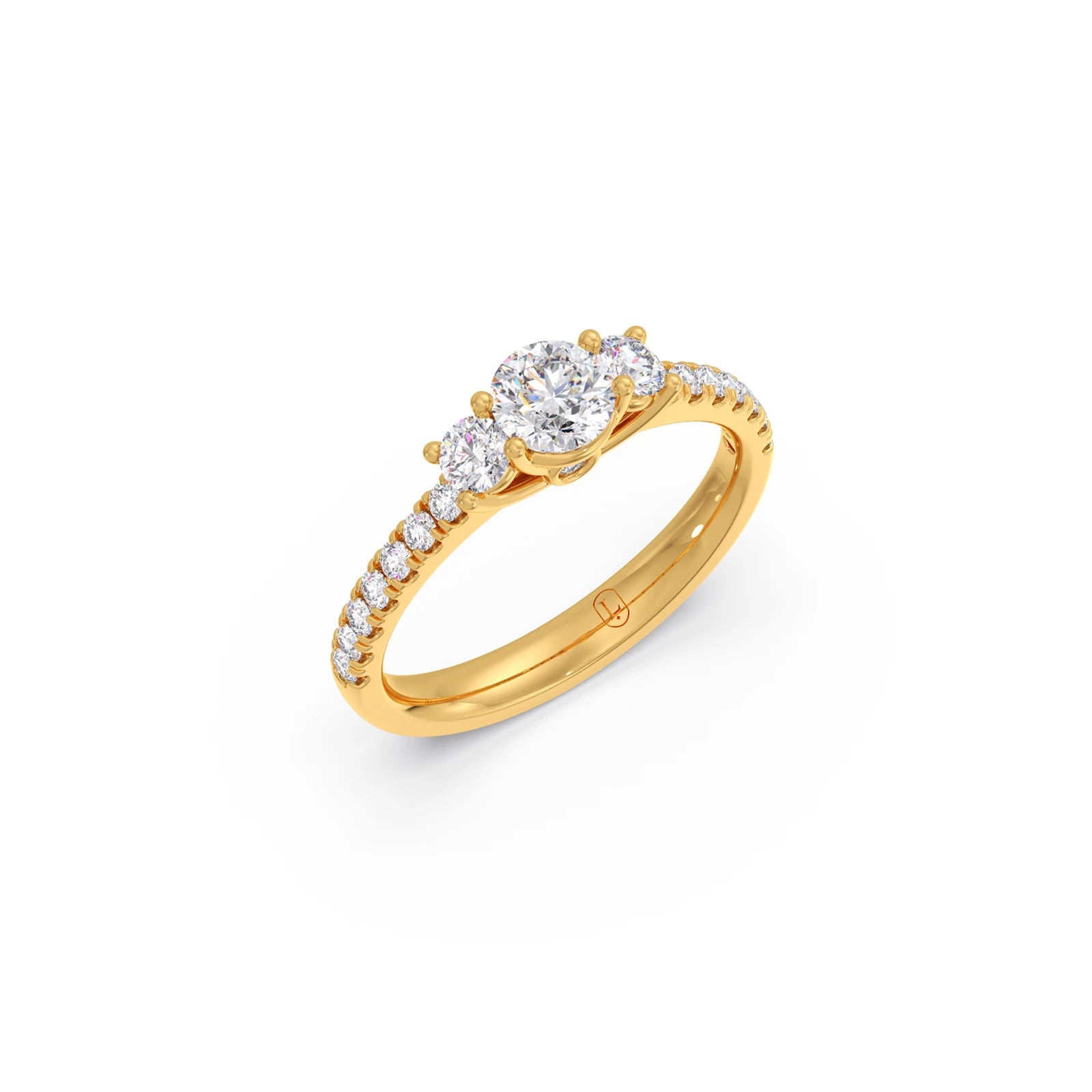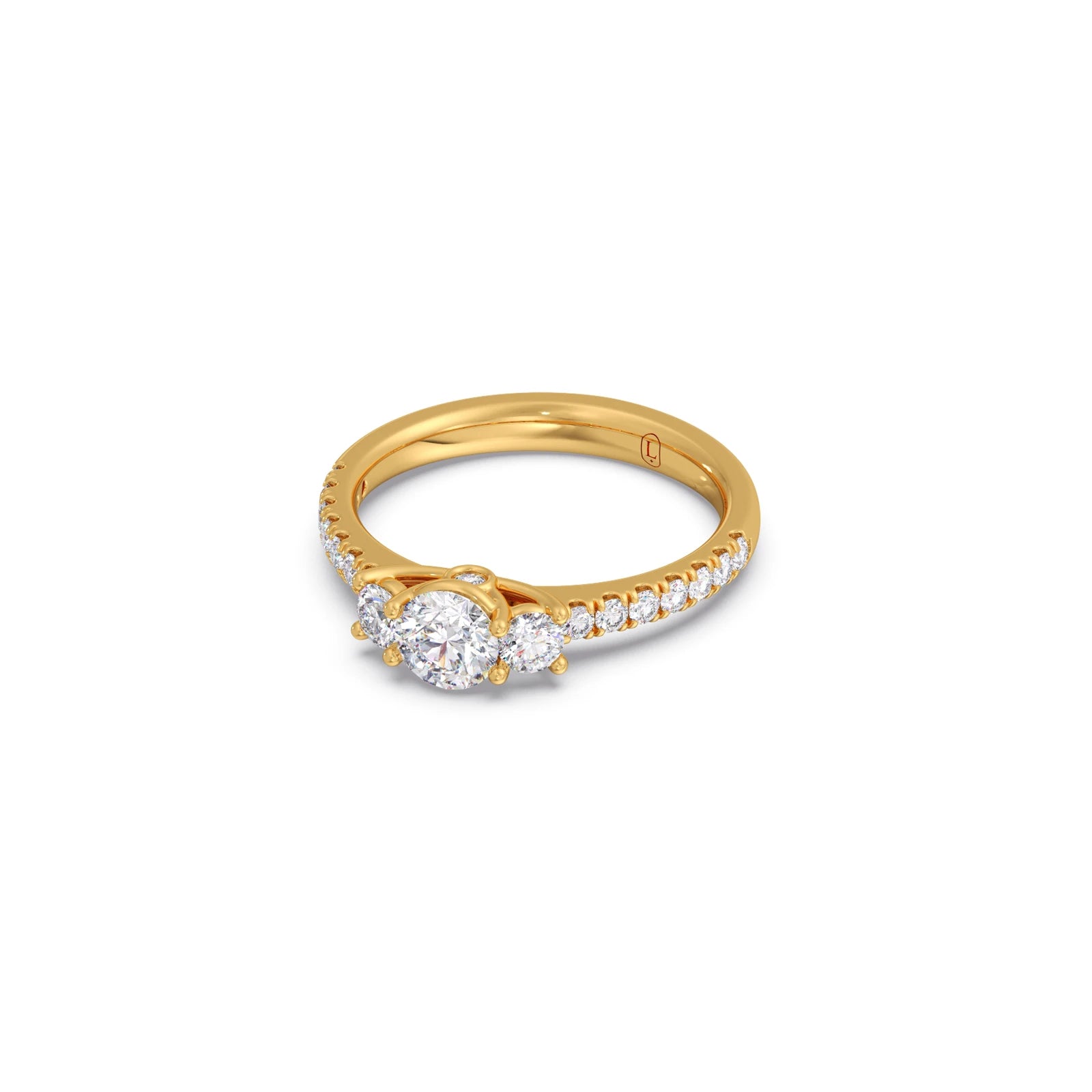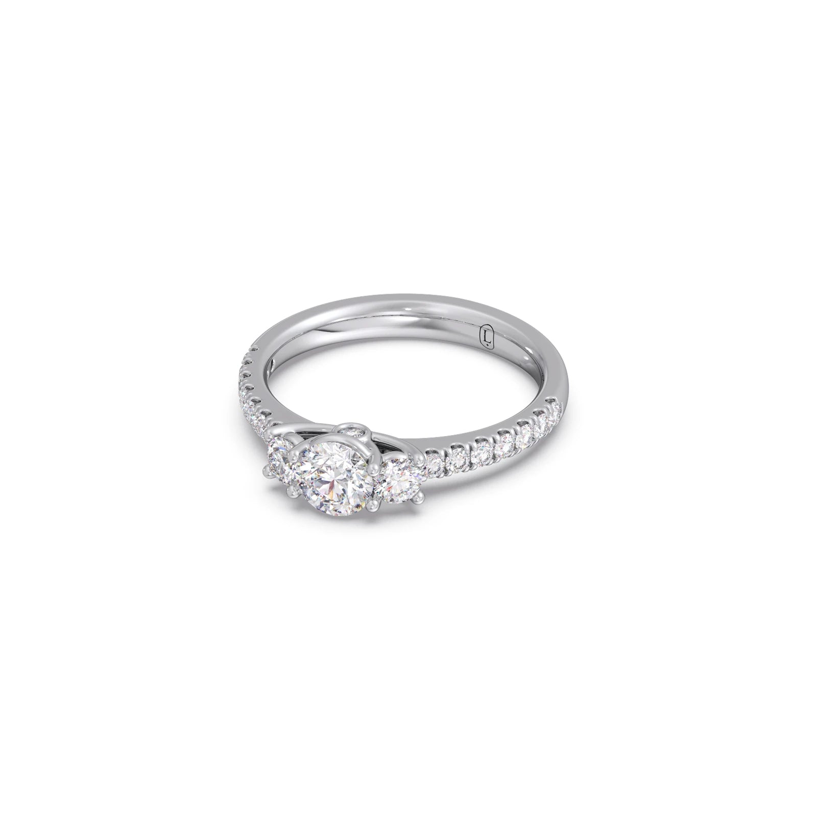 "Celebrate your enduring love story with this classic Round Brilliant Trilogy Ring. Three perfectly matched, dazzling round brilliant diamonds symbolize your past, present, and future. Renowned for their exceptional sparkle and fire, these diamonds create a timeless and elegant piece, making it a perfect symbol of commitment and a cherished heirloom."