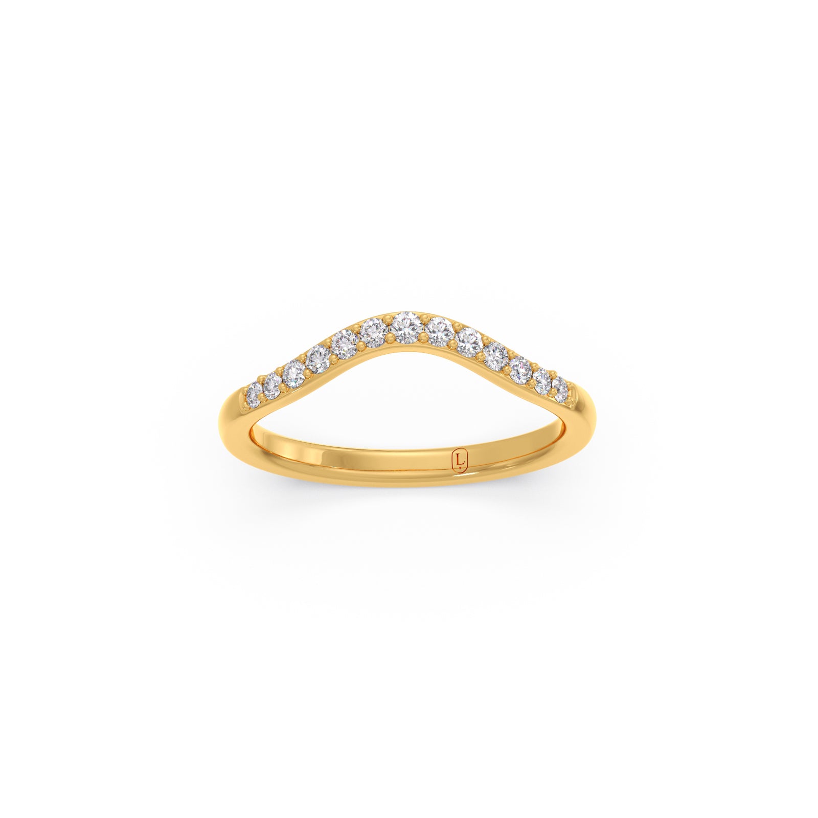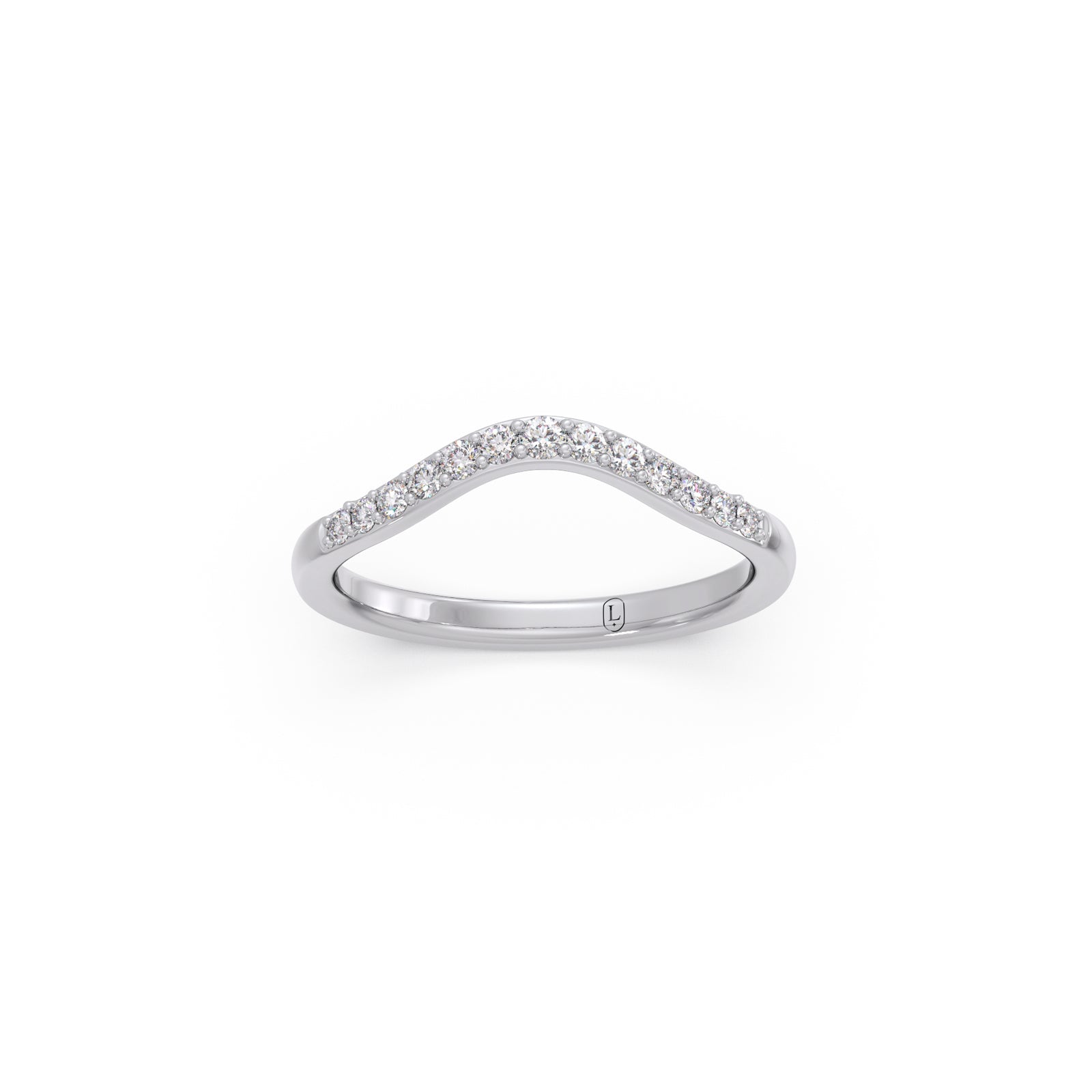 Antique-inspired wedding band featuring 13 Round Diamonds totaling 0.205 carats, set in a graceful curved design. A timeless blend of vintage charm and delicate sparkle.