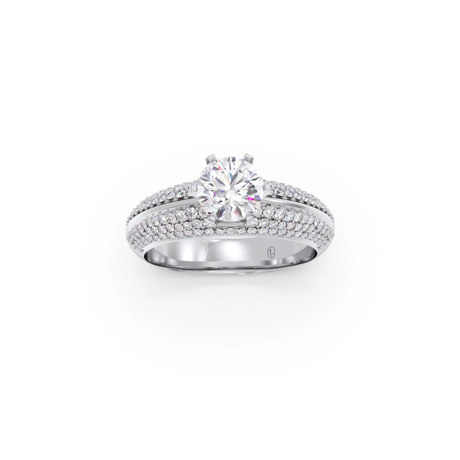 A timeless symbol of your commitment, this engagement ring showcases a brilliant round-cut diamond, celebrated for its exceptional sparkle. The classic setting enhances the diamond's beauty, creating an elegant and enduring design. Perfect for a lifetime of love, this ring embodies grace and sophistication.