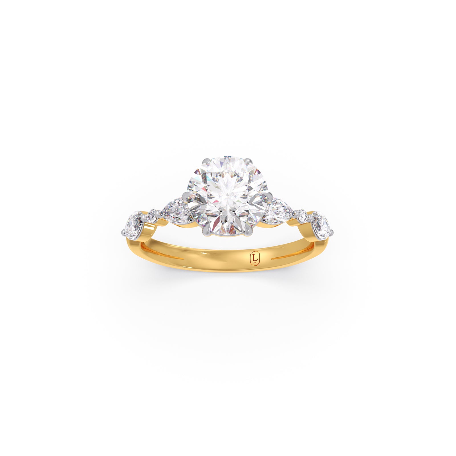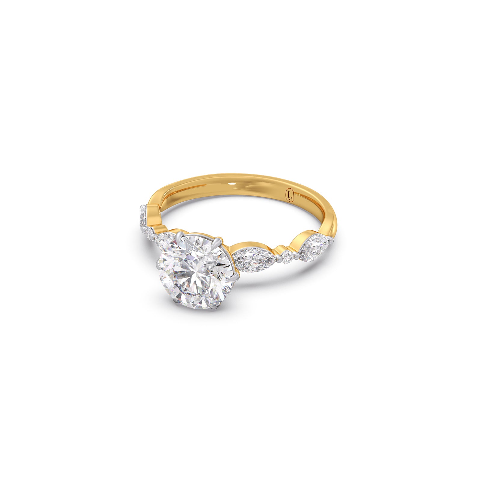 Classic and elegant, our Round Cut Engagement Ring features a Brilliant Center Diamond, accented by Shimmering Marquise-shaped and Petite Round Diamonds for added sparkle and timeless sophistication✨💍