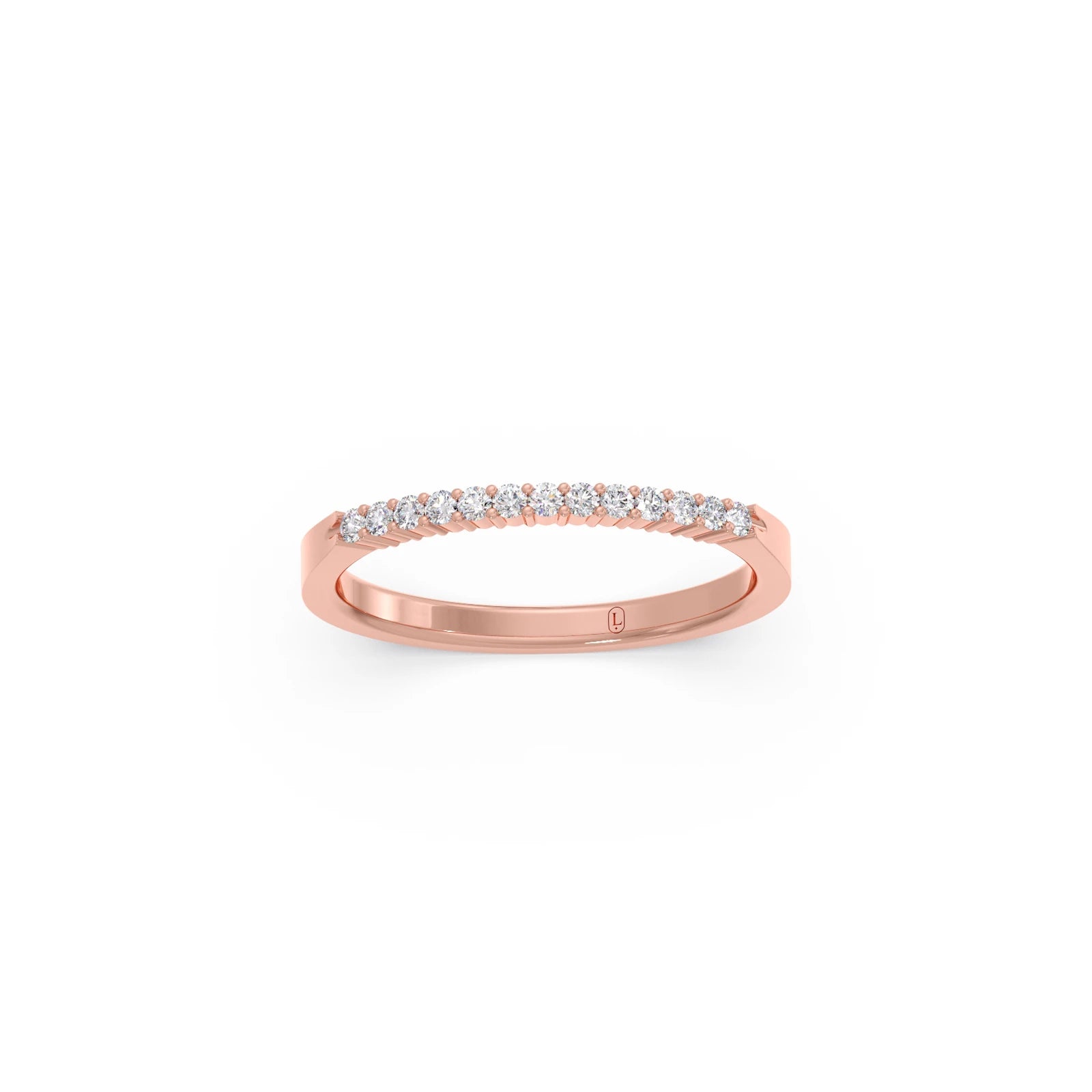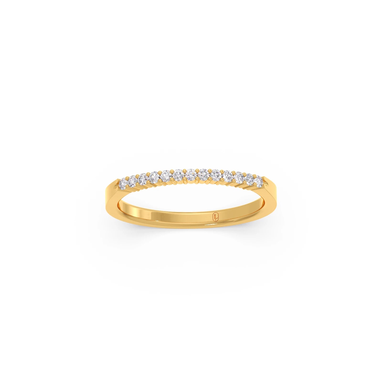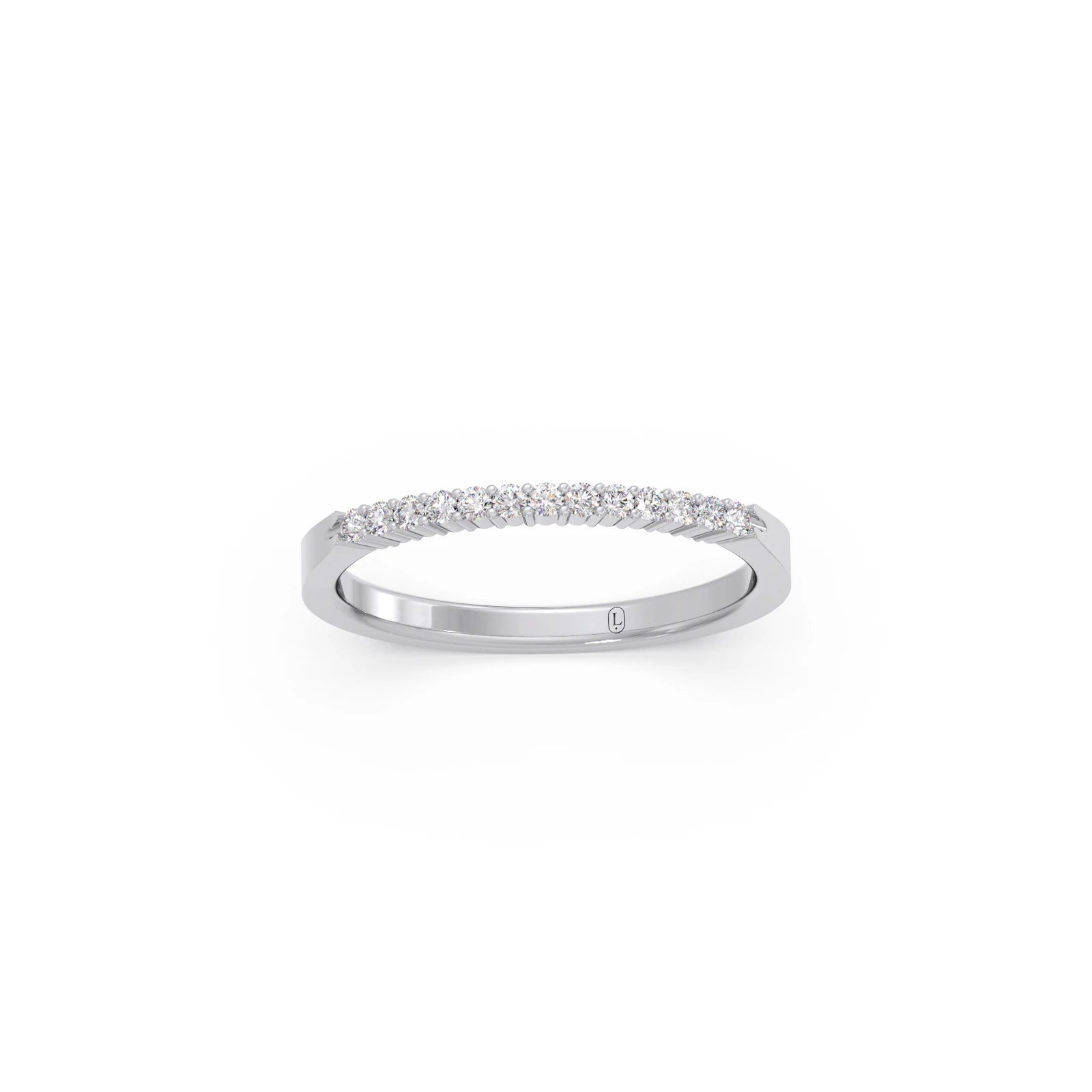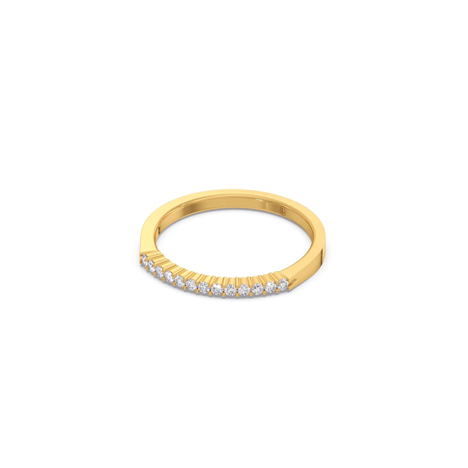 This delicate eternity band features a continuous row of sparkling round diamonds, totaling 0.13 carats. The fine setting creates a subtle yet elegant shimmer, symbolizing everlasting love and commitment. Perfect for stacking.