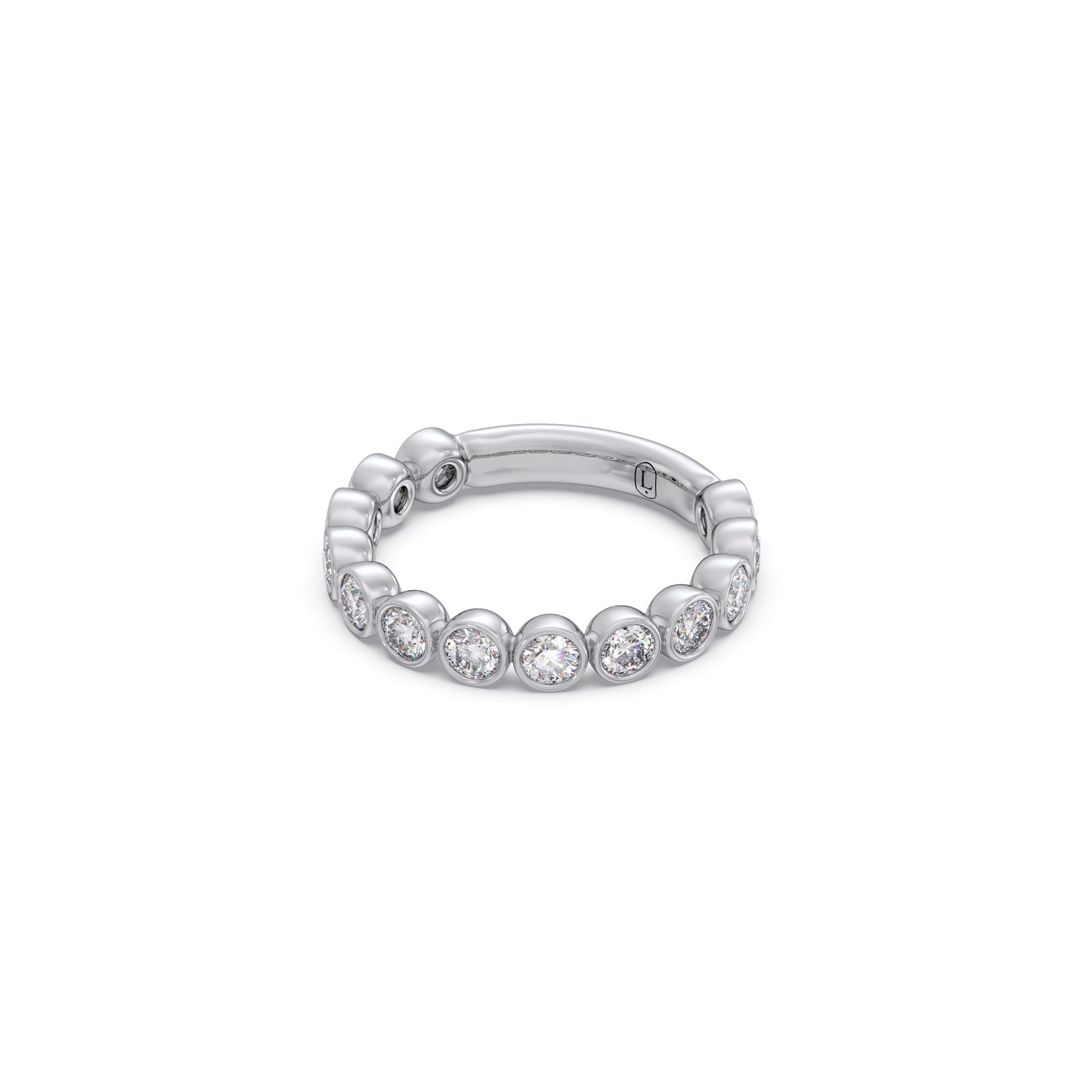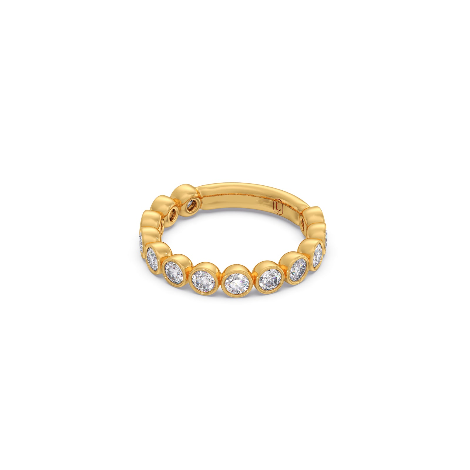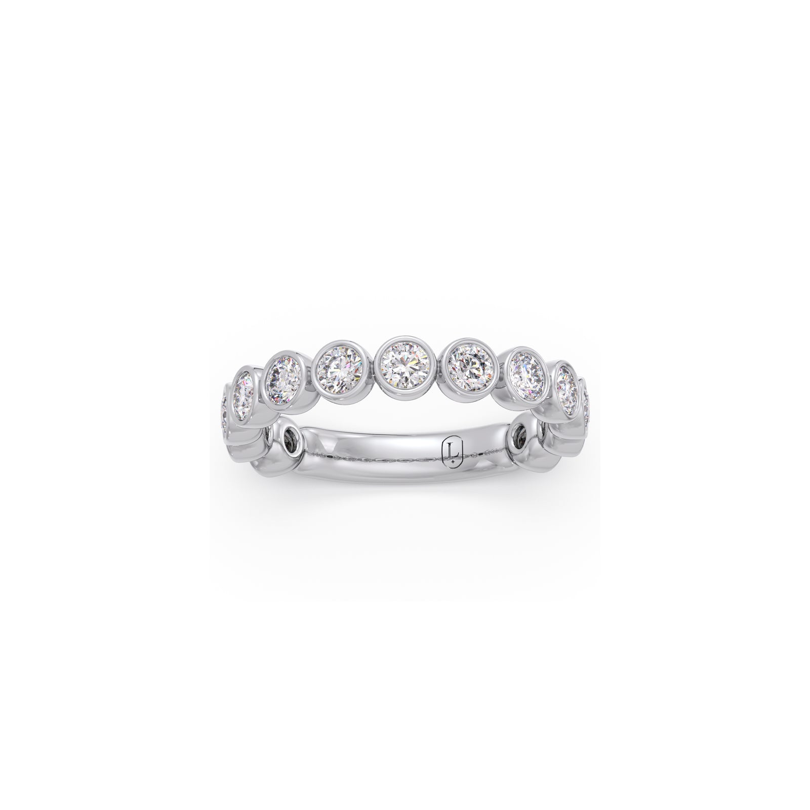 "Our Round Diamond Bezel Set Band offers sleek sophistication. Each round diamond is securely set in a modern bezel, ensuring durability and comfort. Perfect for stacking or daily wear, this timeless band provides continuous, radiant sparkle."