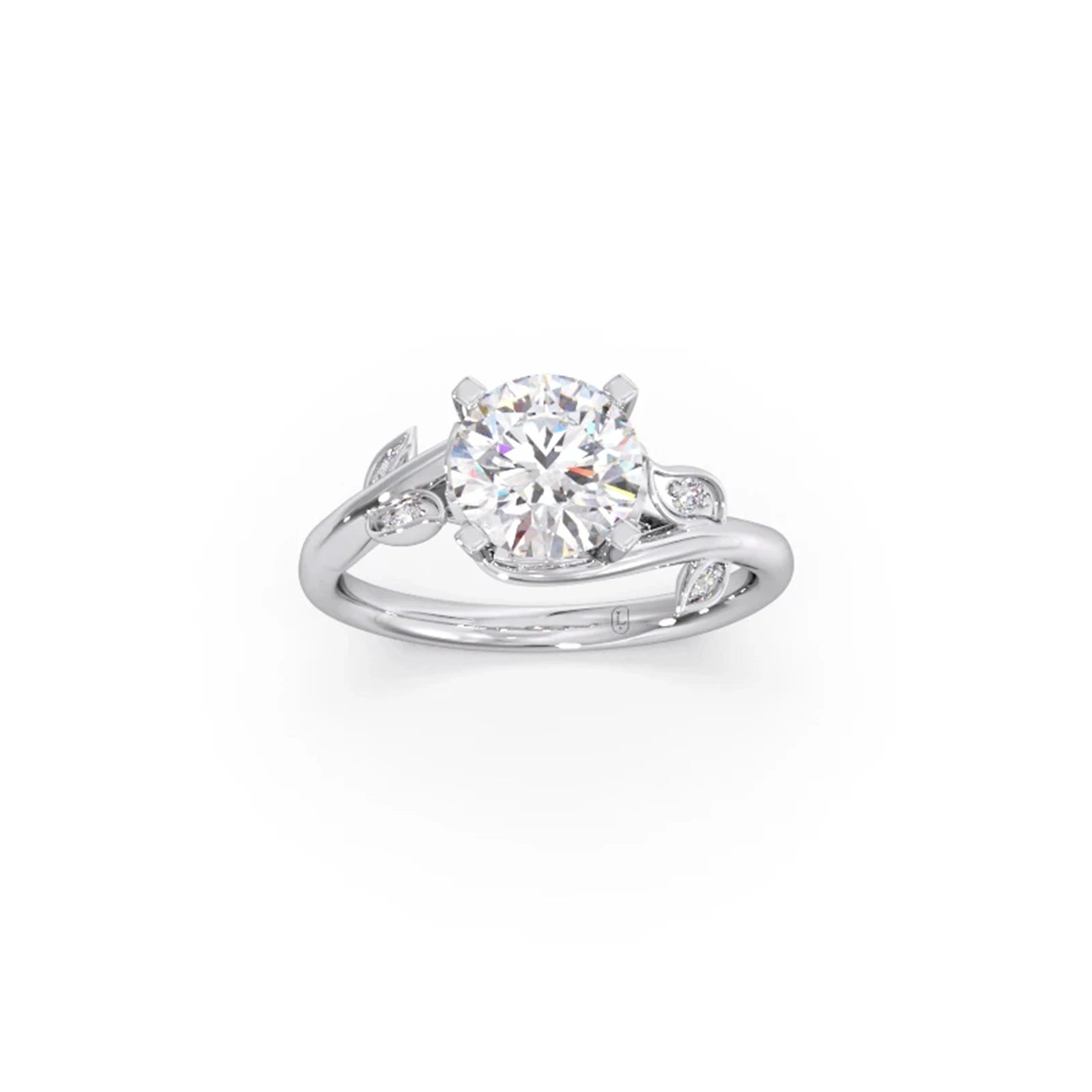 Let your love blossom with this Round Diamond Engagement Ring, adorned with an intricate Vine Accent. The delicate vine design wraps gracefully around the band, adding a natural, whimsical charm to the timeless sparkle of the round diamond.✨💍