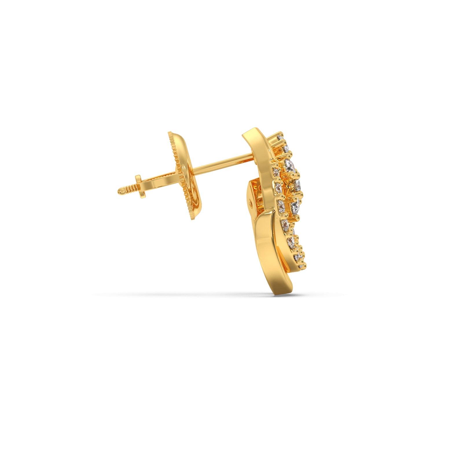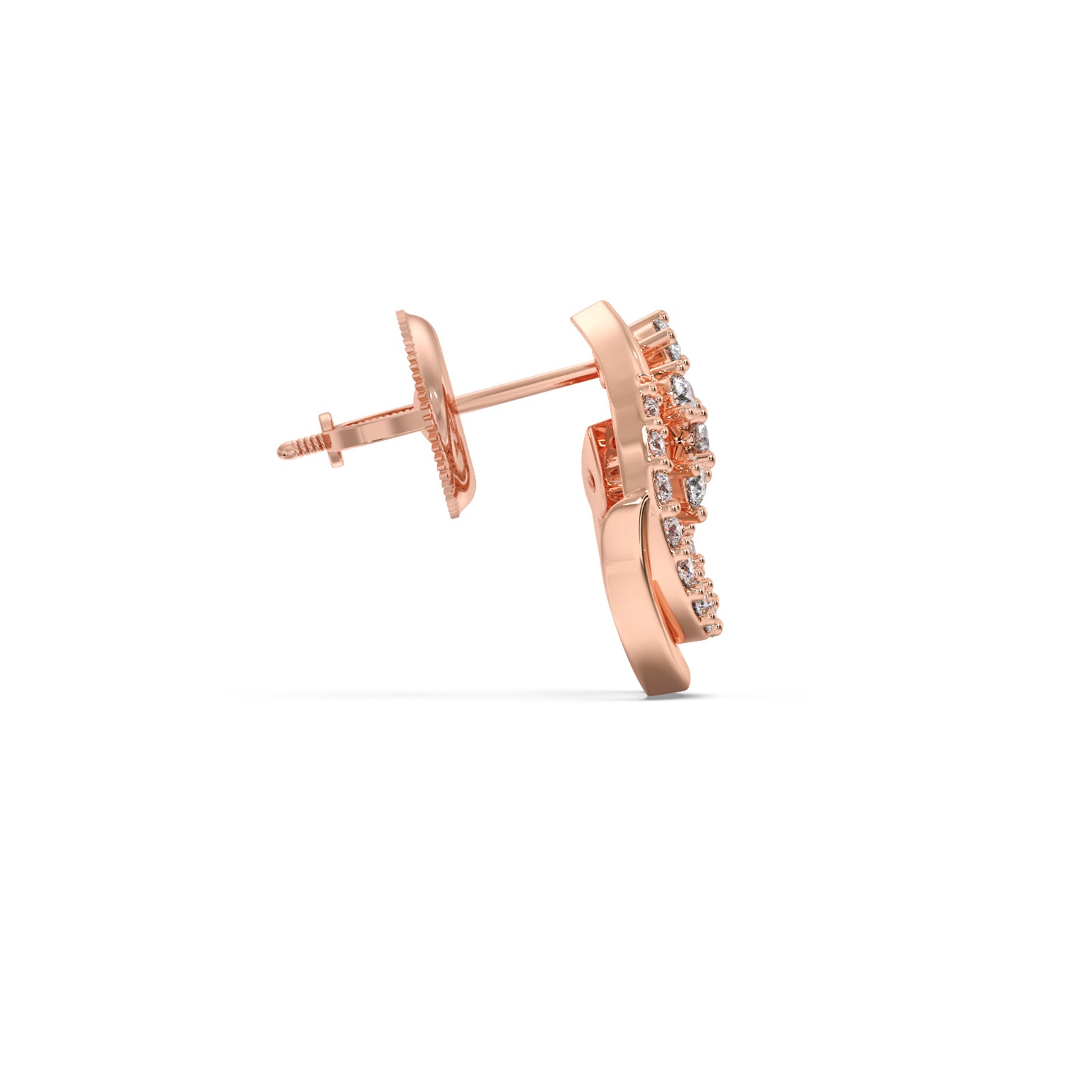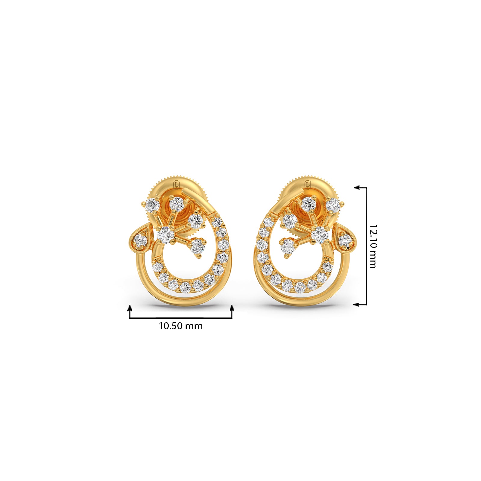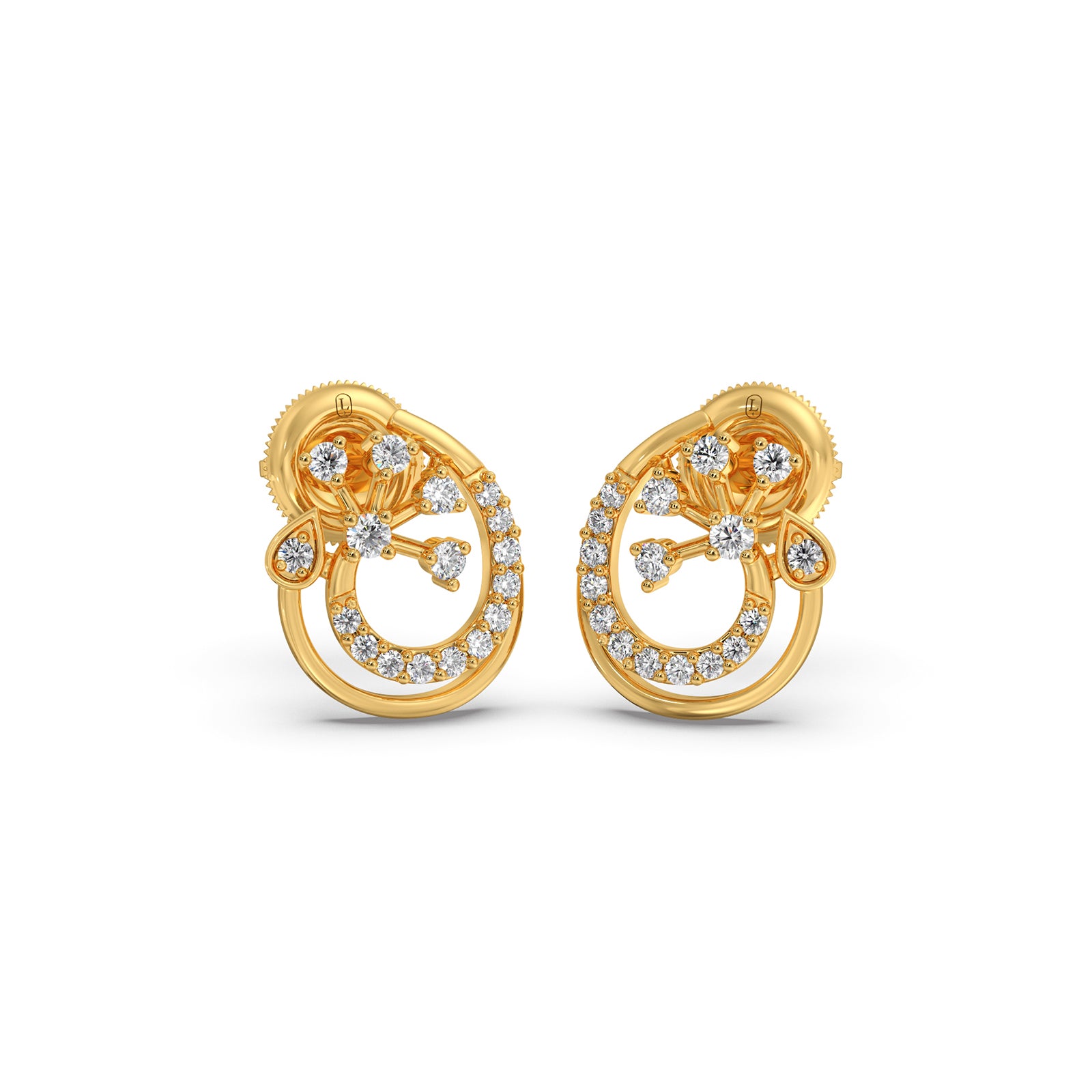 Round Diamond Floral Swirl Earrings feature a graceful swirl design embellished with sparkling round diamonds, accented by delicate floral-inspired motifs. Crafted in luminous gold, they blend elegance and charm, making them a perfect accessory for festive occasions, weddings, or adding timeless beauty to everyday style.