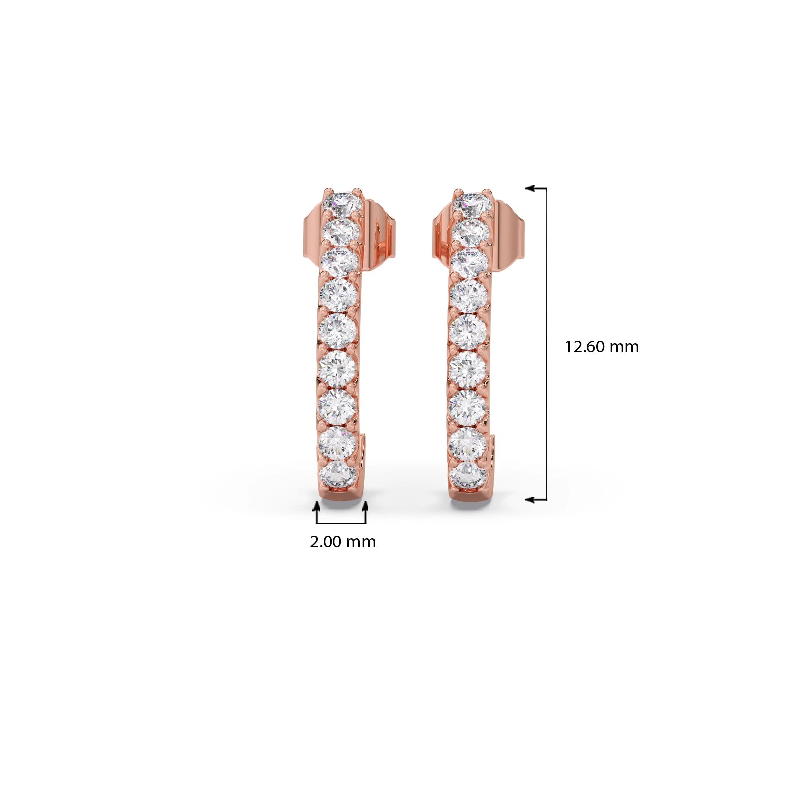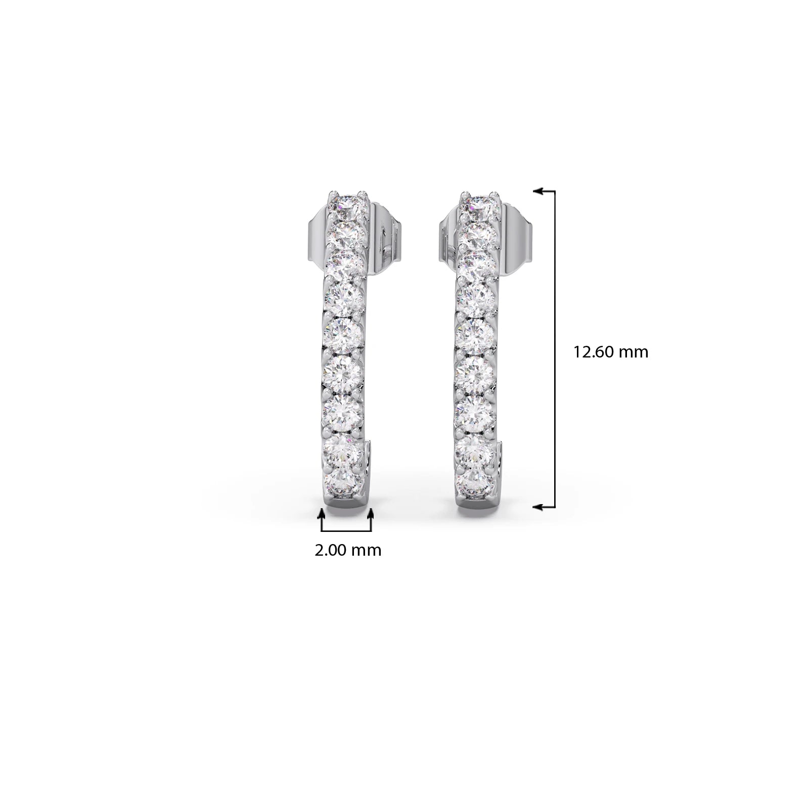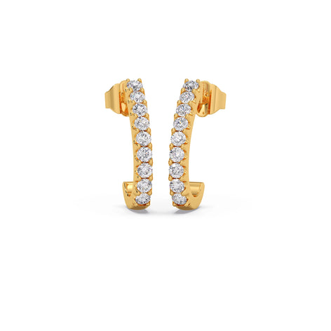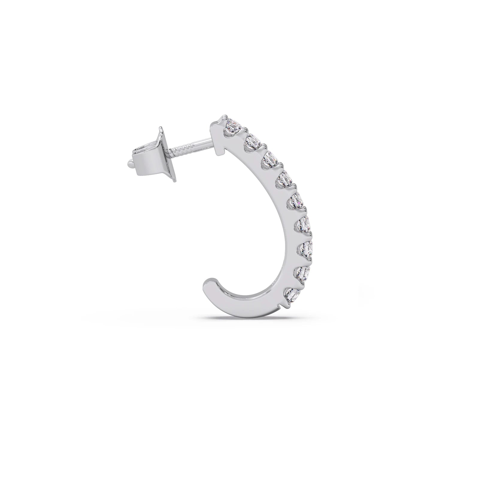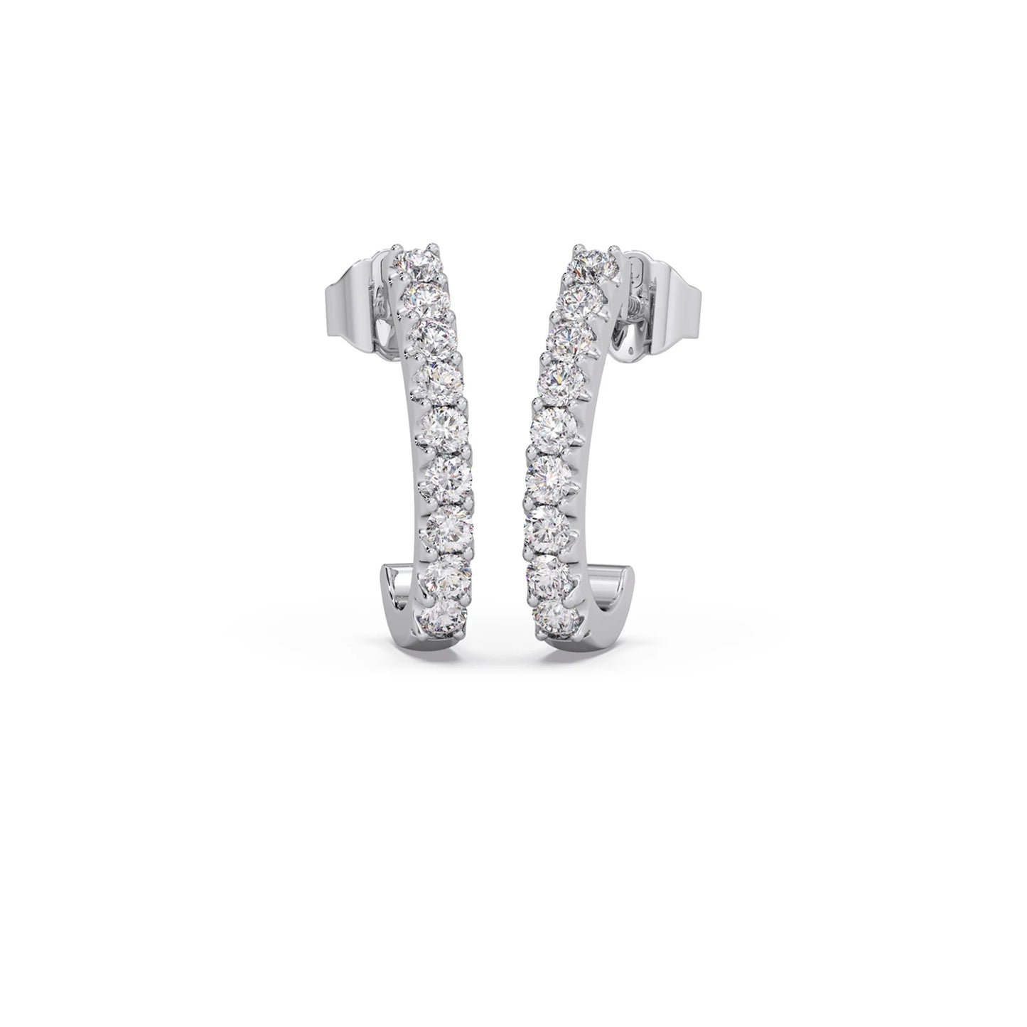 These captivating half-hoop earrings feature a brilliant row of round diamonds, expertly set to maximize their sparkle. Designed to gracefully hug the earlobe, they offer continuous shimmer and timeless sophistication. Perfect for adding a touch of everyday luxury or elegant brilliance to any ensemble.
