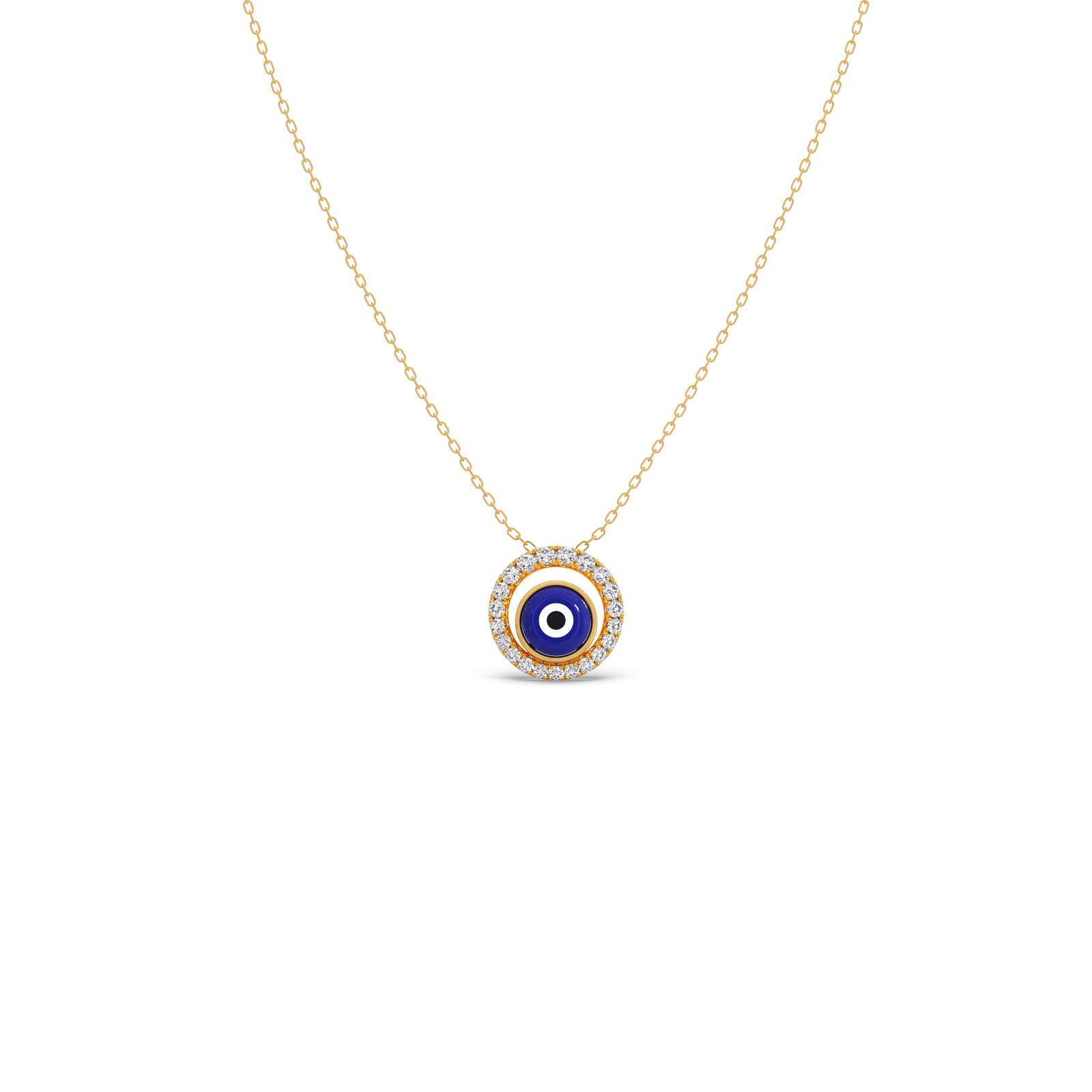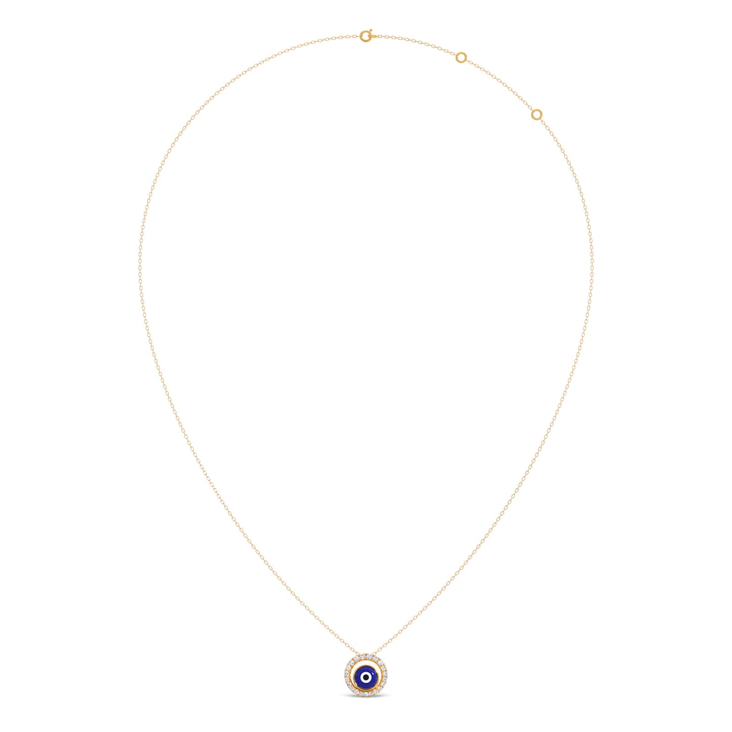 Shine with tradition! This Round Diamond Nazariya Pendant blends brilliant cut Lab ground Diamonds with the powerful symbolism of the Nazariya. A modern twist on a timeless protective charm, it offers sophisticated sparkle and wards off negative energy. Wear this elegant talisman daily for good fortune.