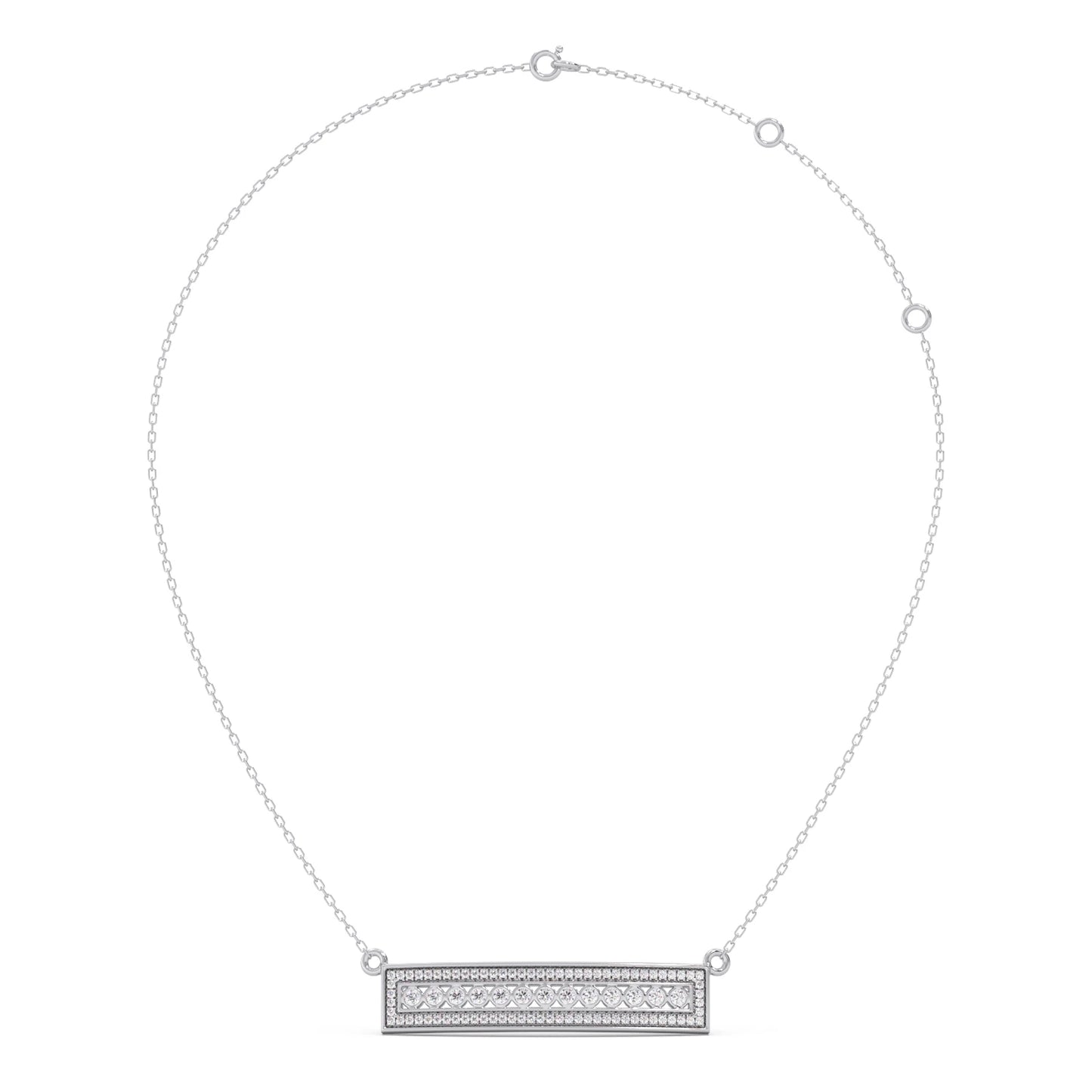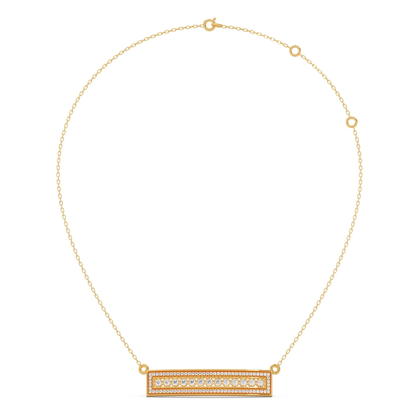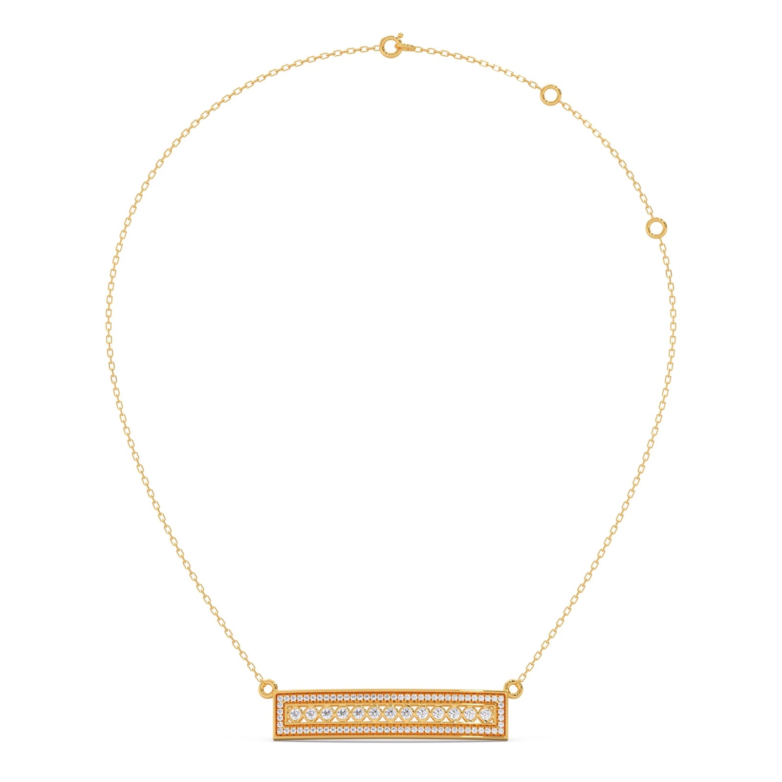 Illuminate your neckline with this chic and modern bar necklace. Adorned with a continuous line of dazzling round diamonds in a brilliant pavé setting, this piece offers understated luxury and continuous sparkle. Crafted in polished precious metal, it's a versatile accessory perfect for layering or wearing solo for a touch of effortless elegance.