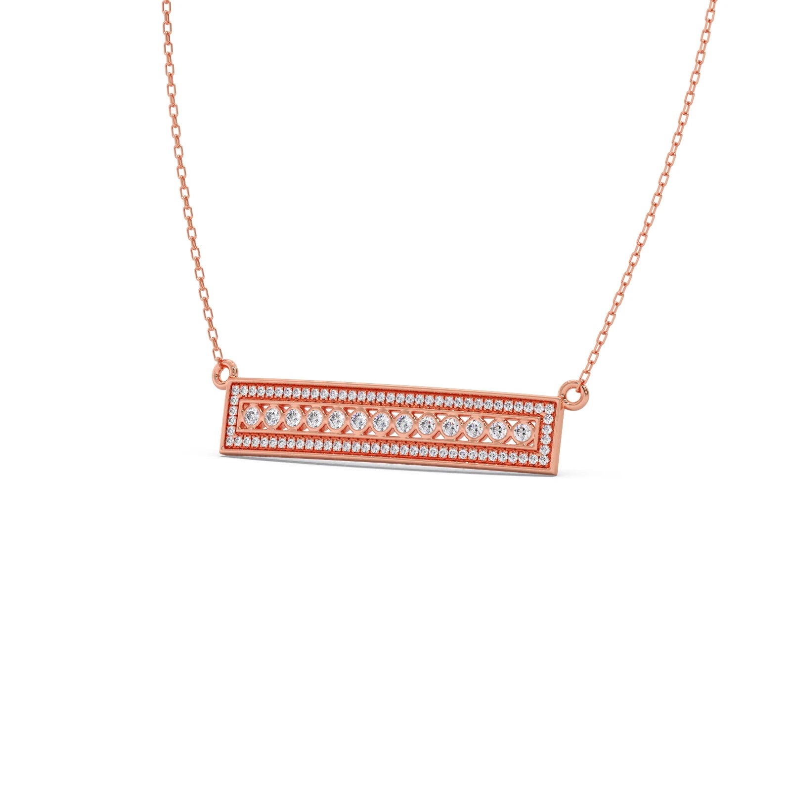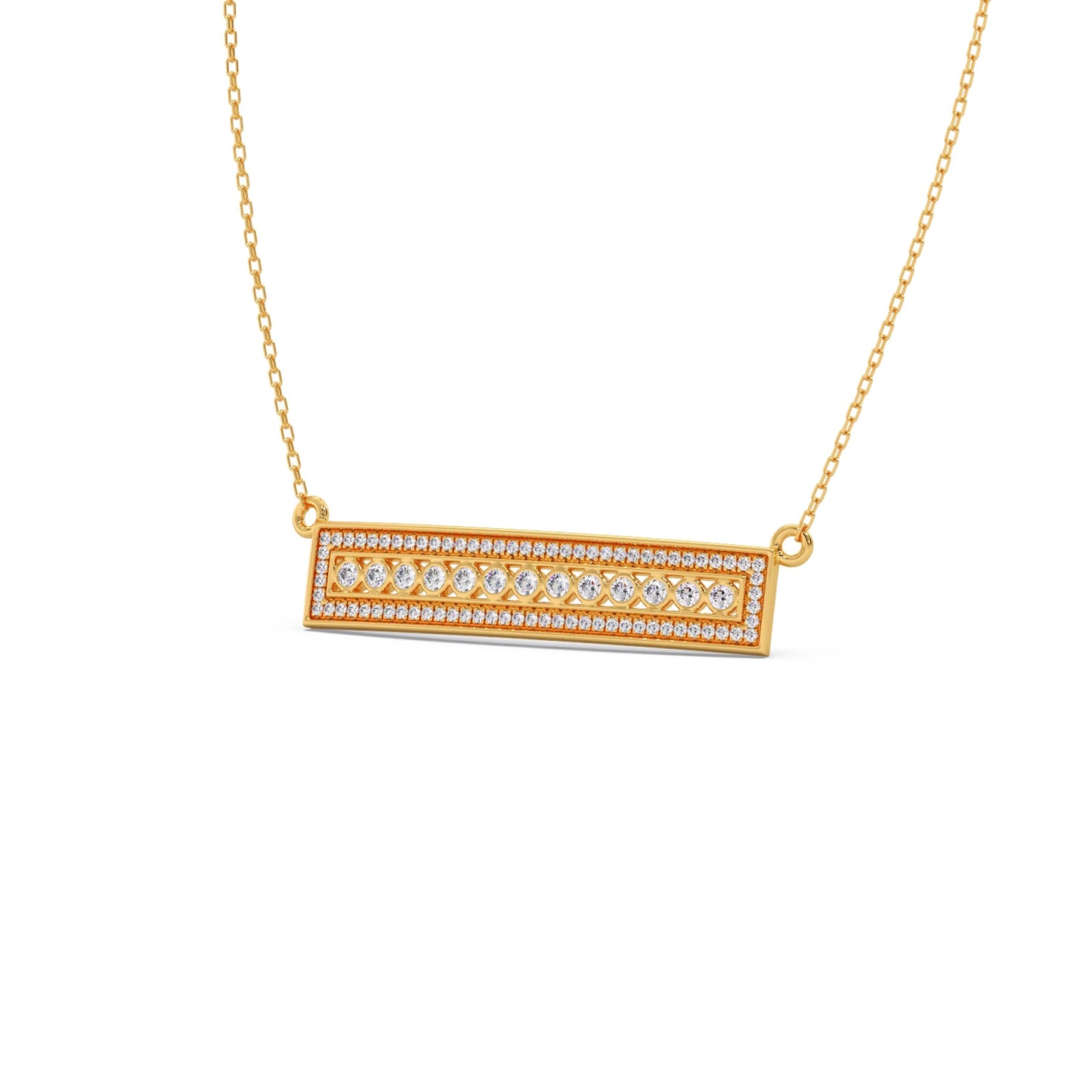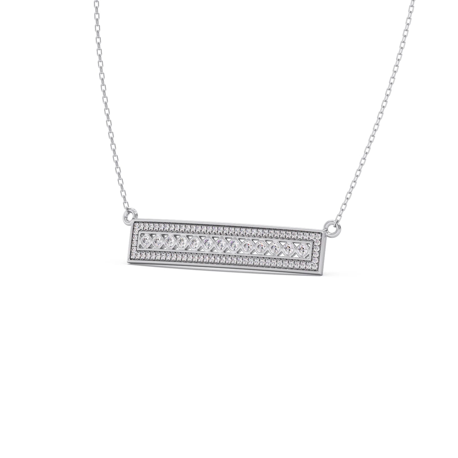 Illuminate your neckline with this chic and modern bar necklace. Adorned with a continuous line of dazzling round diamonds in a brilliant pavé setting, this piece offers understated luxury and continuous sparkle. Crafted in polished precious metal, it's a versatile accessory perfect for layering or wearing solo for a touch of effortless elegance.
