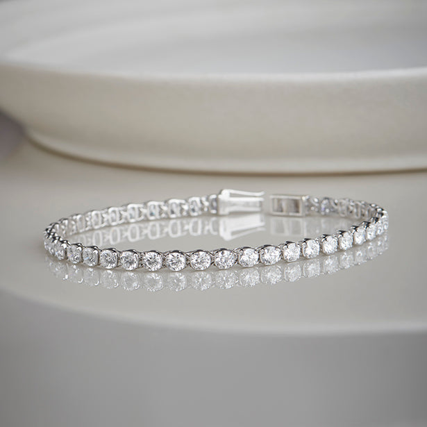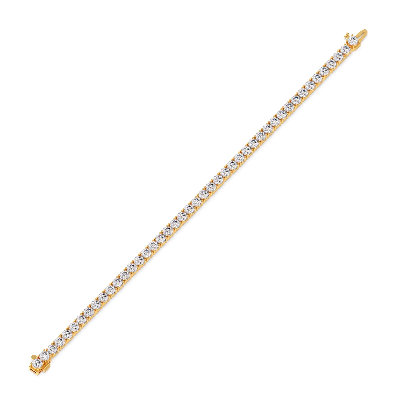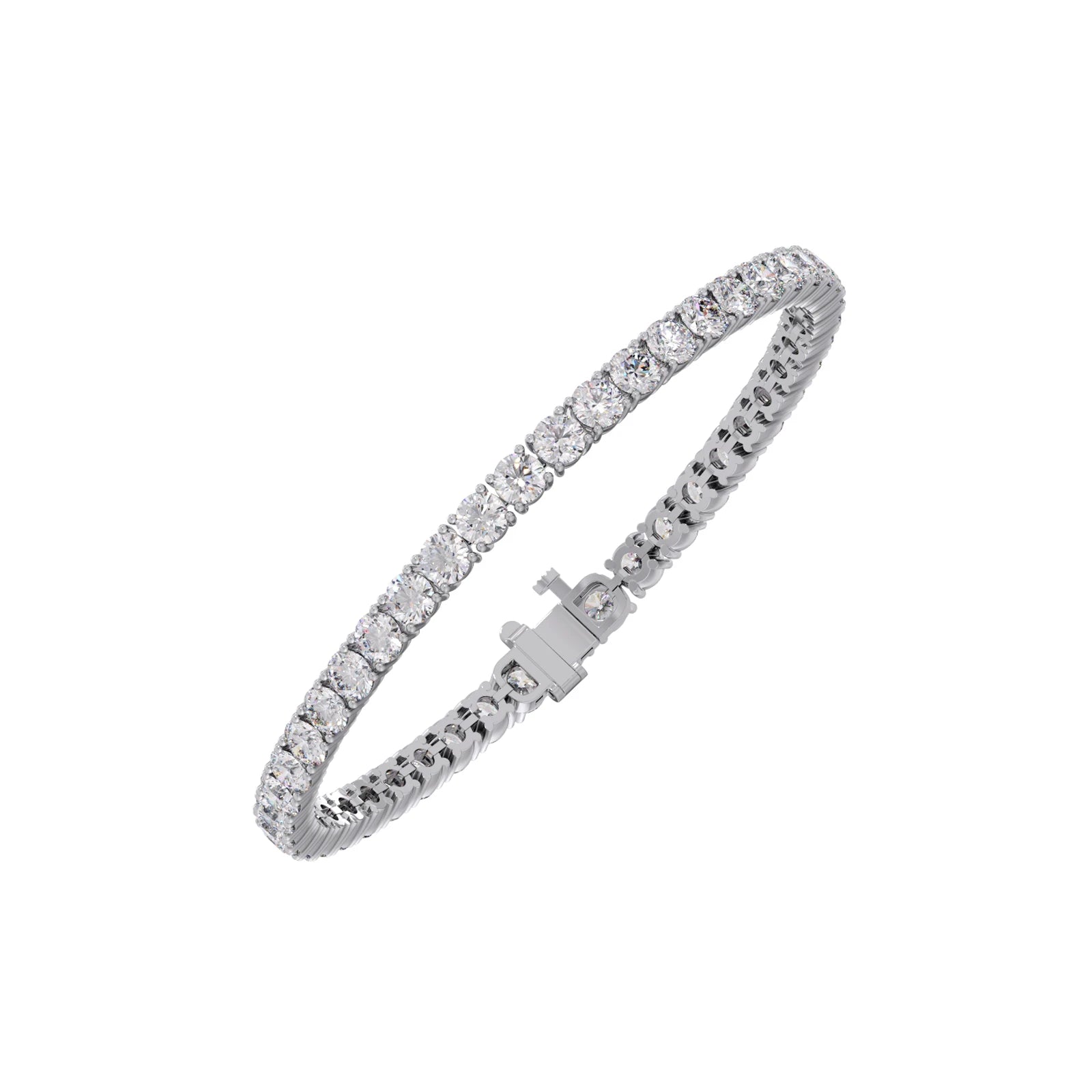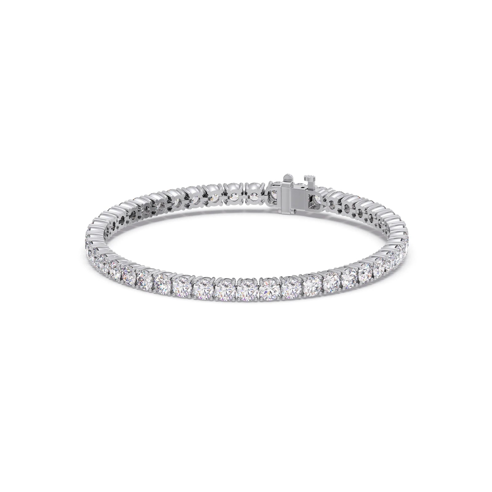 This exquisite bracelet showcases a continuous line of brilliant round diamonds, each meticulously secured in a classic prong setting. Designed for maximum sparkle, the open setting allows light to illuminate every facet. A timeless and versatile piece, it adds sophisticated radiance to any wrist, perfect for everyday luxury or special occasions.