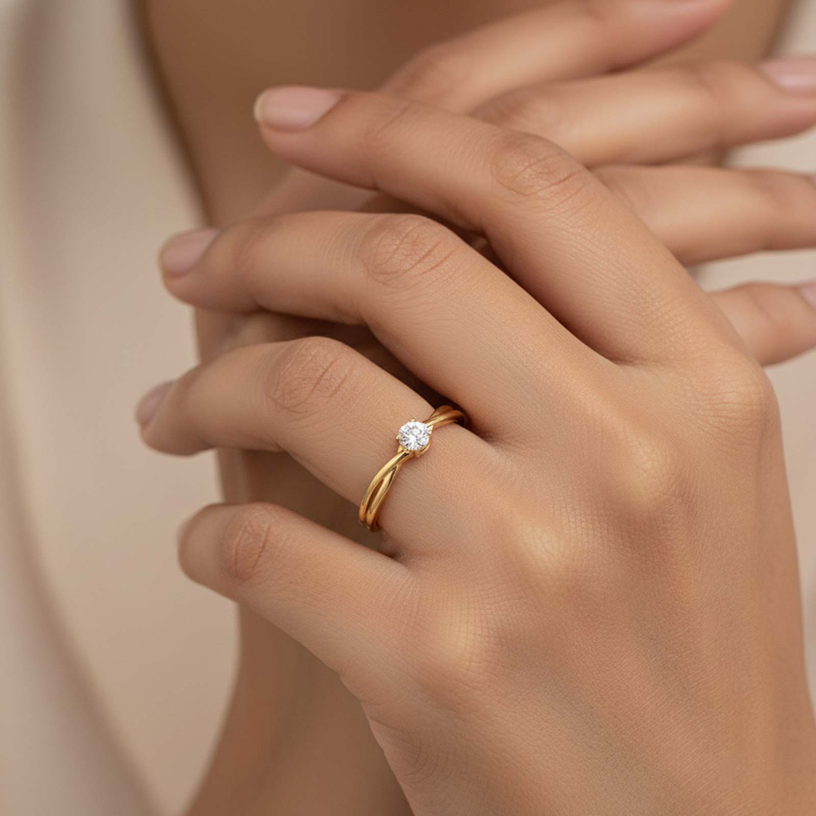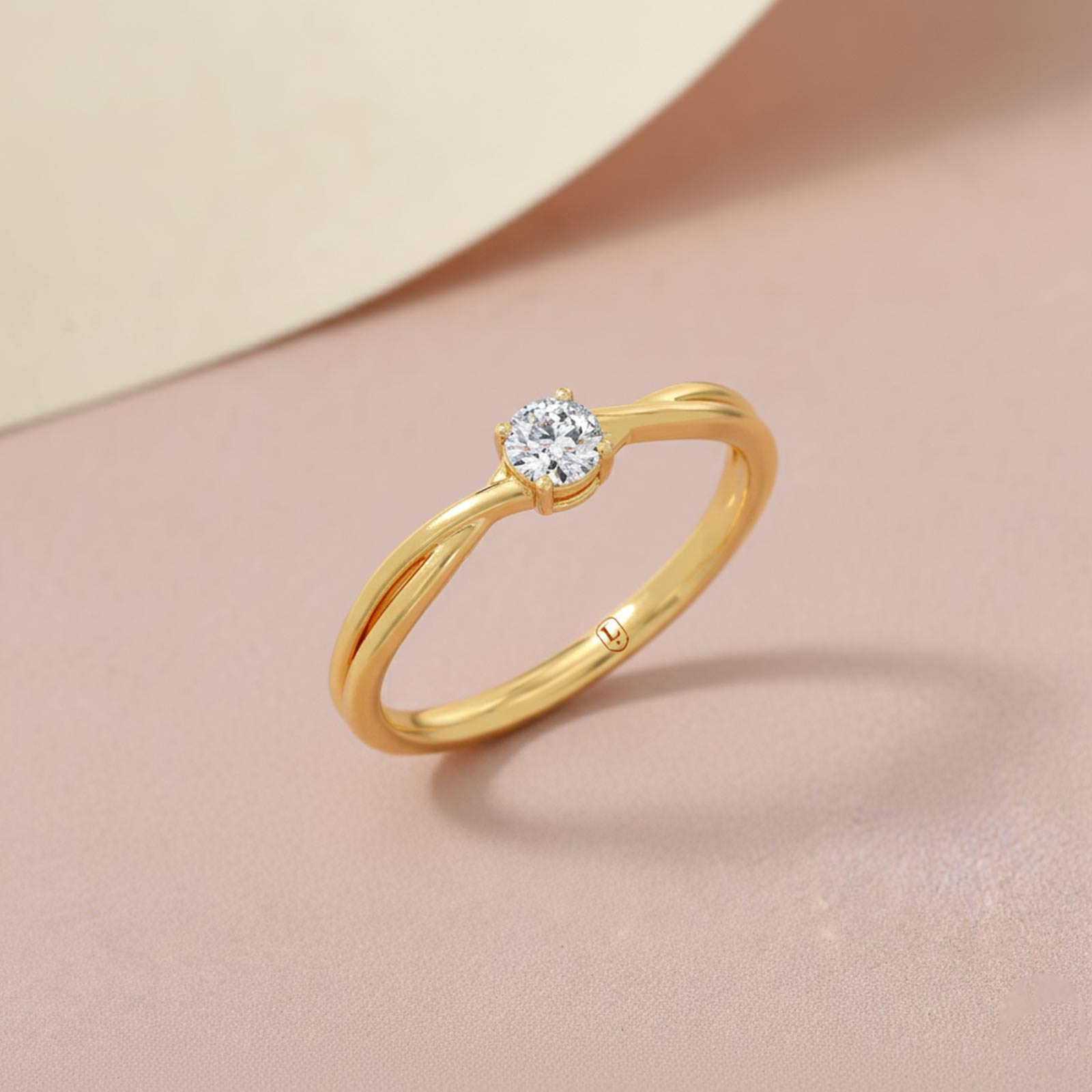 This Round Diamond Solitaire Ring features a graceful twist in the shank, adding a modern touch to its classic design. The sparkling center stone is beautifully highlighted, making it a timeless and elegant choice for engagements or special moments. Simple, stylish, and truly captivating.