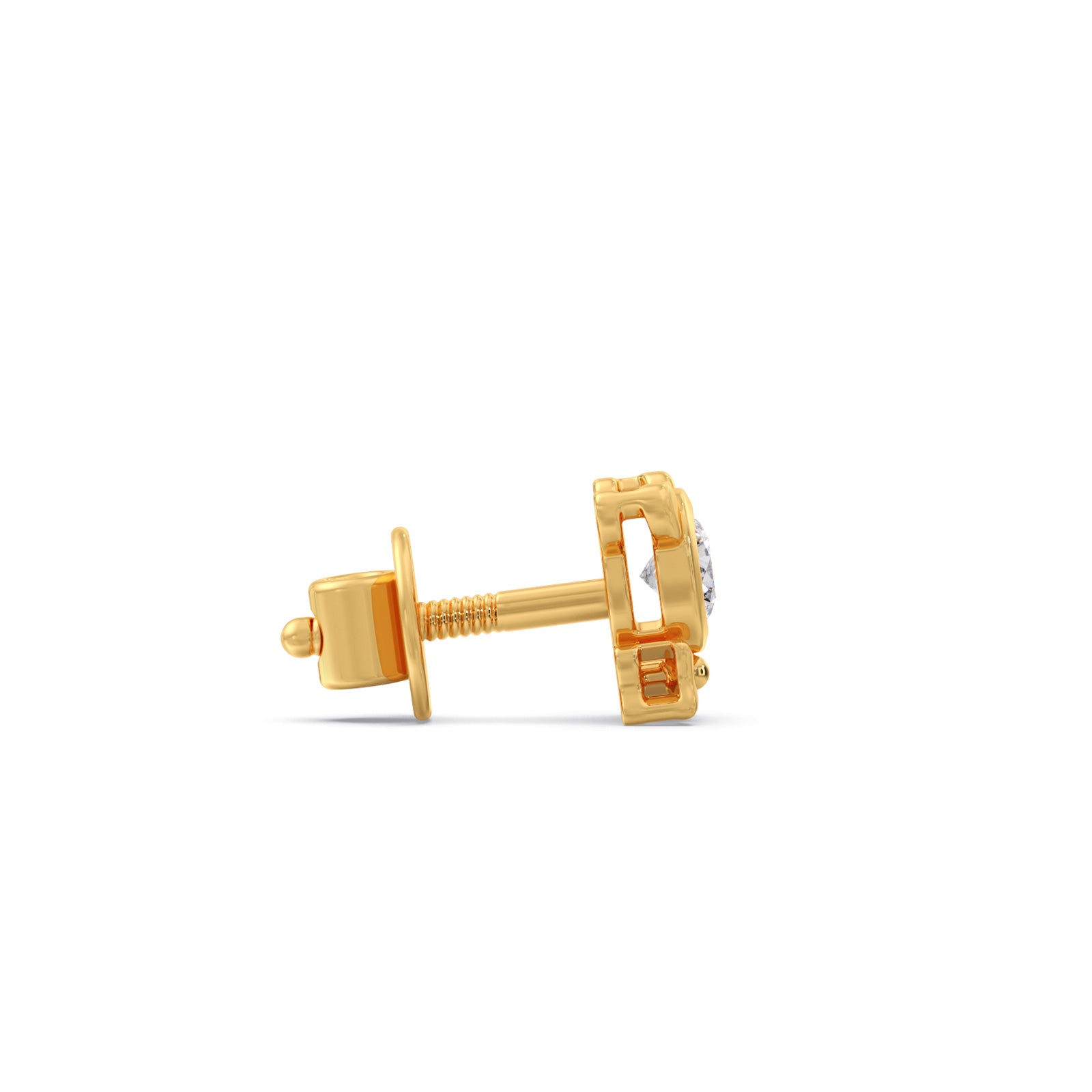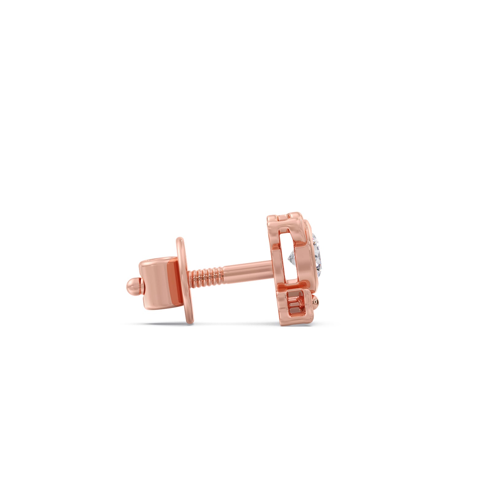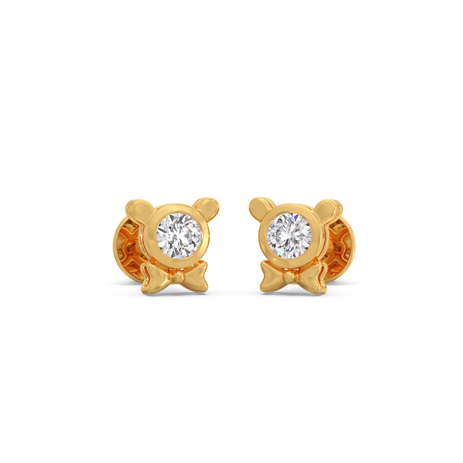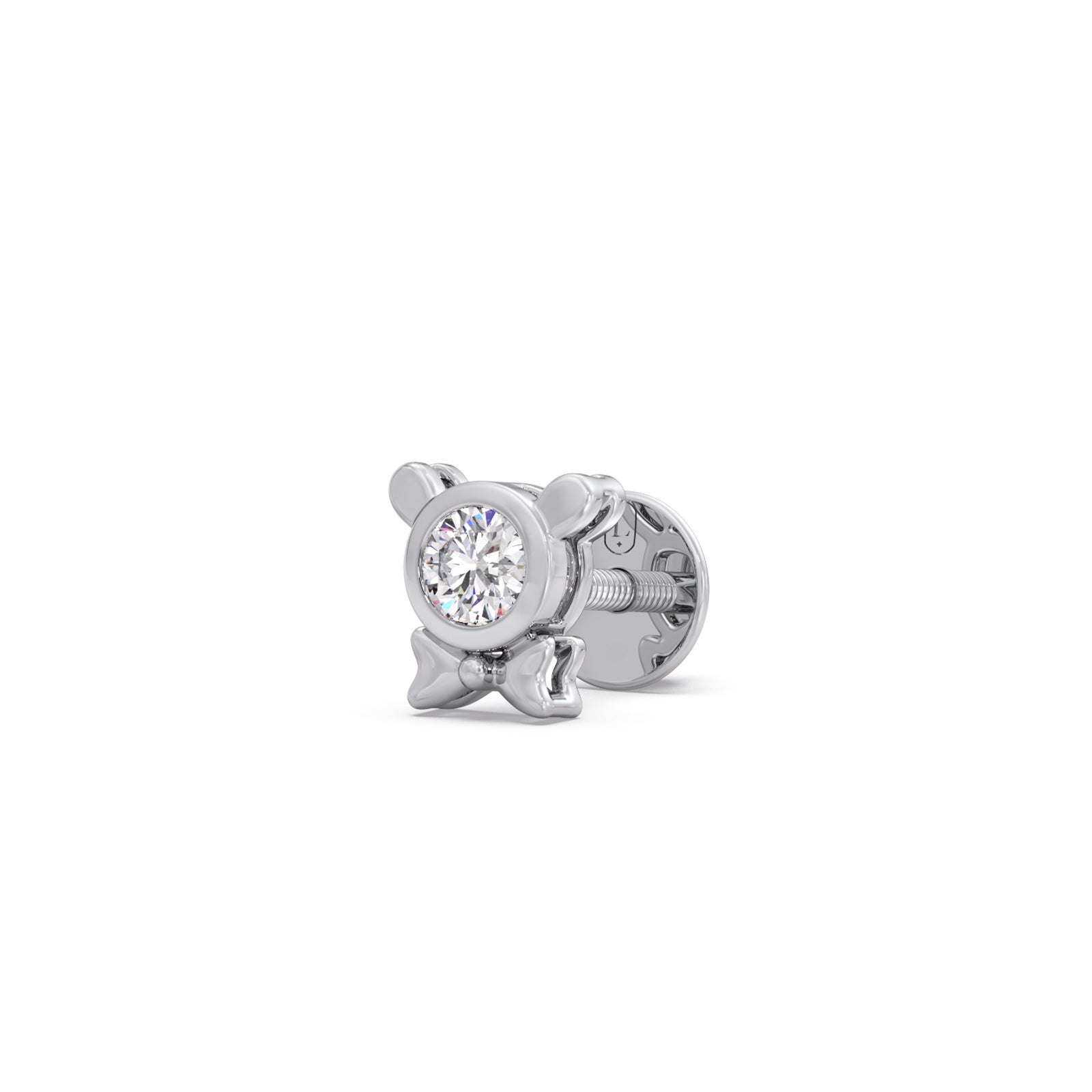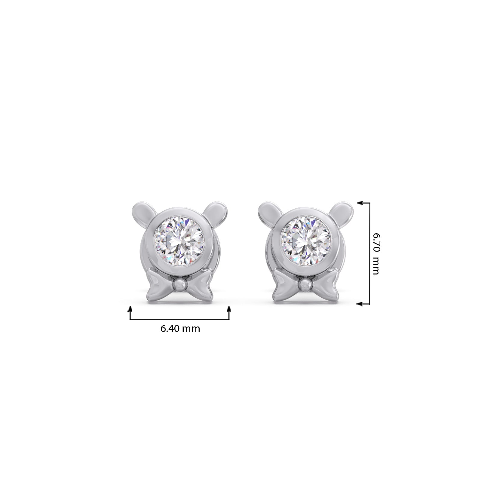 Embrace playful elegance with these adorable stud earrings. A brilliant round diamond is beautifully highlighted in a classic bezel setting, while a delicate bow adds a charming touch of whimsy. These earrings are the perfect blend of sparkle and sweetness.