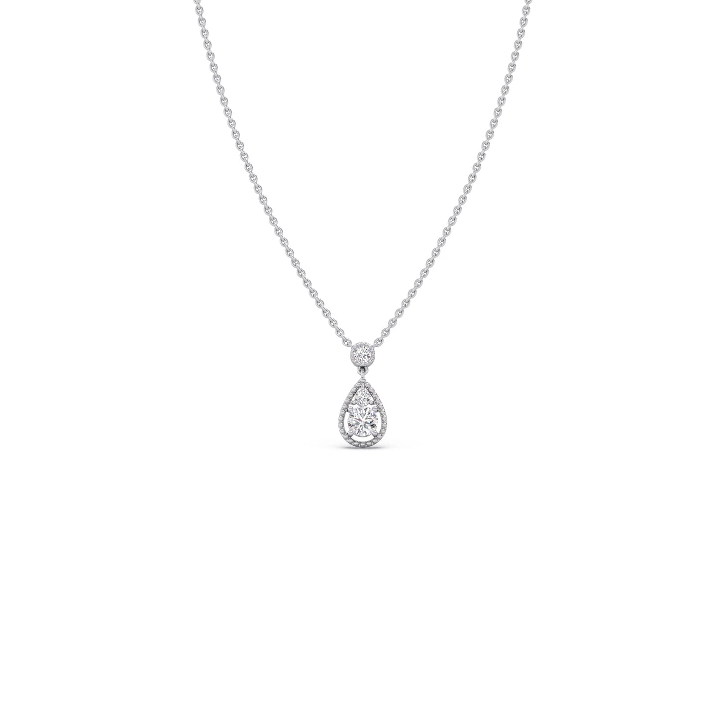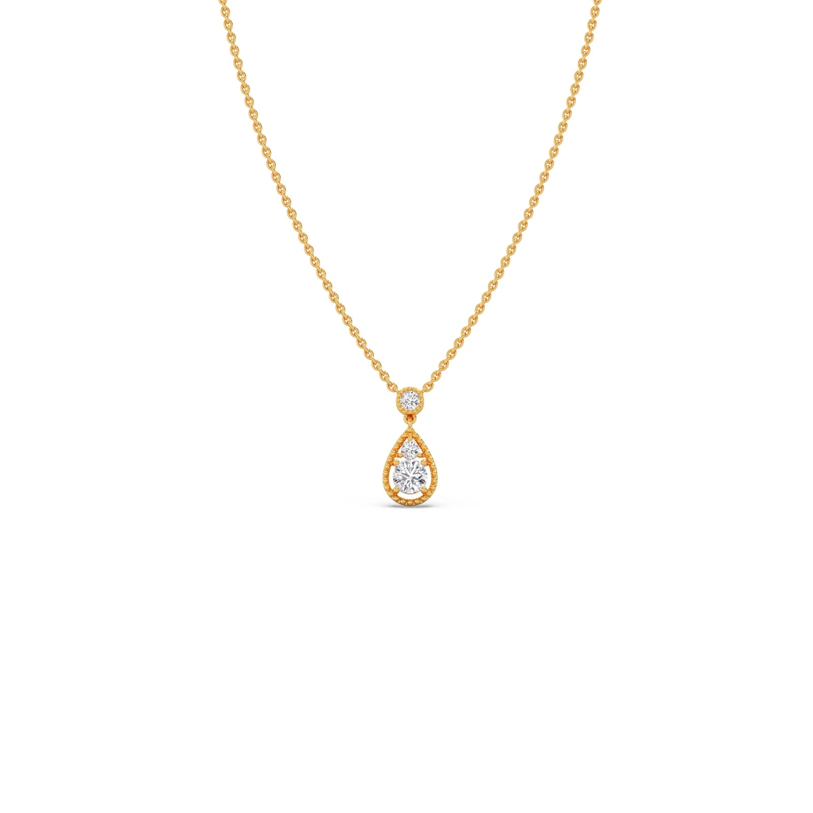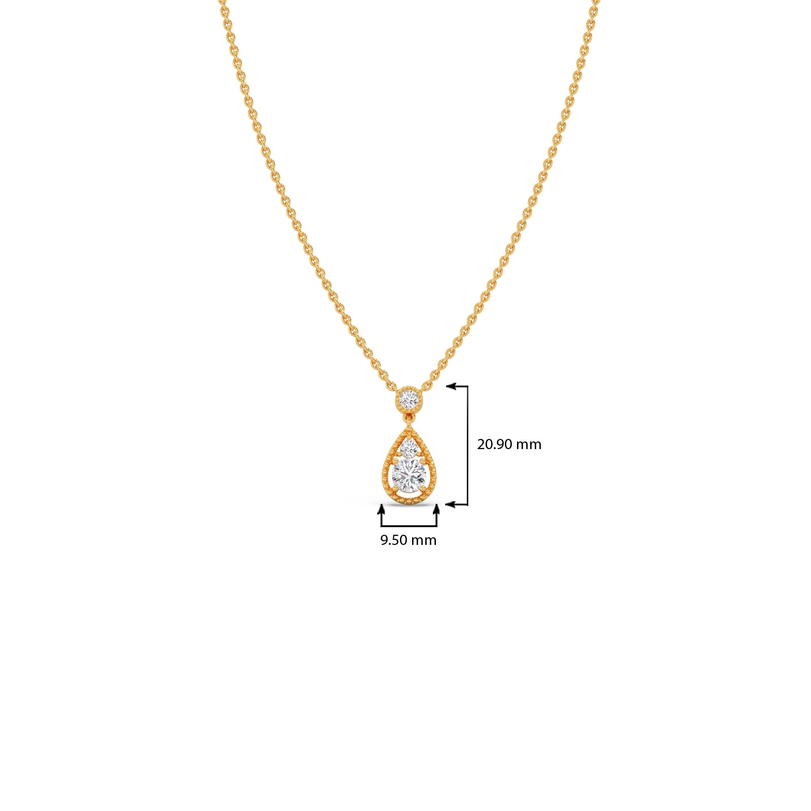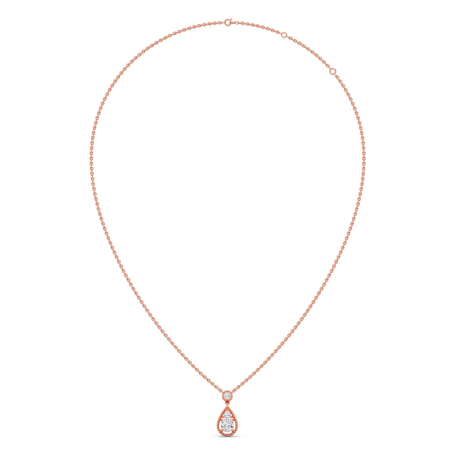 This pendant features three round diamonds, arranged in a teardrop cascade design. The diamonds are graduated in size, creating a flowing, sparkling effect. The pendant offers a modern and elegant look, perfect for adding a touch of sophisticated sparkle to any outfit.