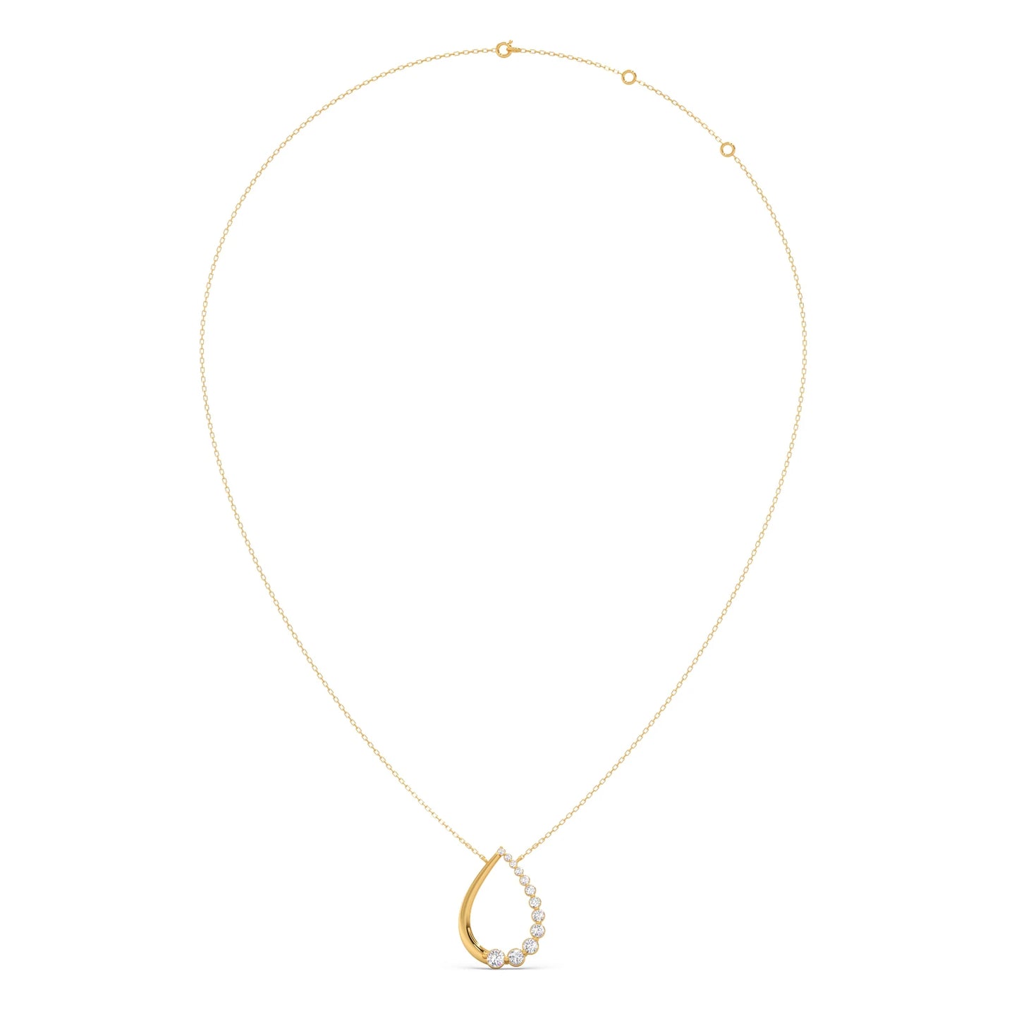 Adorn yourself with radiant beauty in this round diamond teardrop necklace. The carefully set diamonds create a dazzling effect as they cascade into the graceful teardrop shape. A stunning piece that adds a touch of glamour and sophistication to any look.