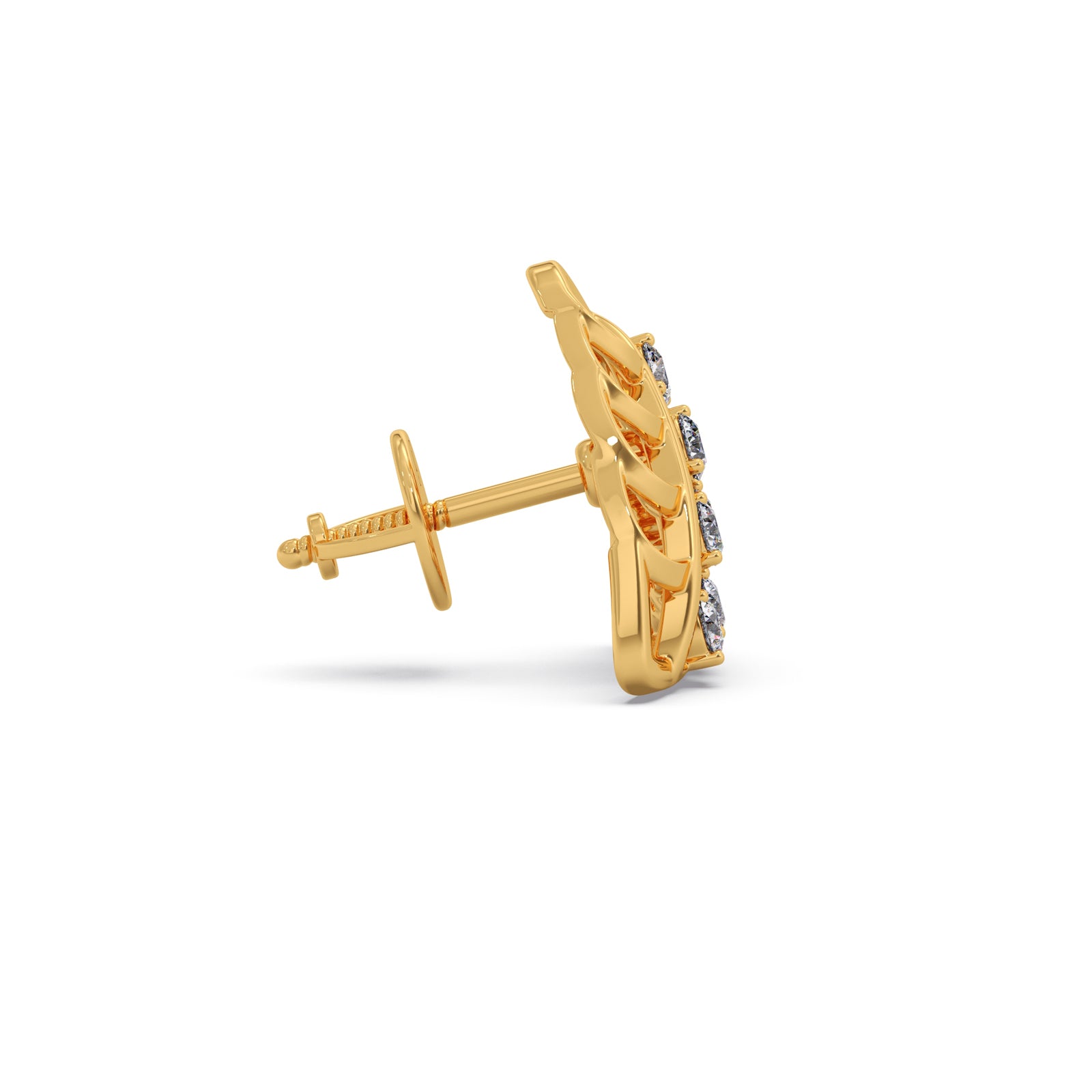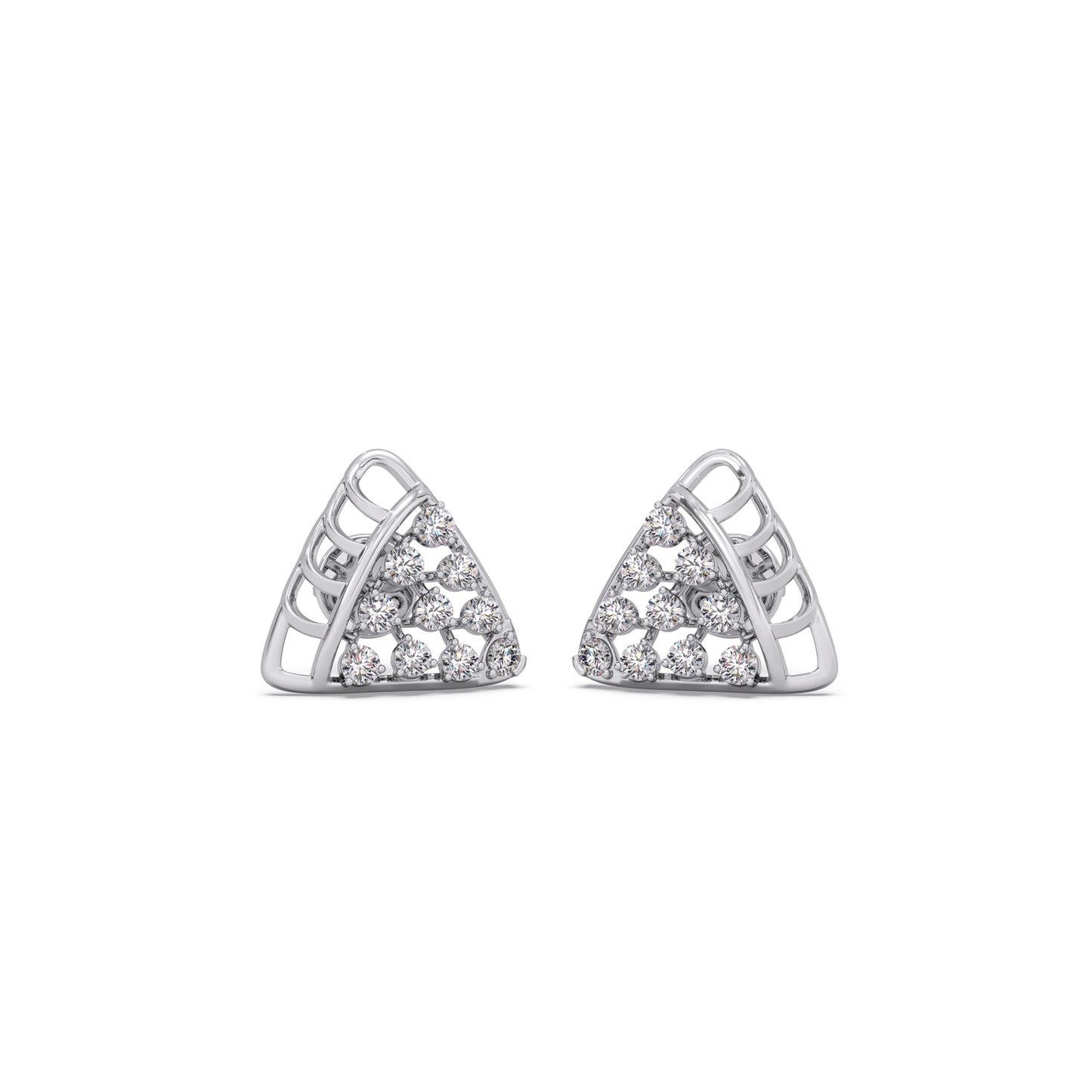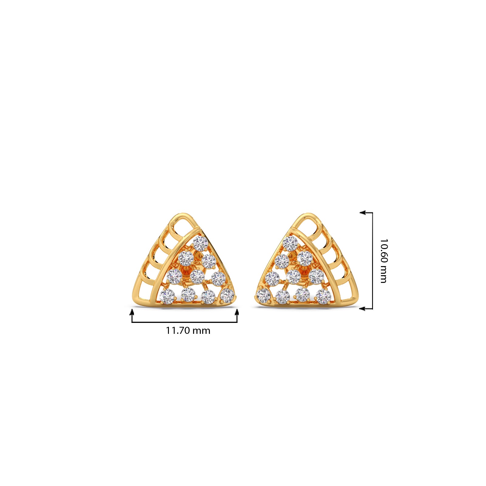 Elegant and modern, these stud earrings feature a unique triangular design. A cluster of brilliant round-cut diamonds is pavé-set within the intricate yellow gold framework, creating a stunning display of sparkle. These versatile earrings are perfect for adding a touch of geometric chic to any outfit.