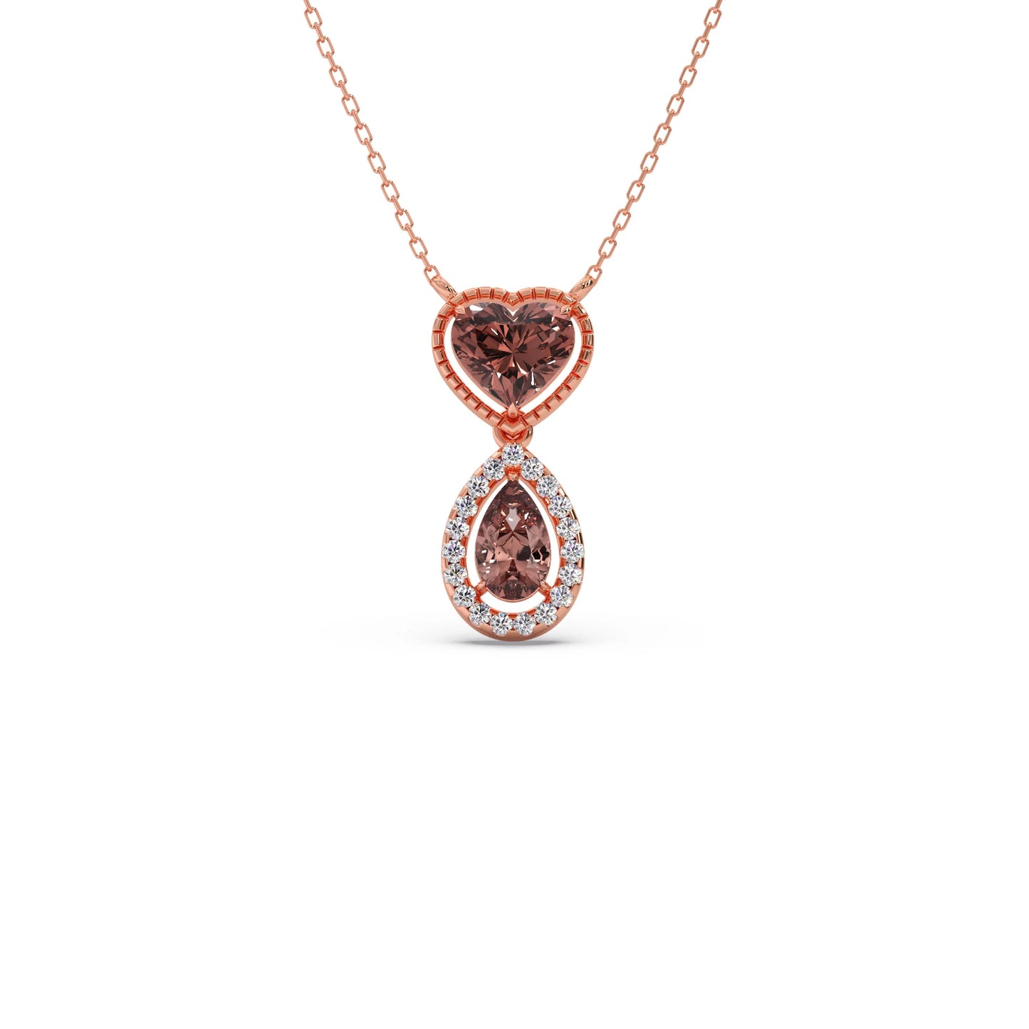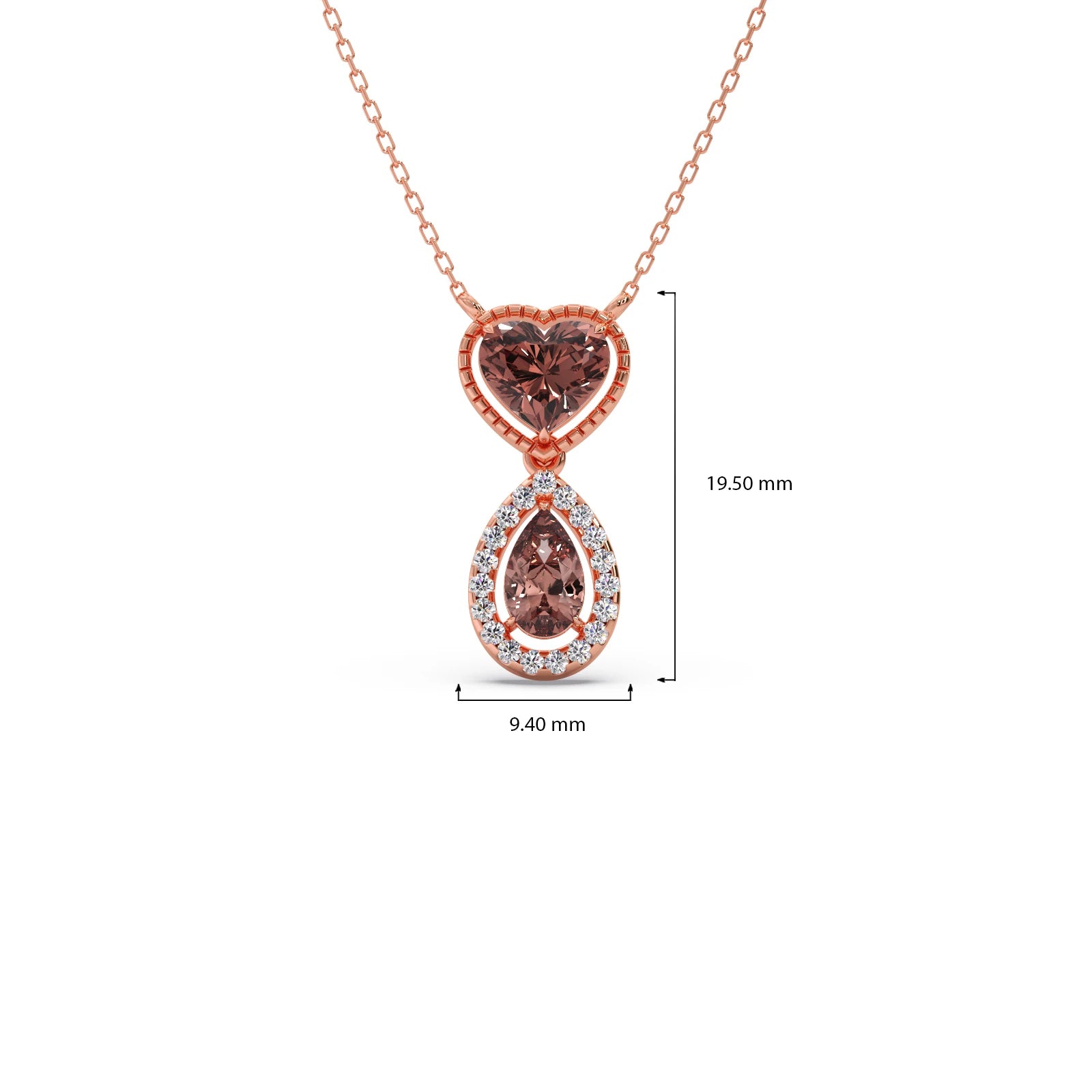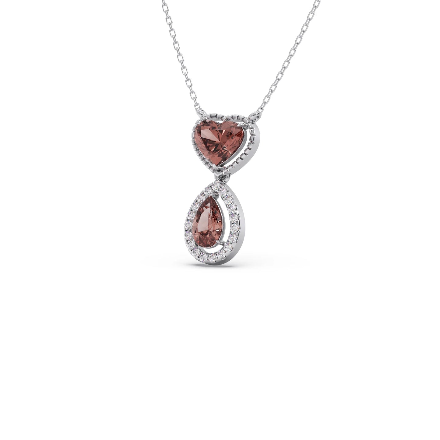 Round Diamond With Heart & Pear-Shaped Brown Gemstone Infinity Pendant