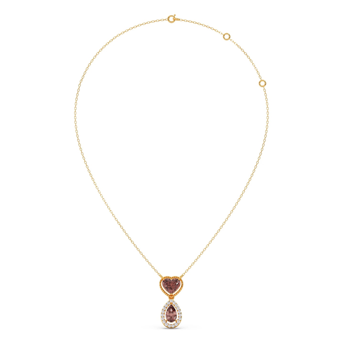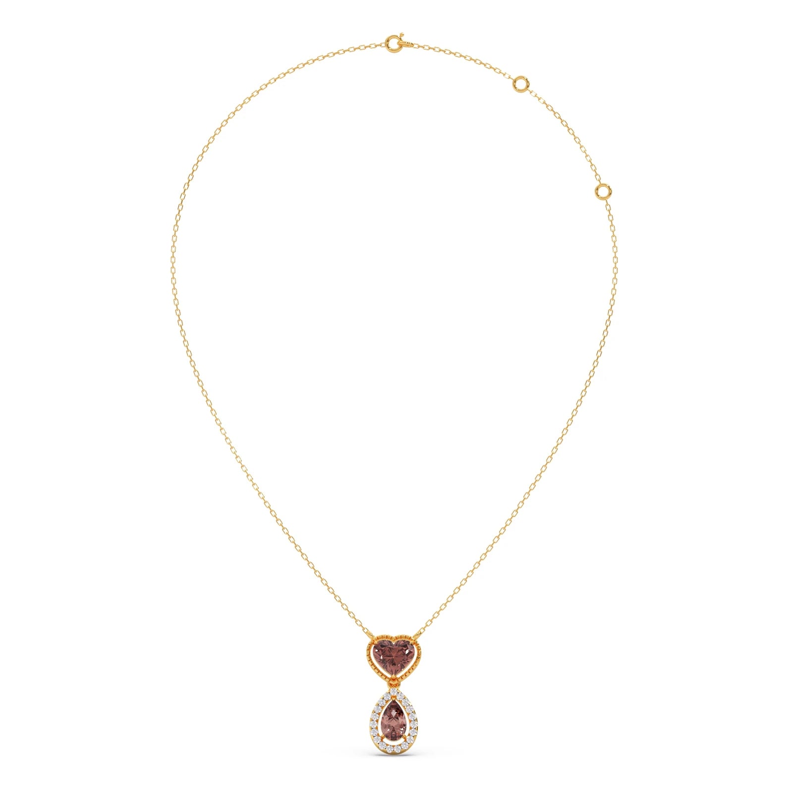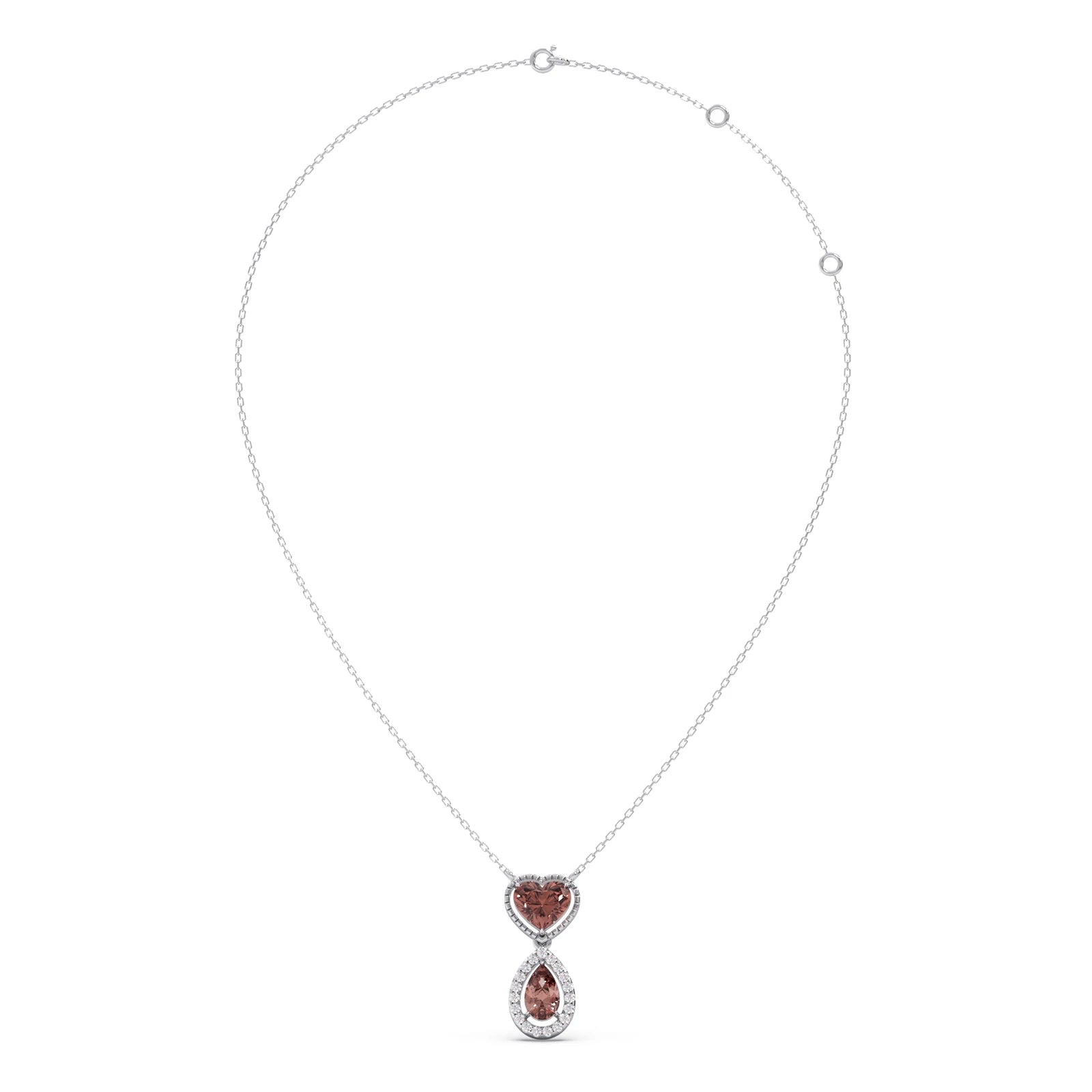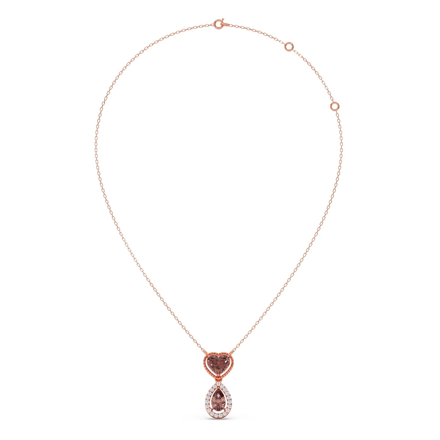 Round Diamond With Heart & Pear-Shaped Brown Gemstone Infinity Pendant