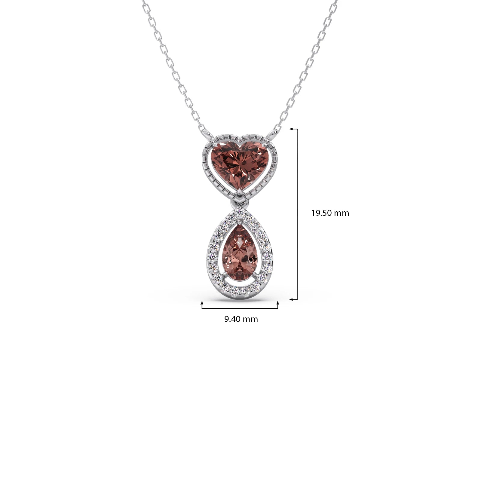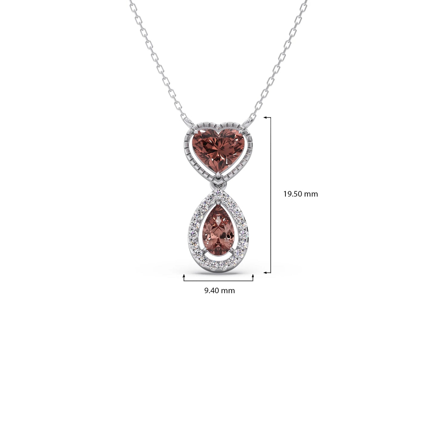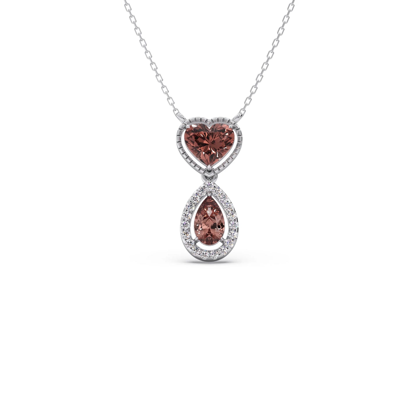This symbolic infinity pendant showcases a brilliant round diamond embracing a romantic heart and elegant pear-shaped brown gemstone. The rich warmth of the brown gems beautifully complements the diamond's sparkle, all intertwined in a timeless infinity motif. A meaningful piece celebrating everlasting connection and sophisticated style.
