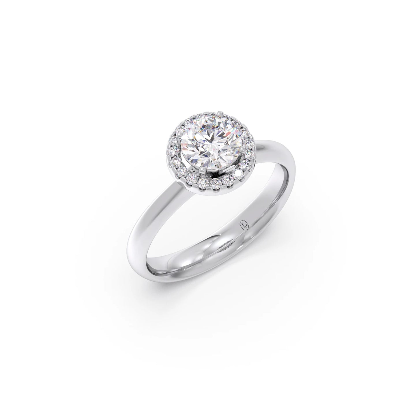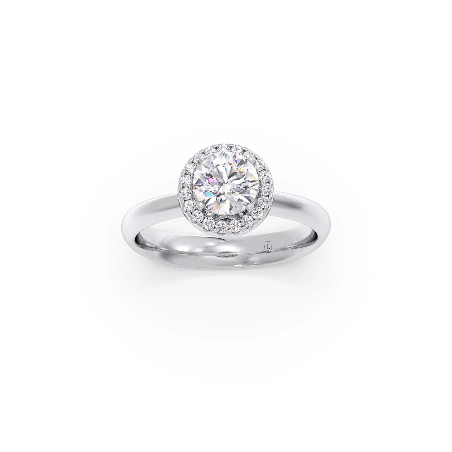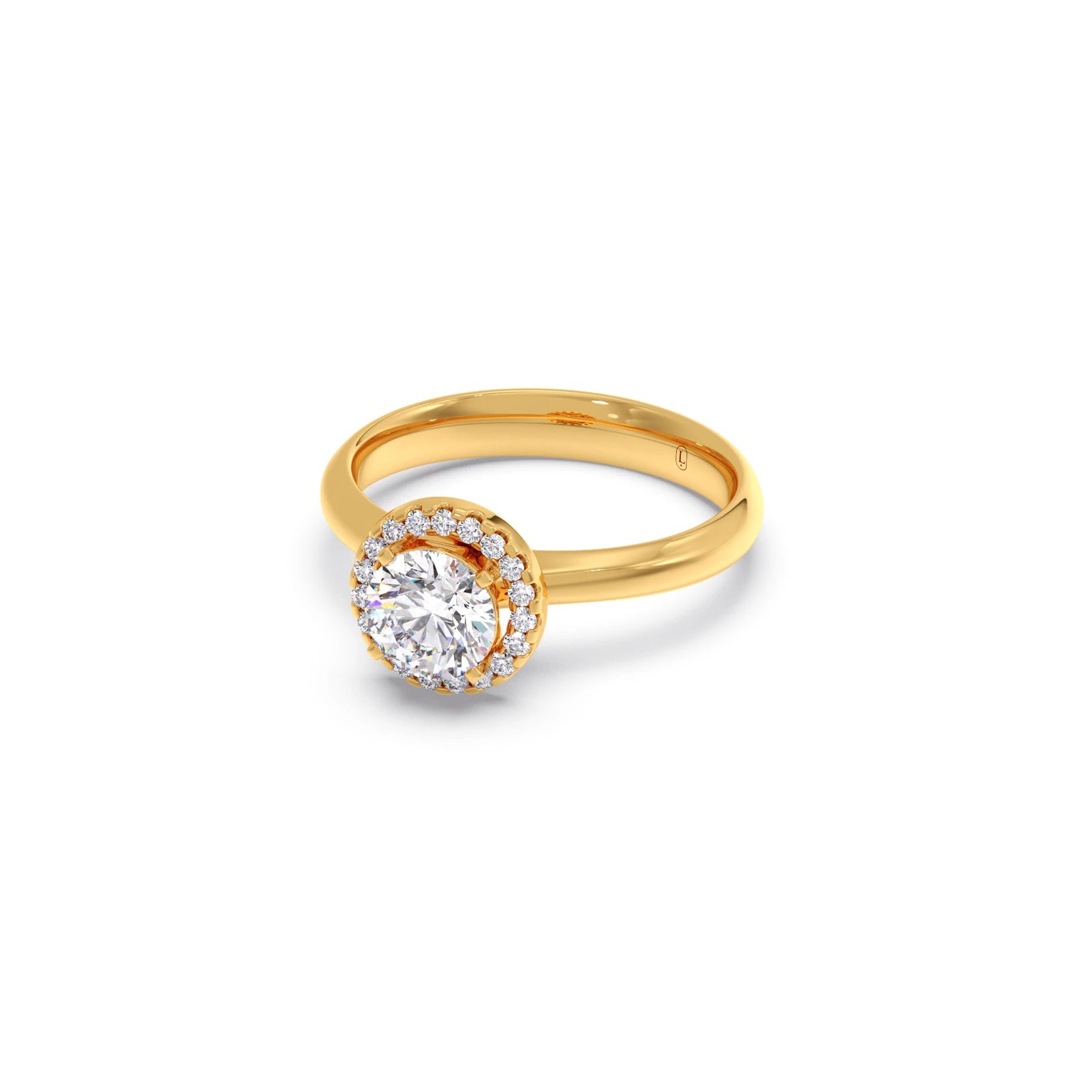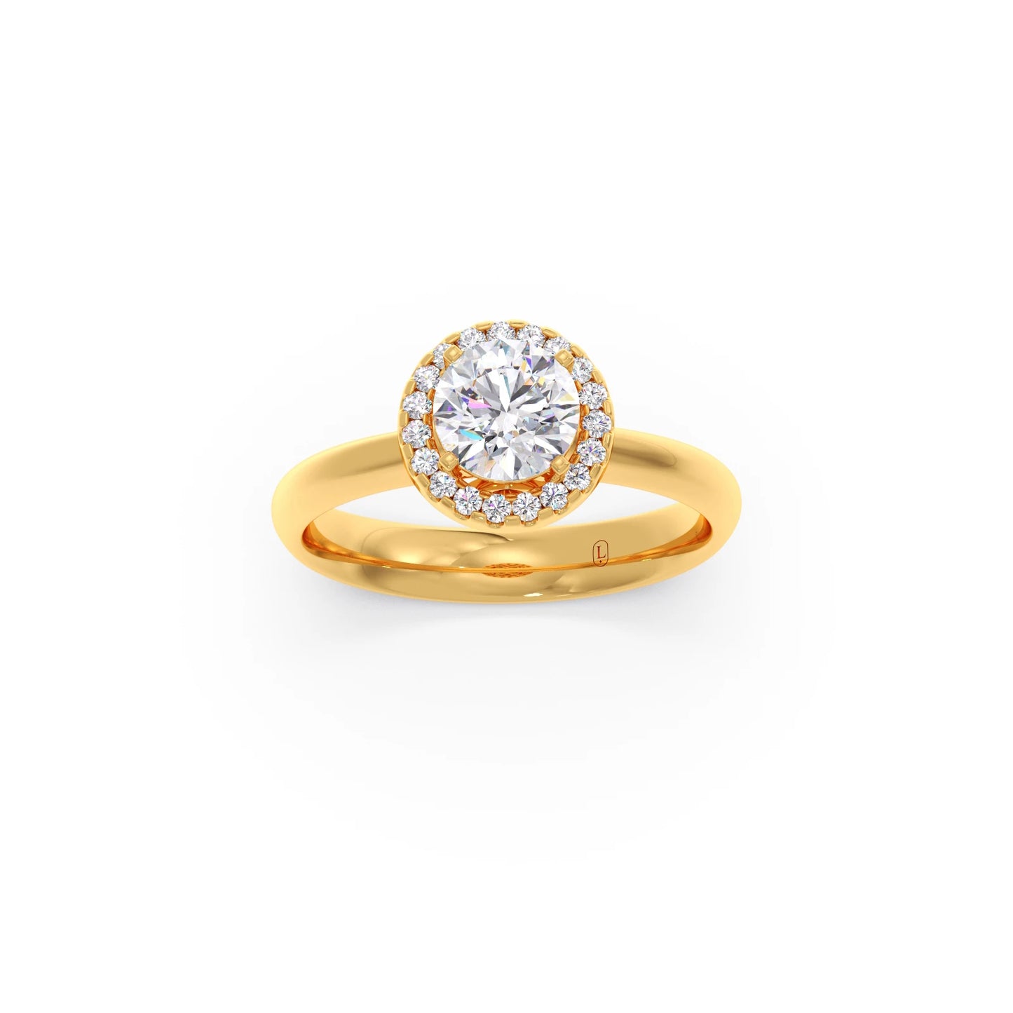 The Round Halo Solitaire Engagement Ring features a dazzling round-cut center stone, beautifully framed by a radiant halo for added brilliance. Set on a sleek and polished band, this timeless design enhances sparkle and elegance, making it the perfect choice for a classic yet modern symbol of love.