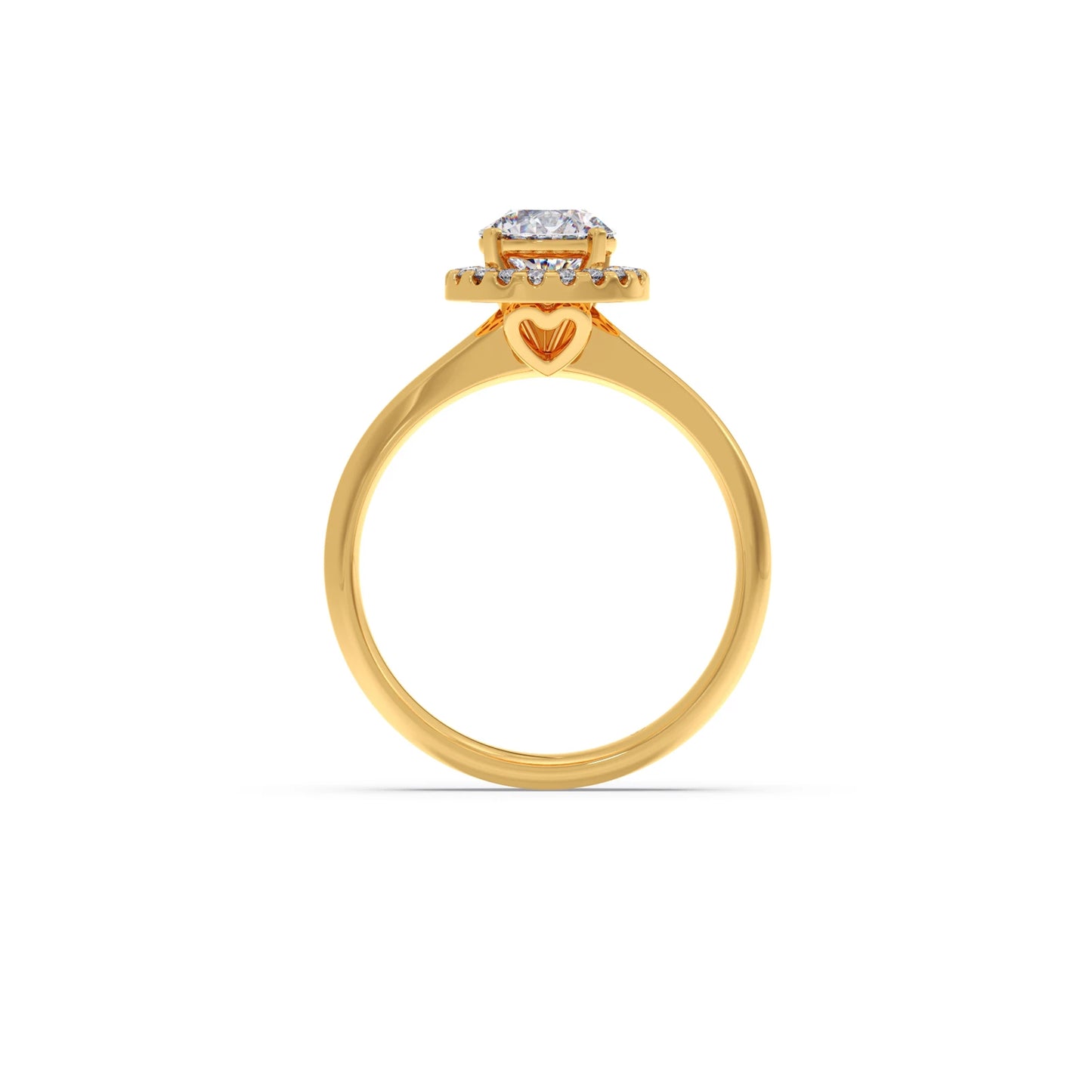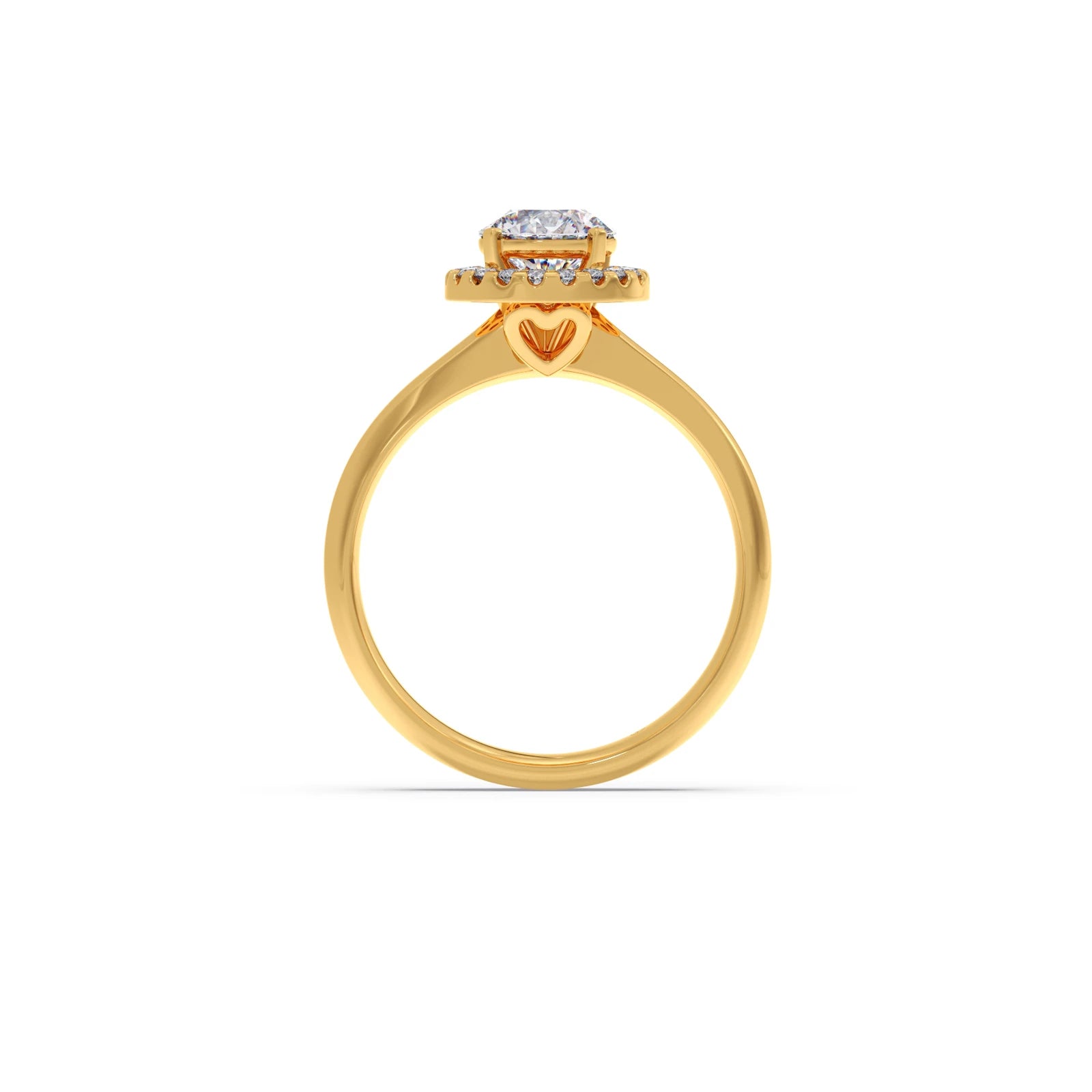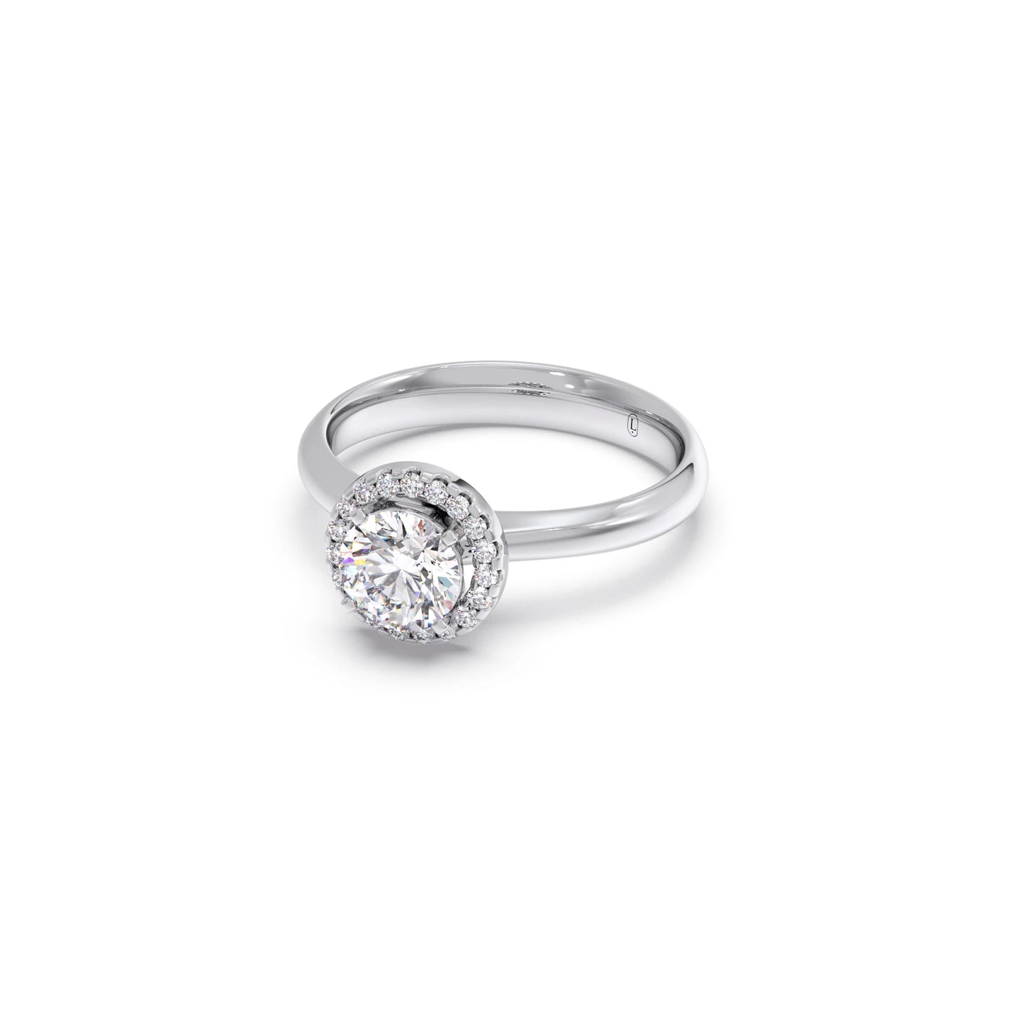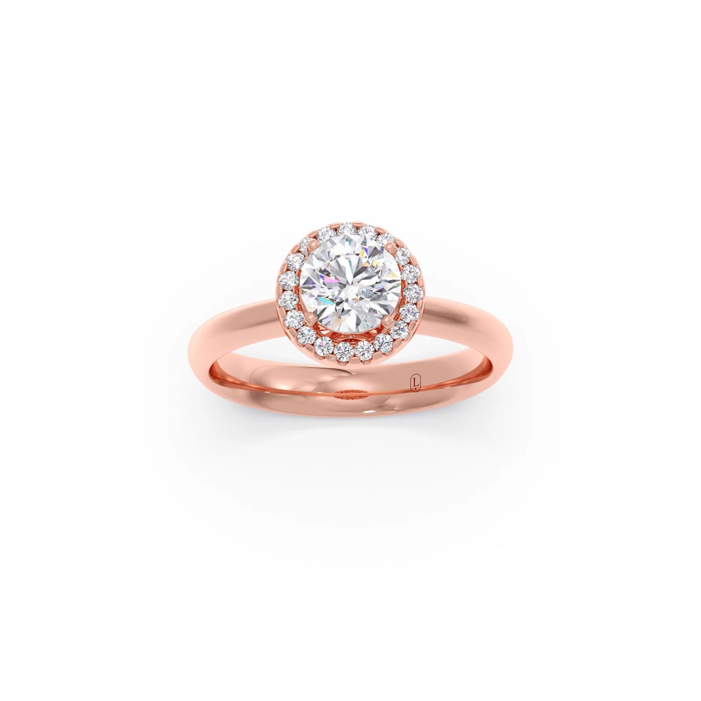 The Round Halo Solitaire Engagement Ring features a dazzling round-cut center stone, beautifully framed by a radiant halo for added brilliance. Set on a sleek and polished band, this timeless design enhances sparkle and elegance, making it the perfect choice for a classic yet modern symbol of love.