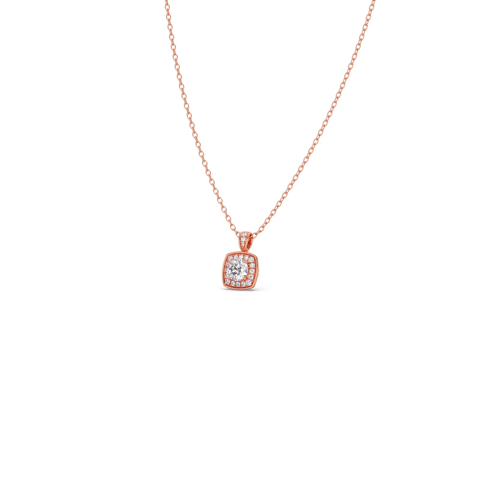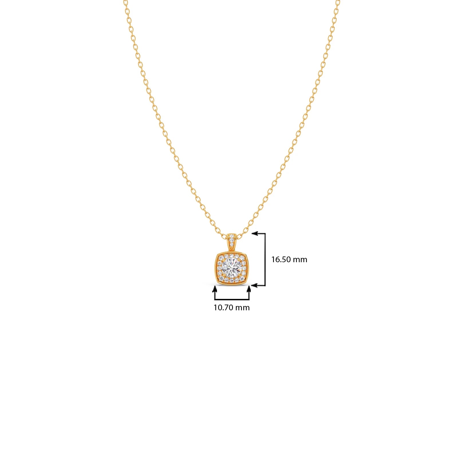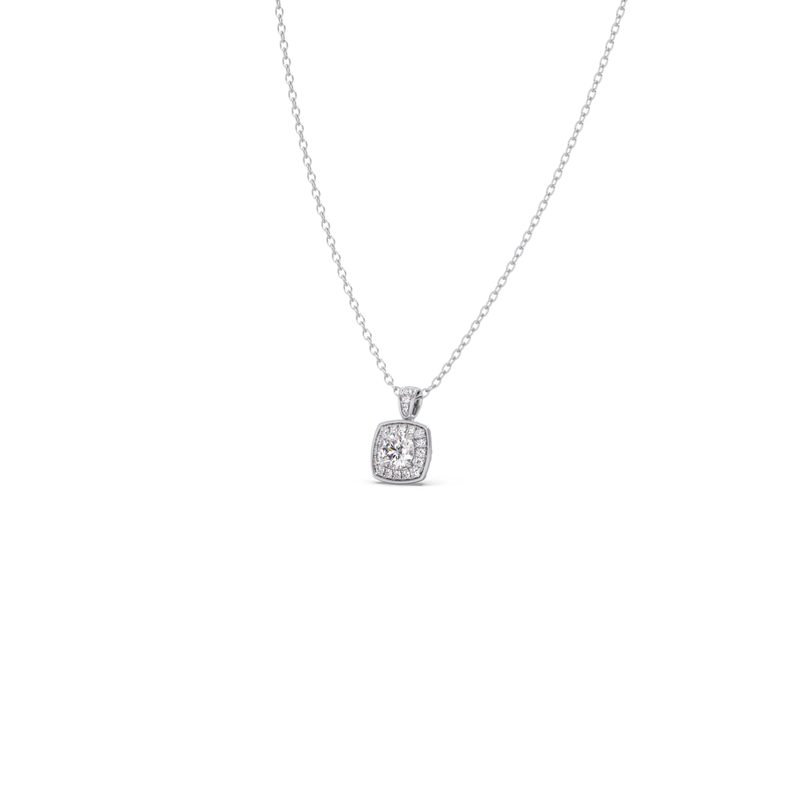 A timeless expression of brilliance, this round halo solitaire pendant necklace features a central, dazzling round-cut gemstone encircled by a delicate halo of smaller diamonds. This design amplifies the center stone's sparkle and creates a captivating display of light. Elegant and sophisticated, it's a cherished piece for any occasion.