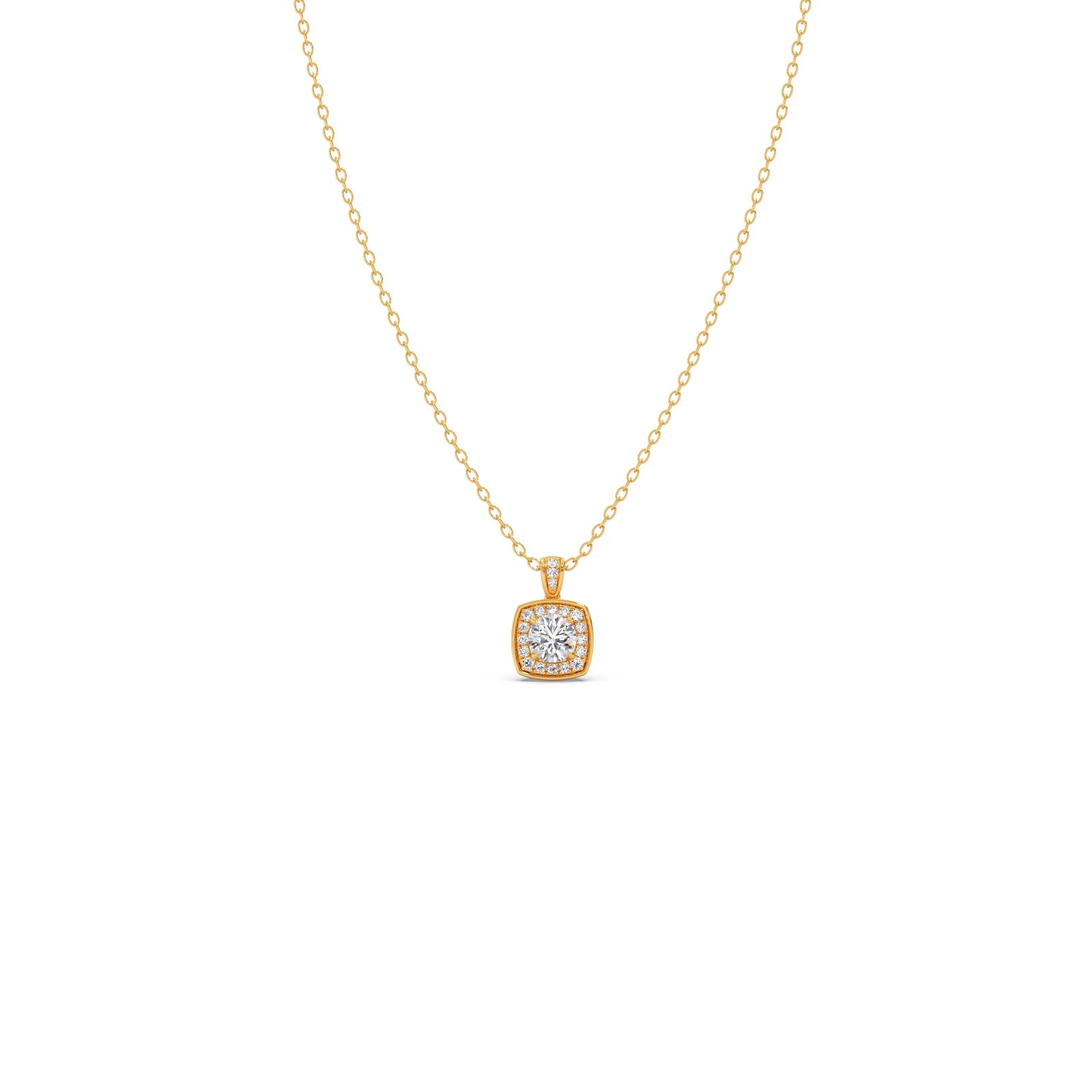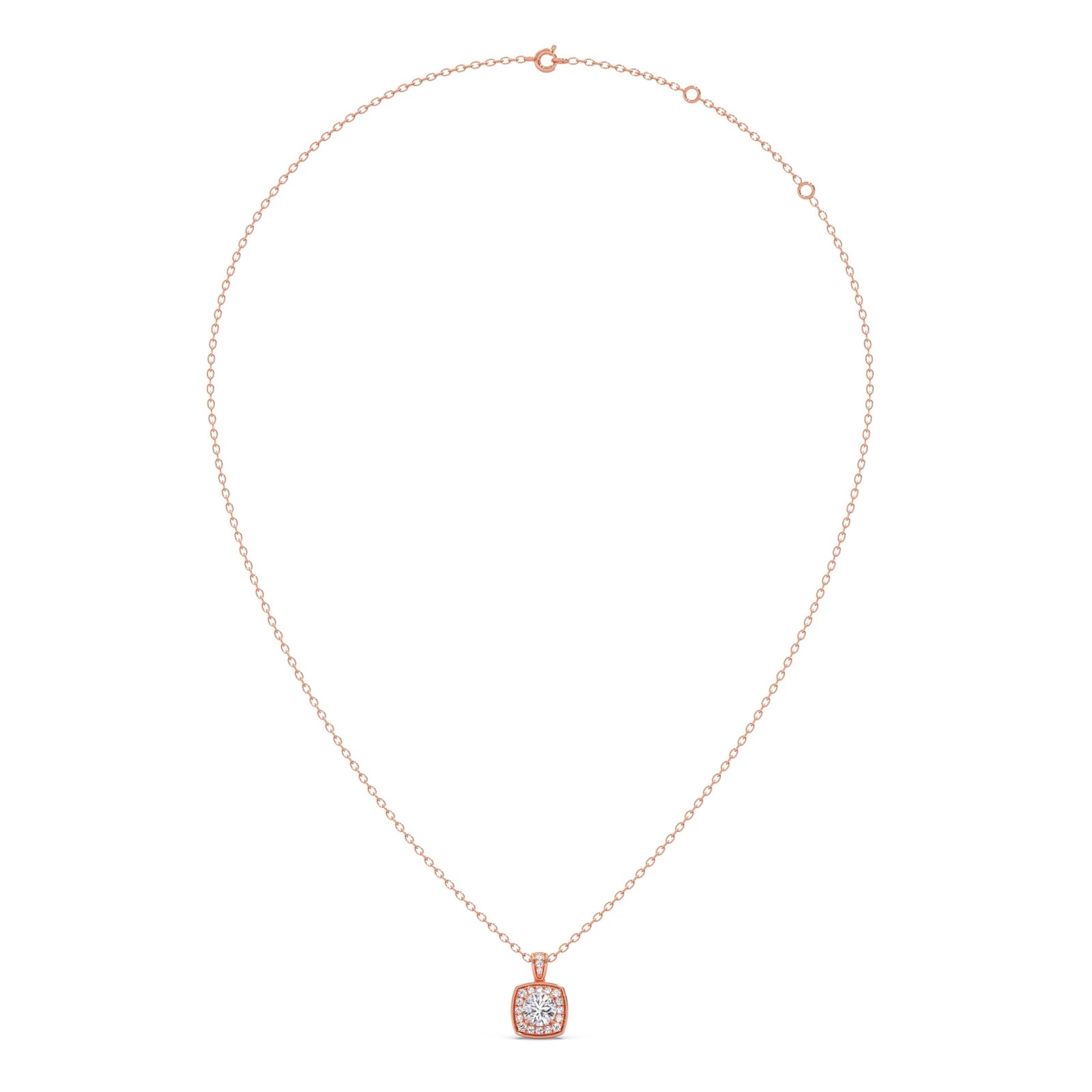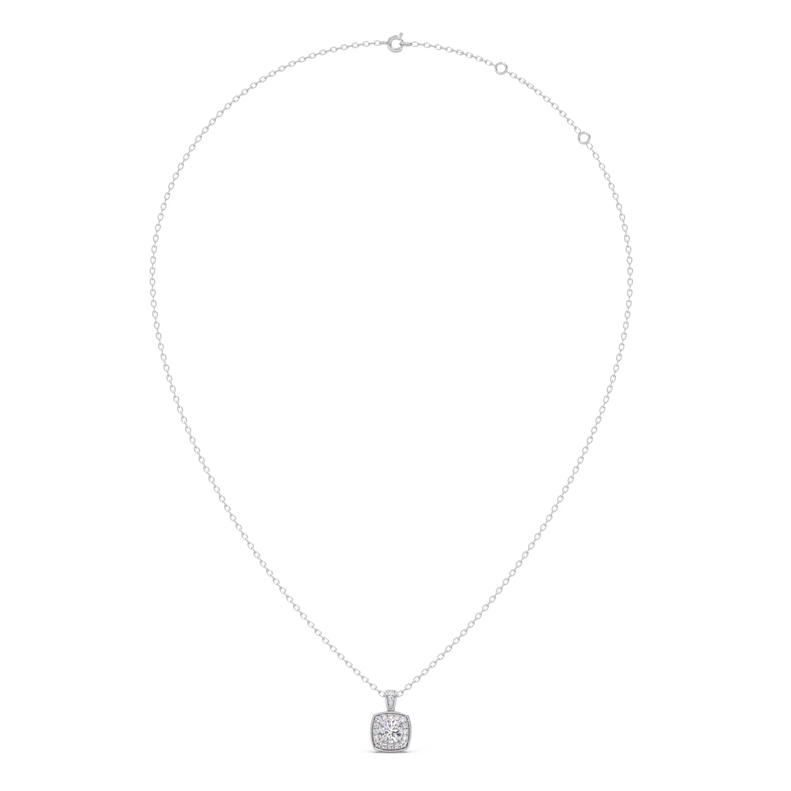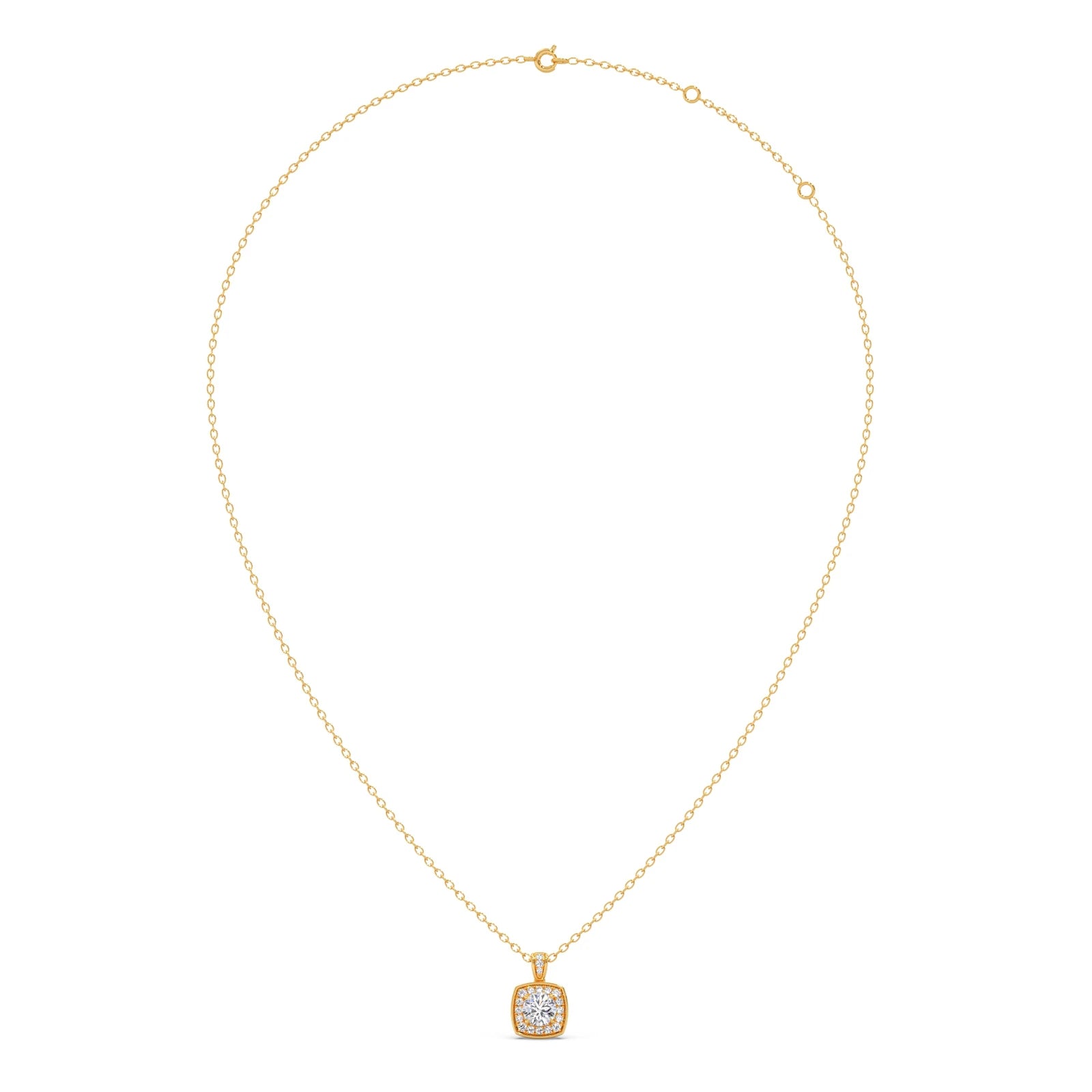 A timeless expression of brilliance, this round halo solitaire pendant necklace features a central, dazzling round-cut gemstone encircled by a delicate halo of smaller diamonds. This design amplifies the center stone's sparkle and creates a captivating display of light. Elegant and sophisticated, it's a cherished piece for any occasion.