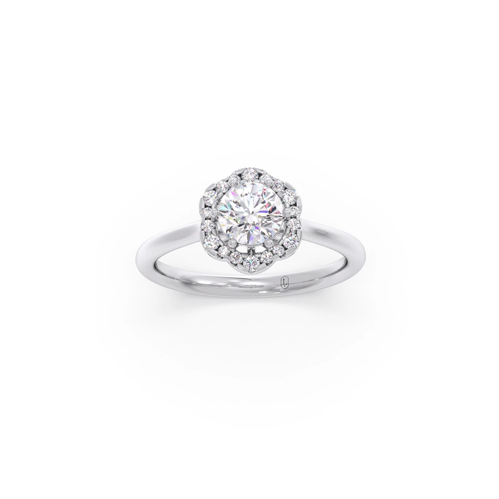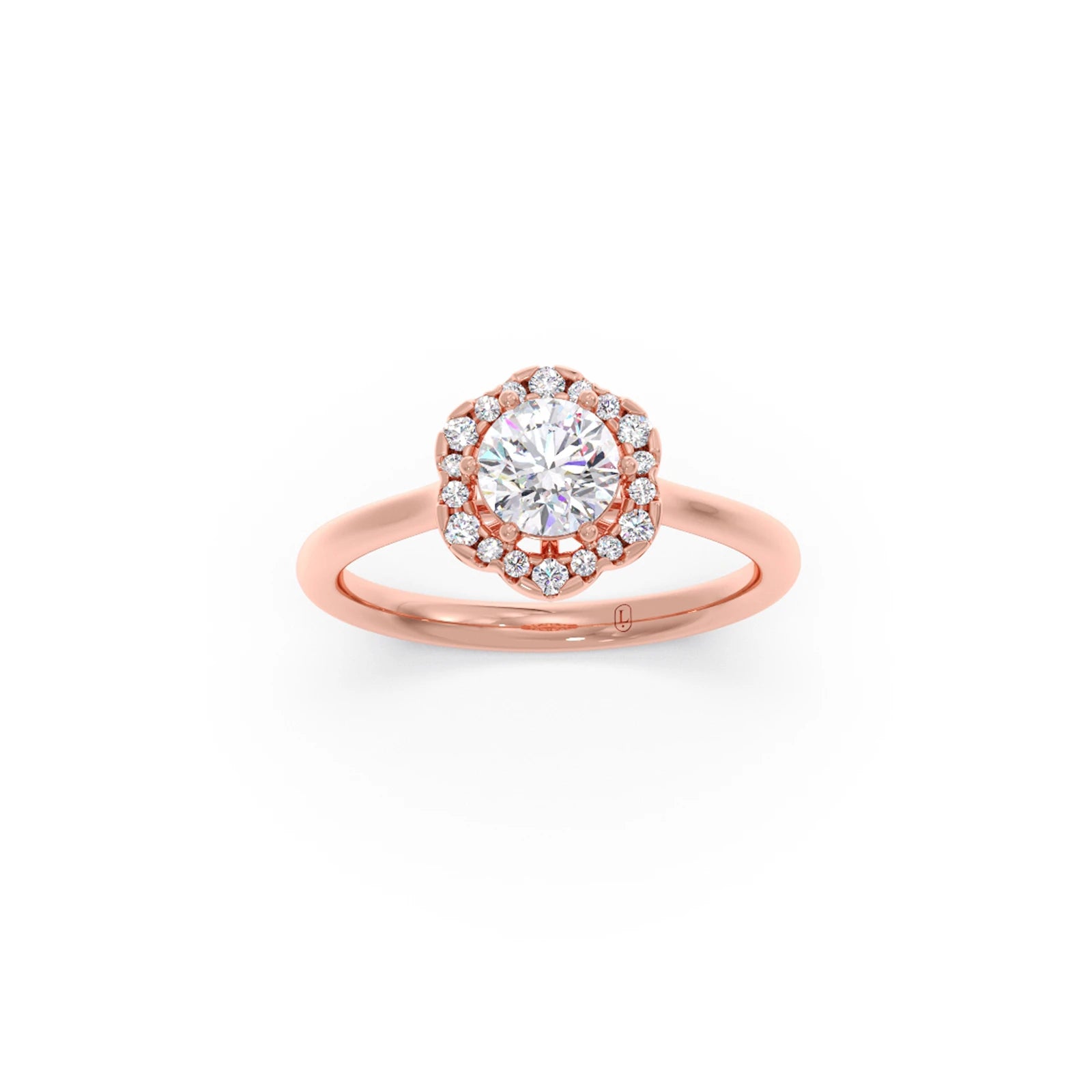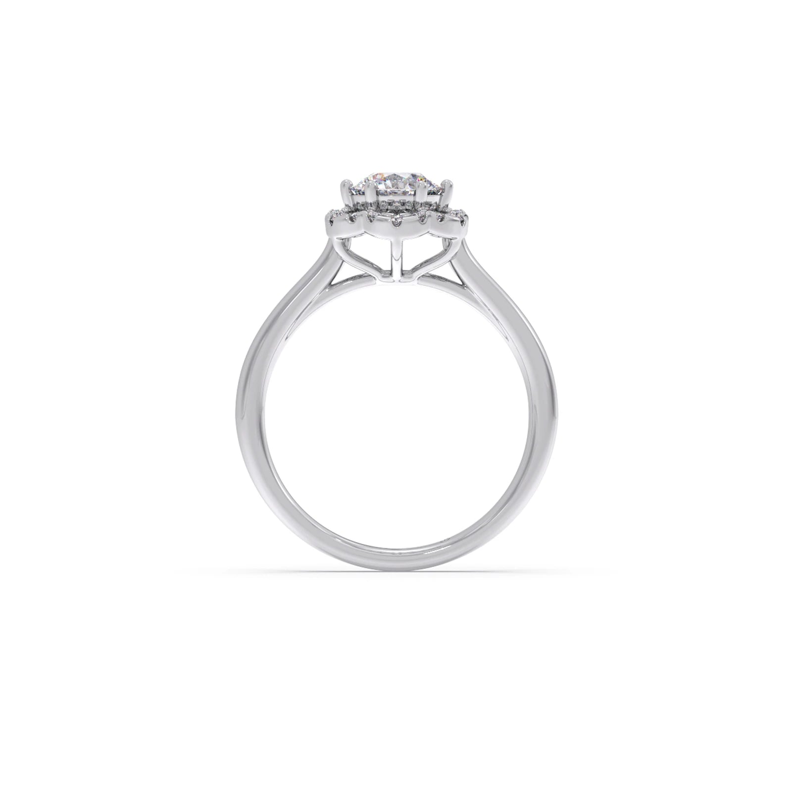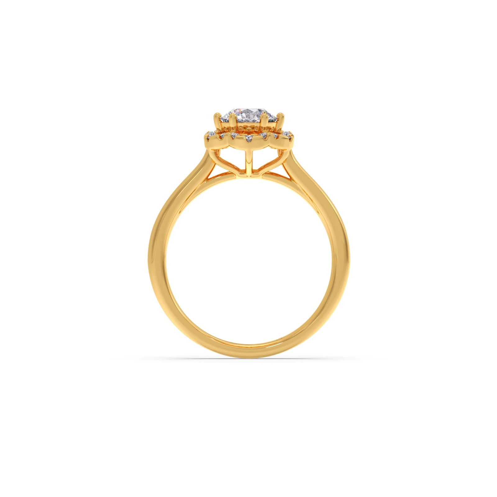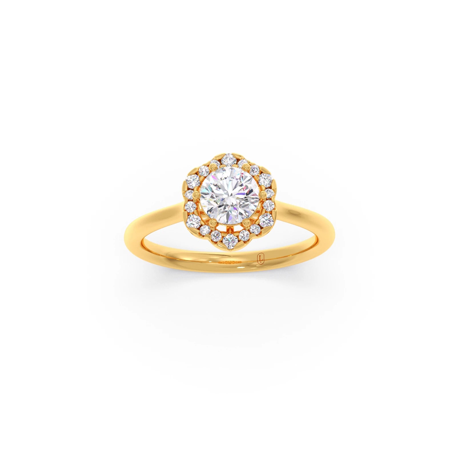 The Round Halo Solitaire Ring features a dazzling round-cut center stone, encircled by a radiant halo for added brilliance. Set on a sleek, polished band, this timeless design enhances sparkle and elegance, making it a perfect choice for those who love classic beauty with a modern touch