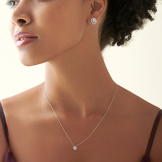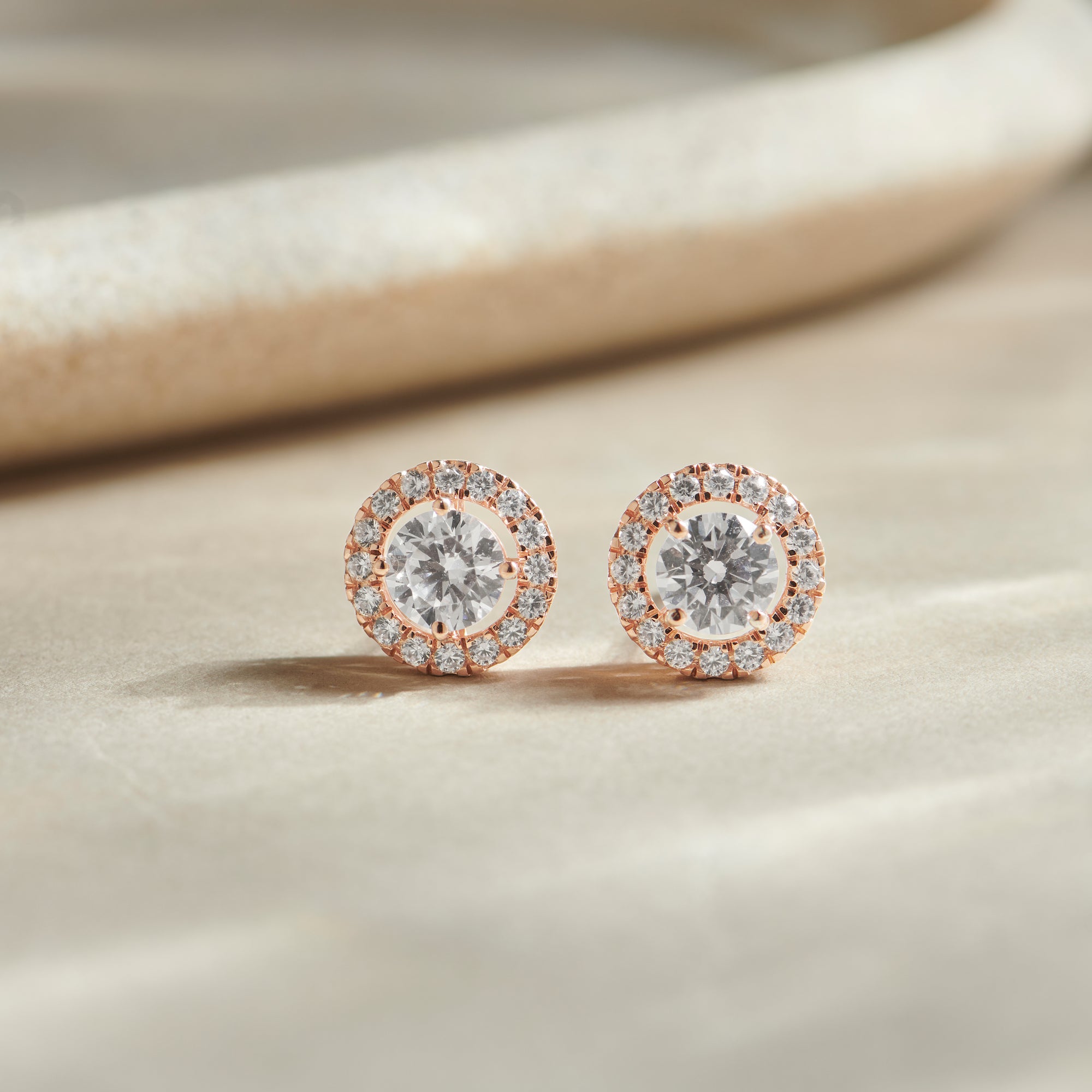 Elevate your everyday style with our Round Halo Stud Earrings. Each earring features a sparkling 5.40mm round centre stone embraced by a delicate halo of smaller diamonds, amplifying its brilliance. Set in your choice of fine metal, these classic yet dazzling studs offer a touch of refined glamour for any occasion.
