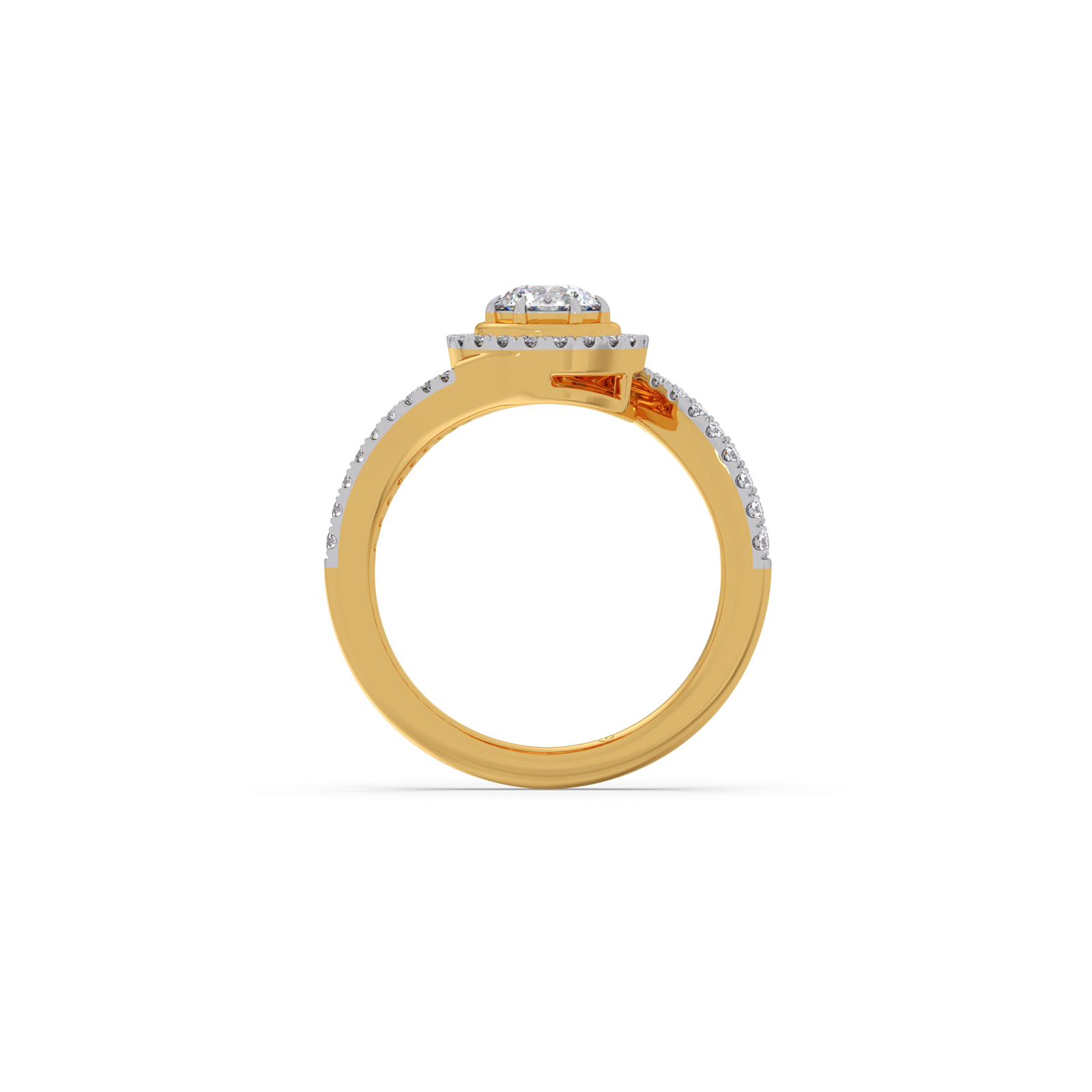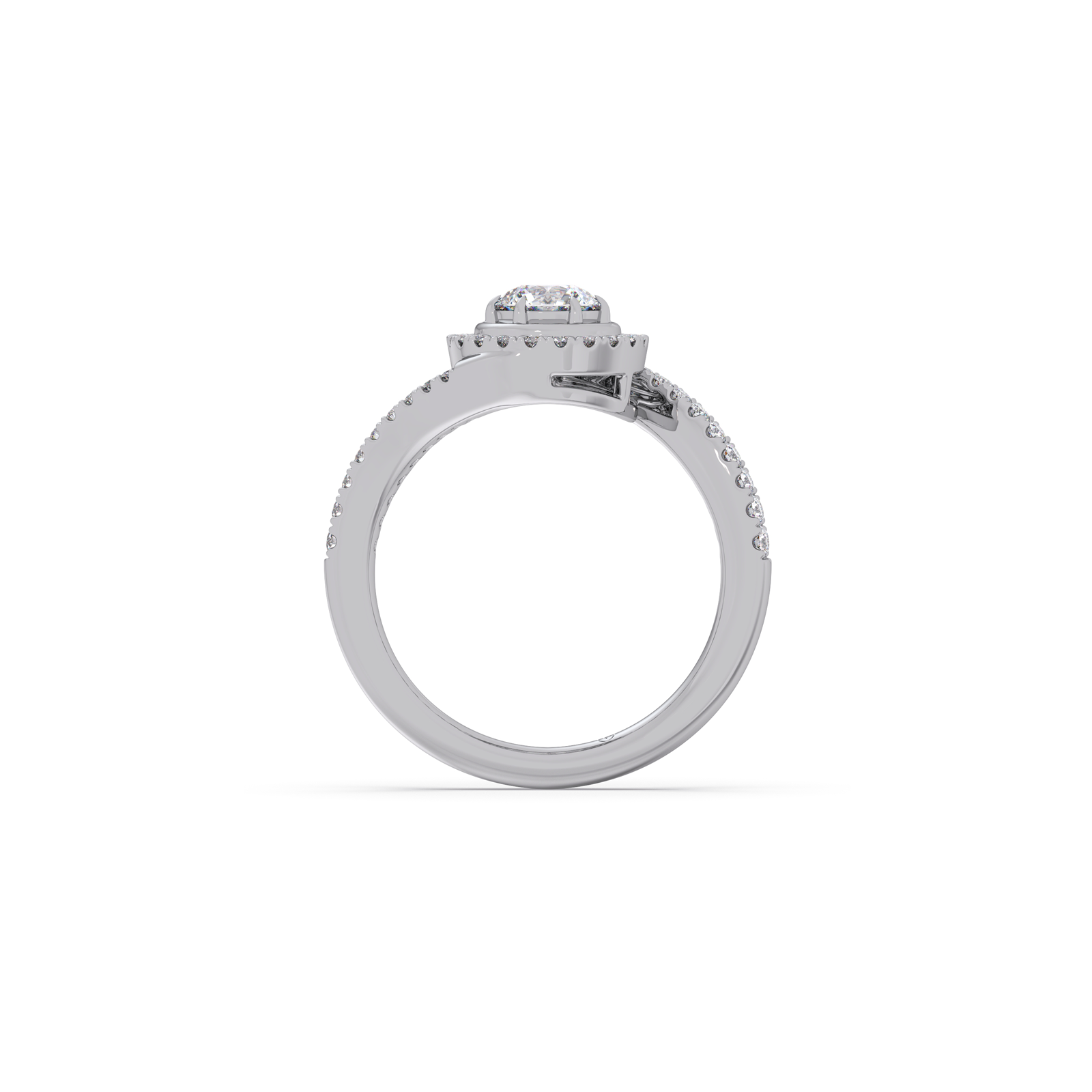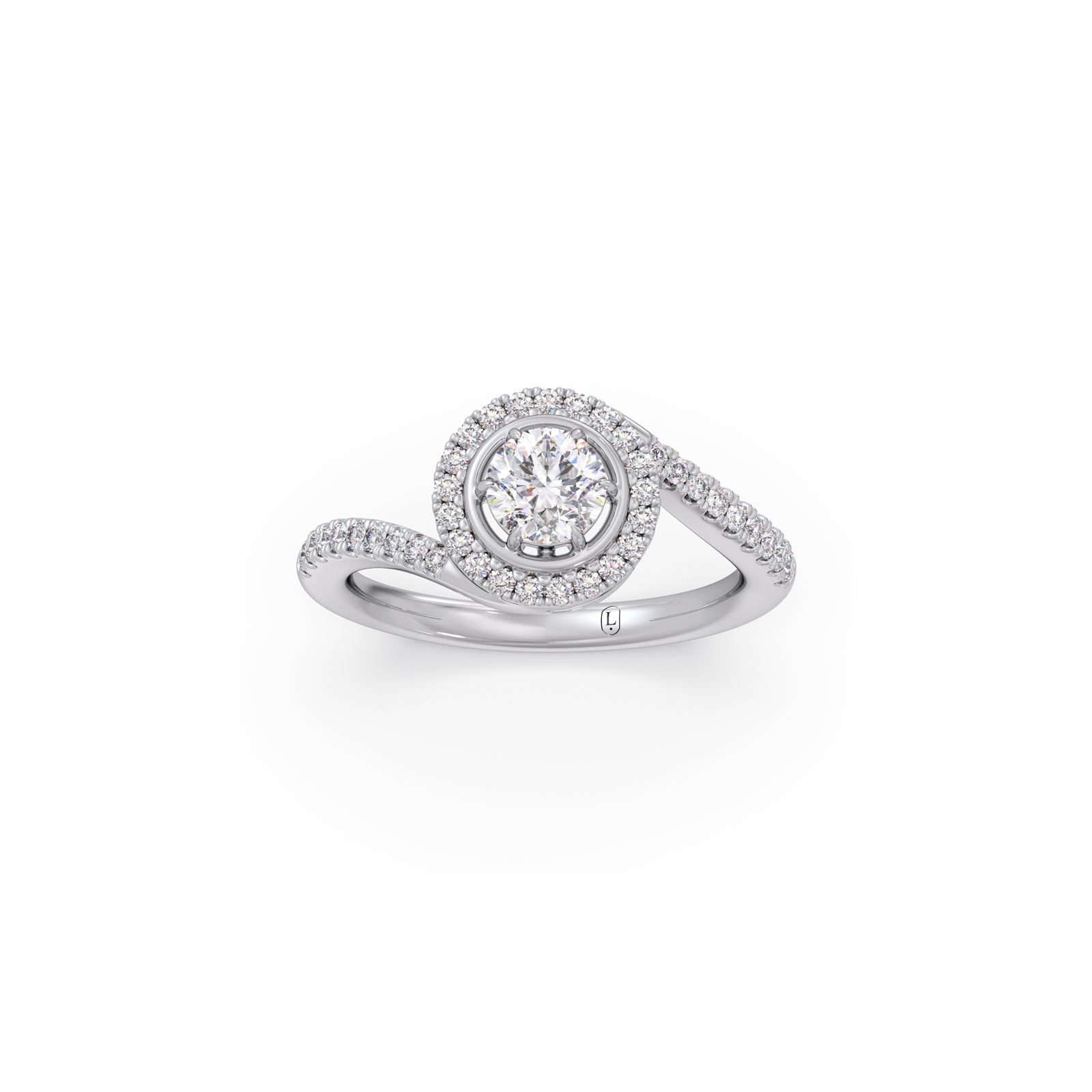 The Round Halo Twist Engagement Ring features a dazzling round-cut center stone, encircled by a shimmering halo for added brilliance. The elegantly twisted band symbolizes the intertwining of two souls, blending timeless romance with modern elegance. A perfect choice for those who love unique, sophisticated designs.