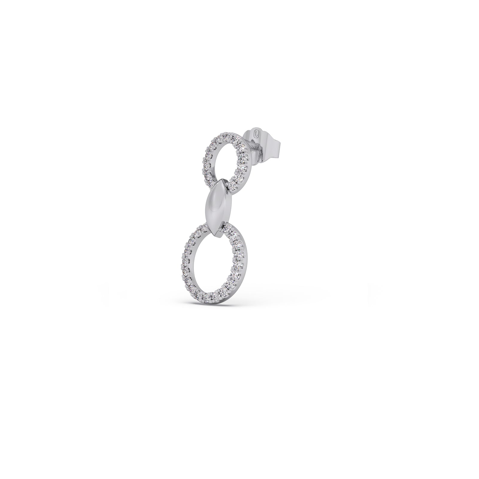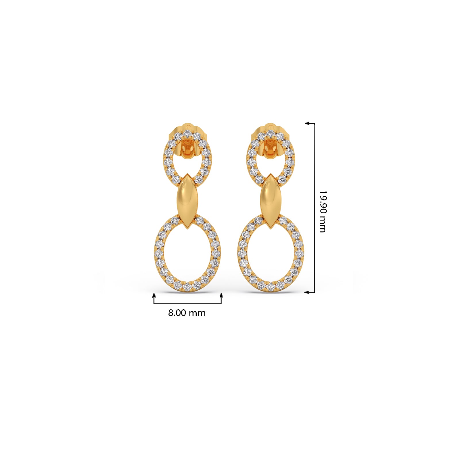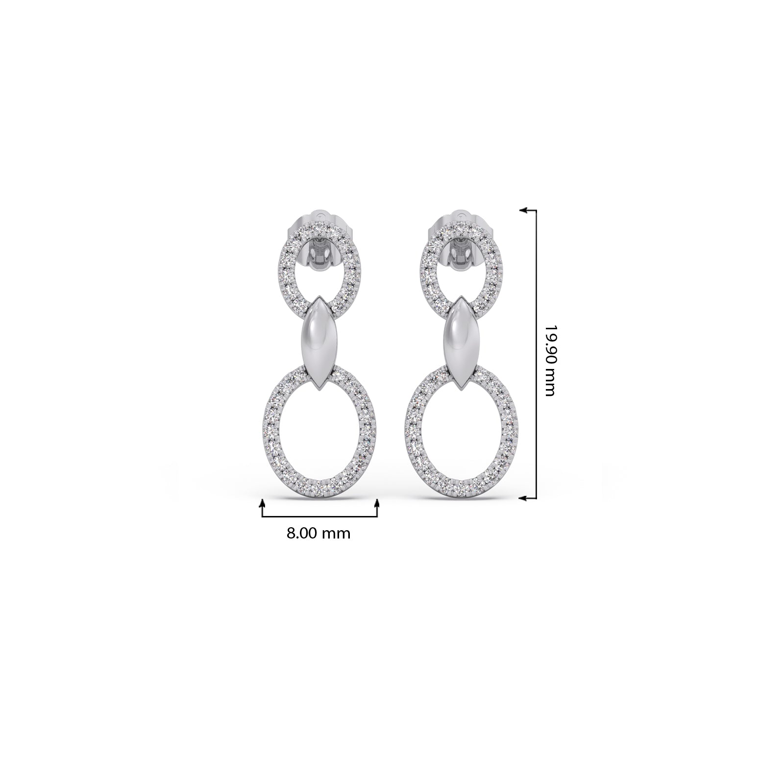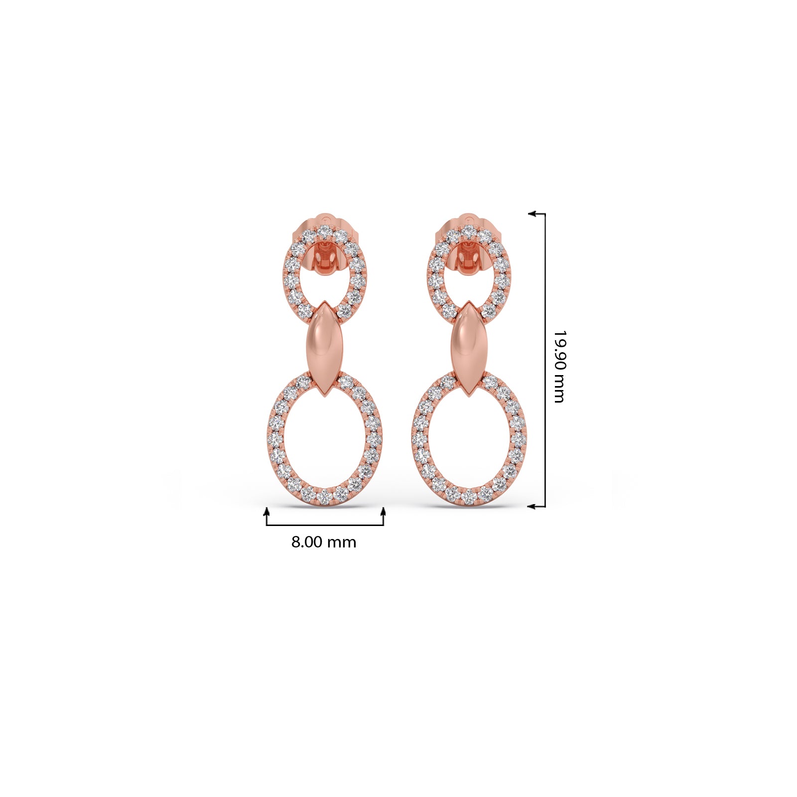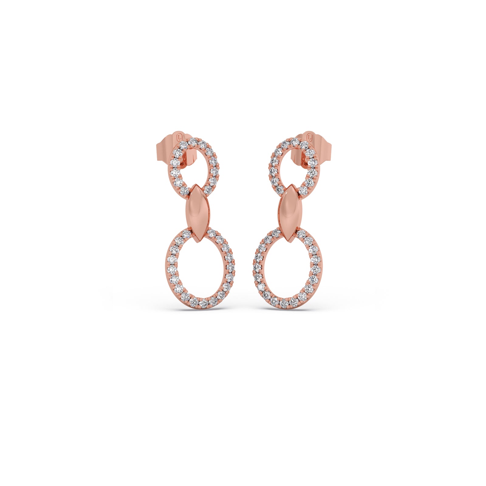 Elegant and graceful, these earrings feature a flowing design with a round element connected to an oval drop, both adorned with sparkling Round Diamonds. The gentle movement and shimmering brilliance create a sophisticated statement—perfect for adding timeless charm to any outfit.