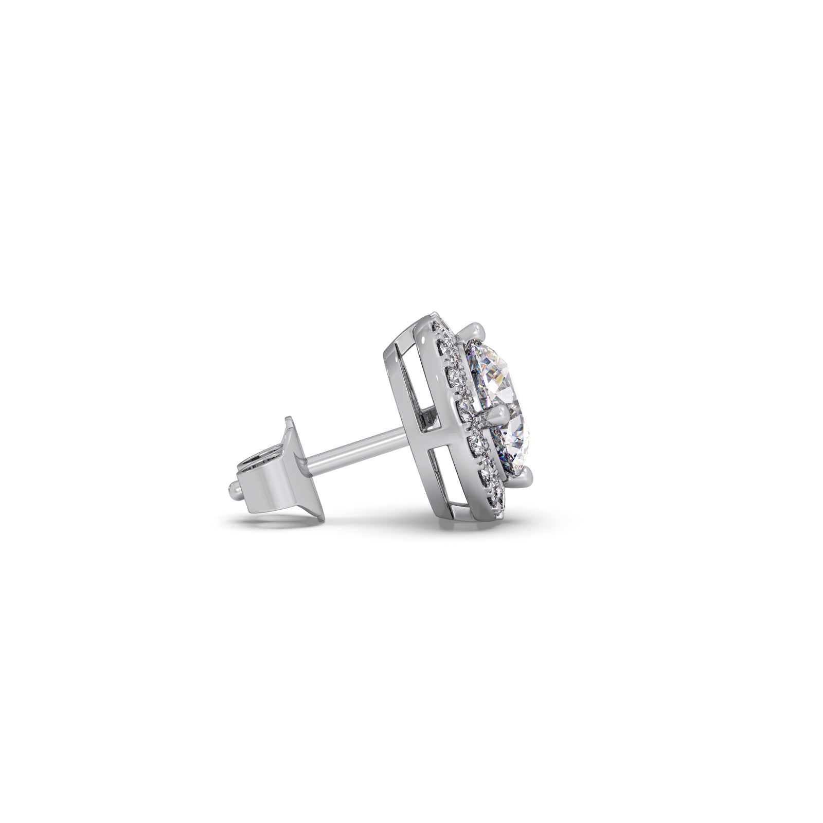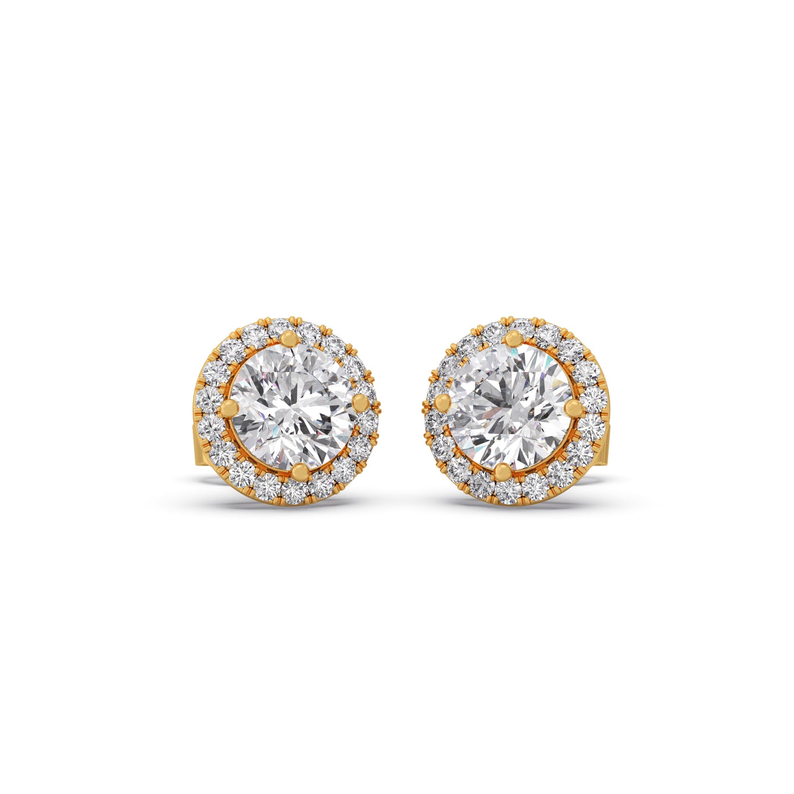 Radiate timeless elegance with our Round Solitaire Diamond Halo Stud Earrings. A brilliant central diamond is encircled by a sparkling halo, enhancing its fire and brilliance. Perfect for any occasion, these classic studs exude sophistication and make a stunning statement of refined luxury.